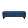 59" Bed Bench With Storage Blue Fabric Blue Foam Cotton Linen