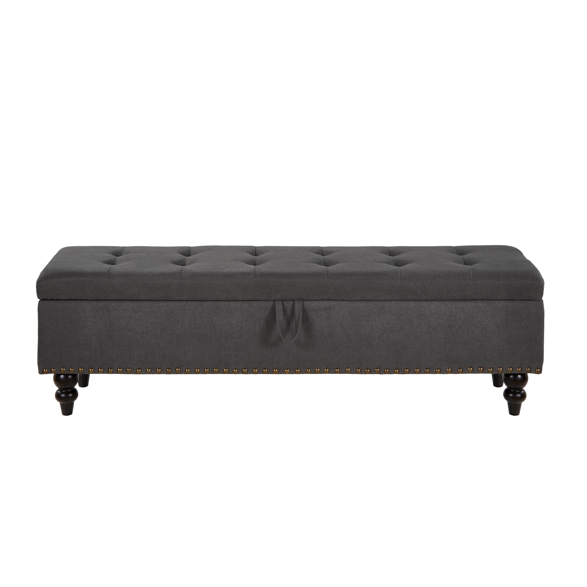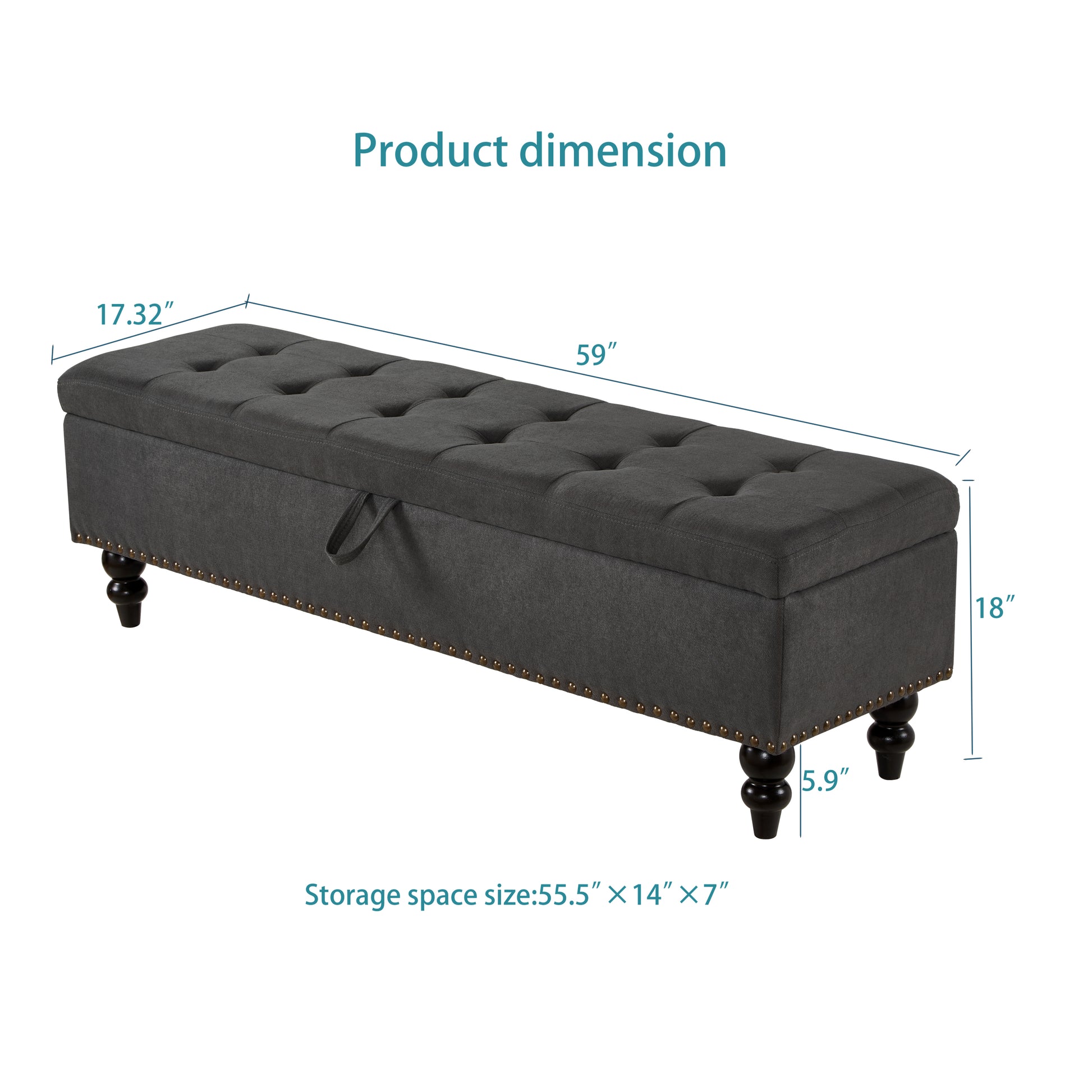 59" Bed Bench With Storage Grey Fabric Grey Foam Cotton Linen
