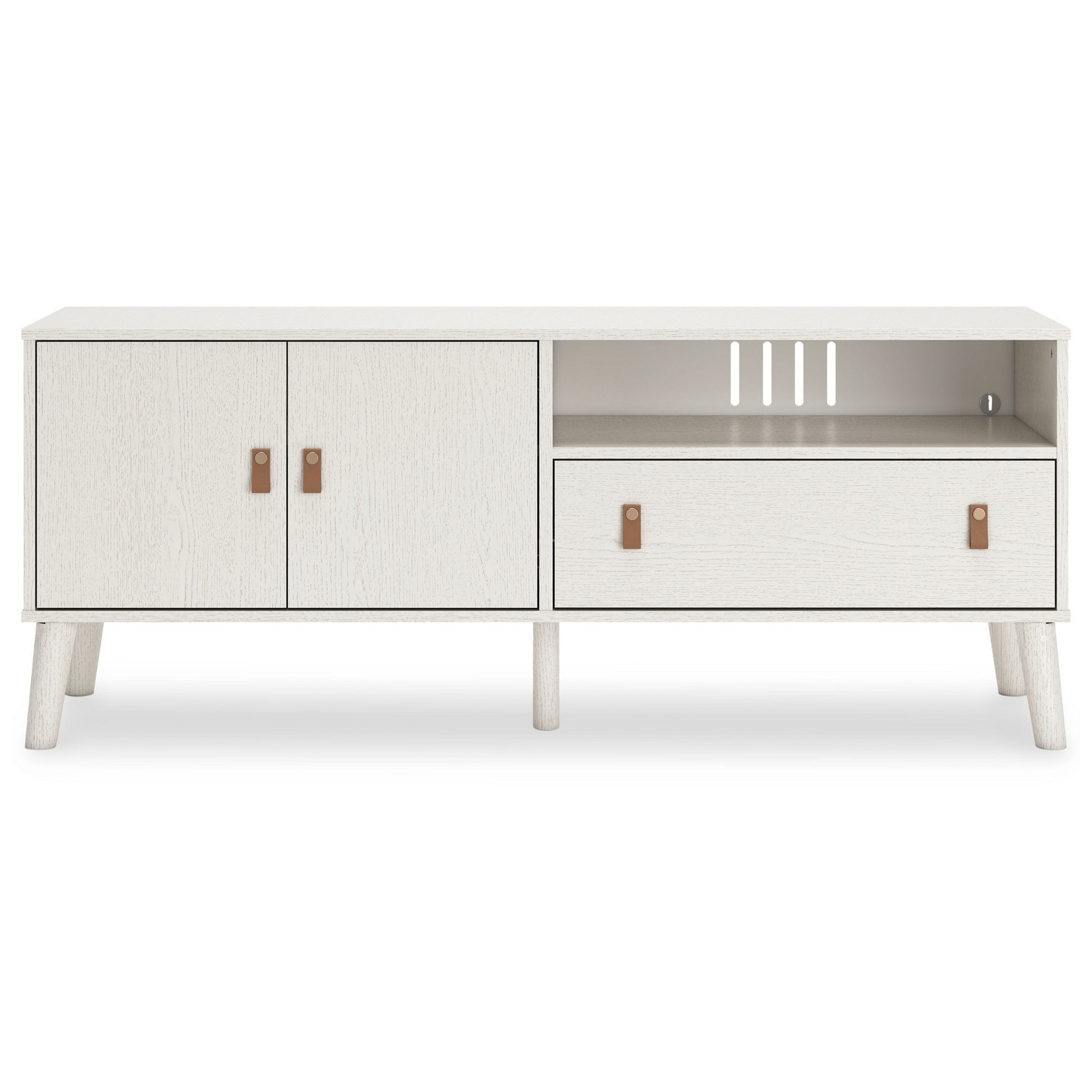 59 Inch Tv Media Entertainment Console, 1 Drawer, 2 Cabinets, Antique White White 50 59 Inches Wood Fabric