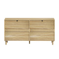 59" Rattan Dresser With Drawers, 6 Drawer Dresser For Bedroom, Clothes Storage Cabinet For Bedroom, Metal Handle&Wood Legs For Hallway, Living Room, Bedroom,Natural Natural Mdf Metal