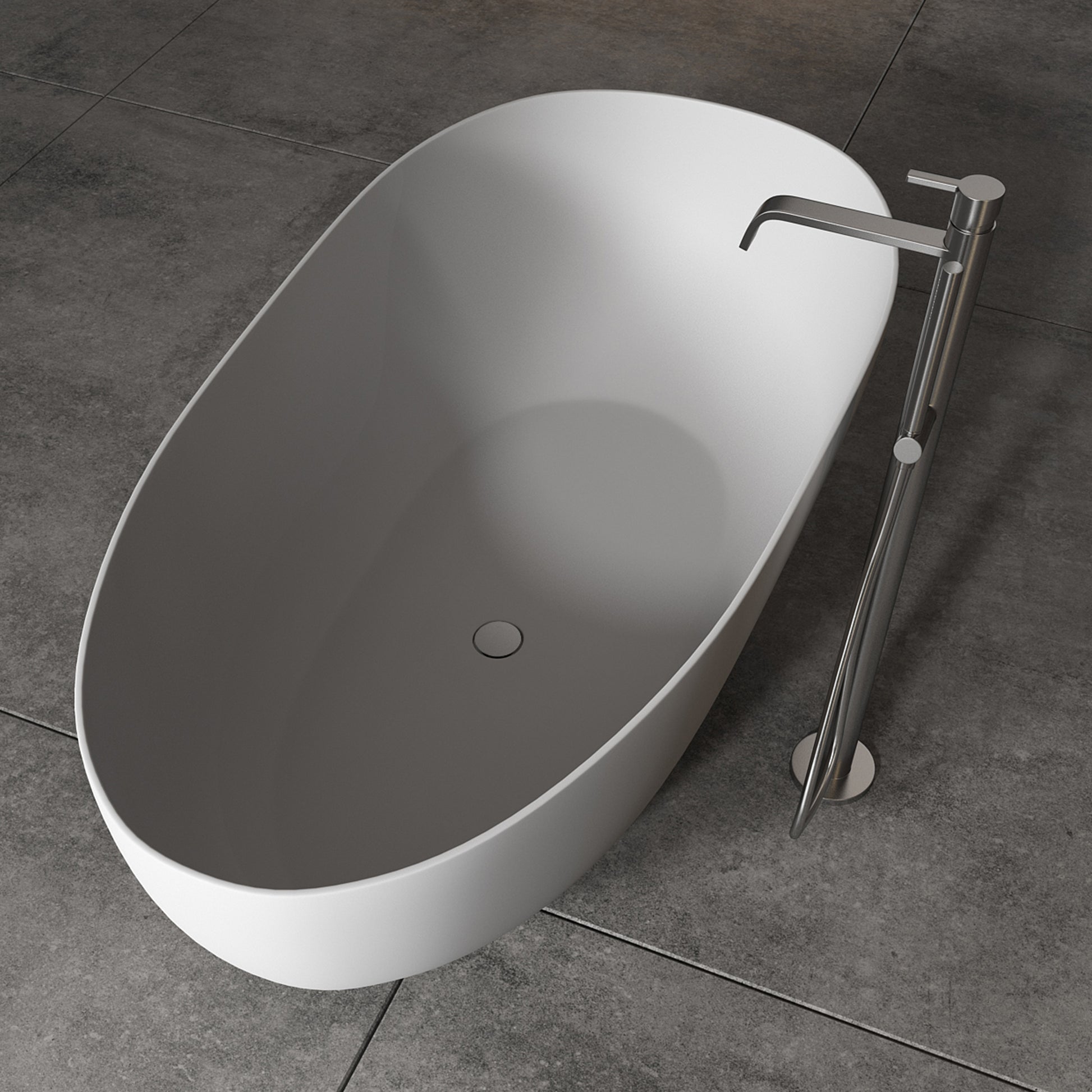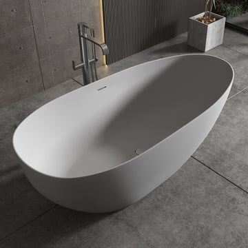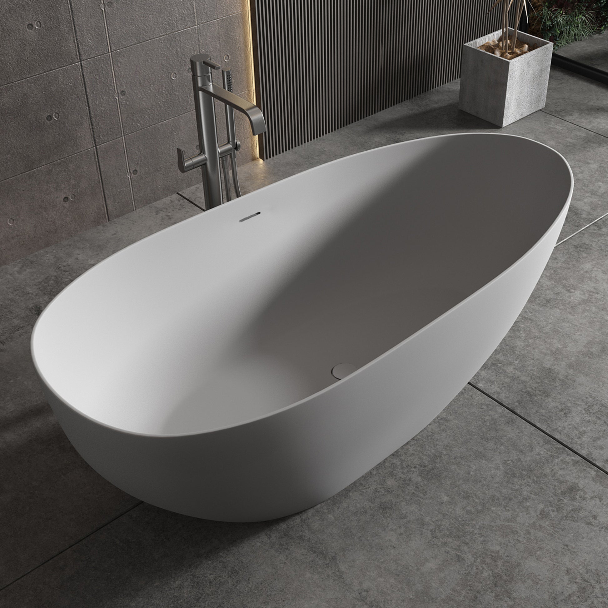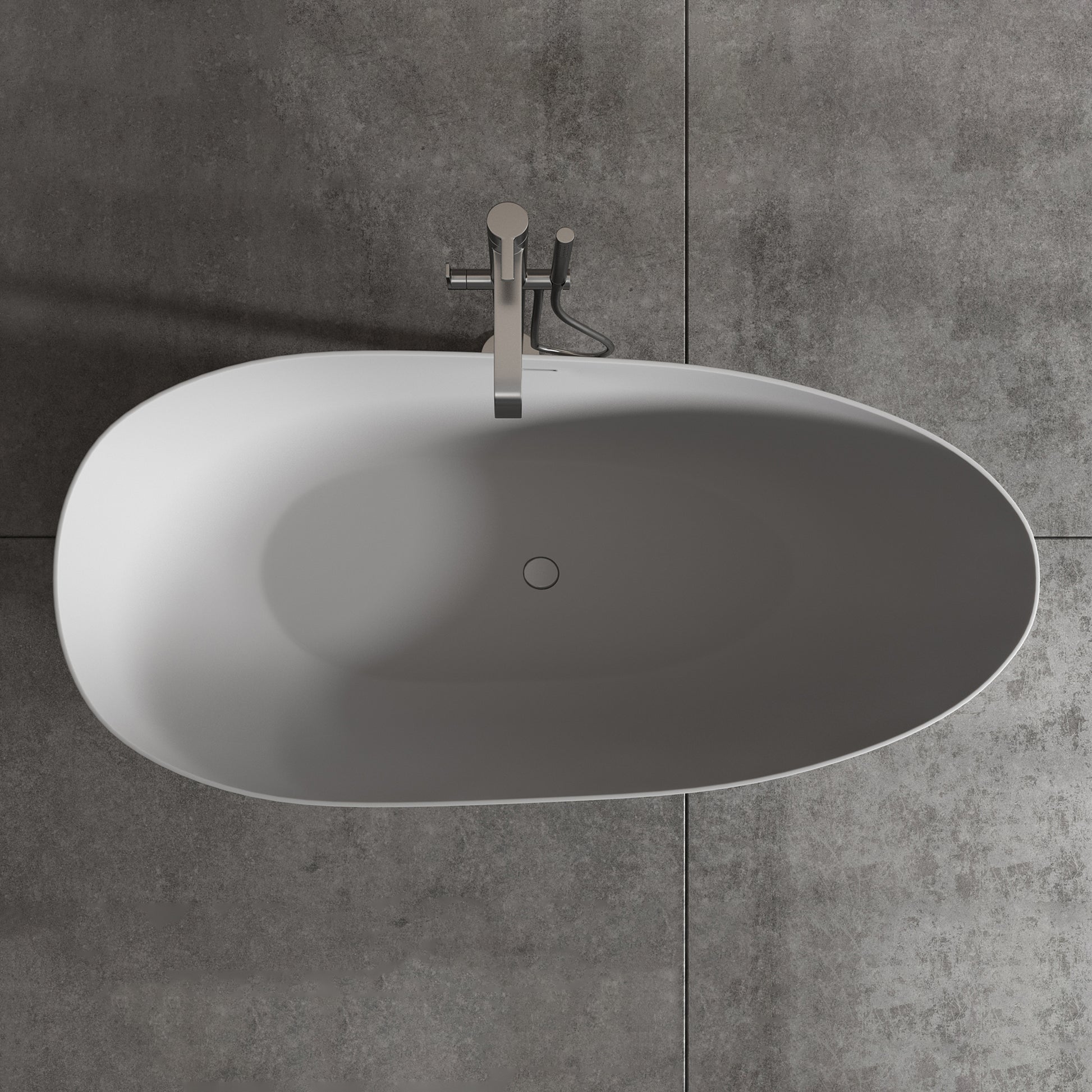 59" Solid Surface Soaking Bathtub Matte White Freestanding Tubs Matte 59 61 In Center Front Solid Surface