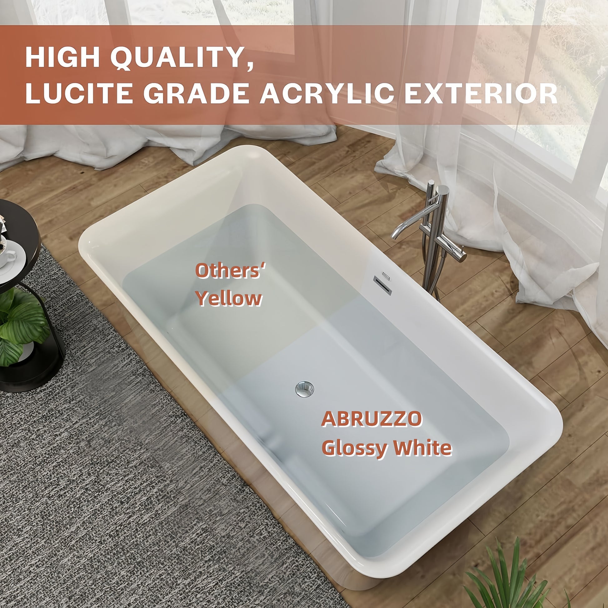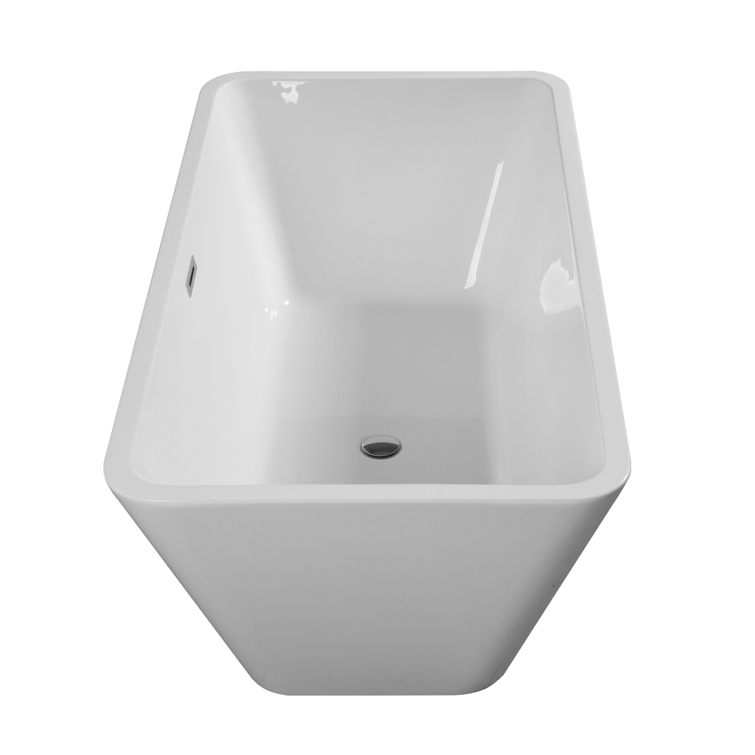 59" X 30" Acrylic Rectangular Freestanding Bathtub, Contemporary Soaking White Tub With Brushed Nickel Overflow And Pop Up Drain, Cupc Certified, Glossy White 23A01 60 Gloss White Rectangle Bathroom Freestanding Tubs Center Fiberglass Acrylic