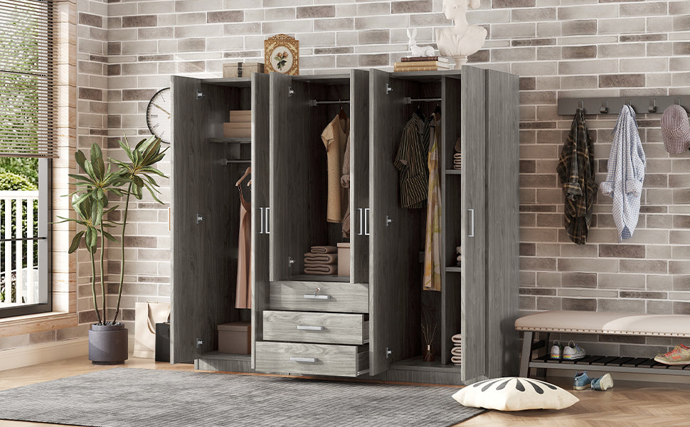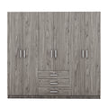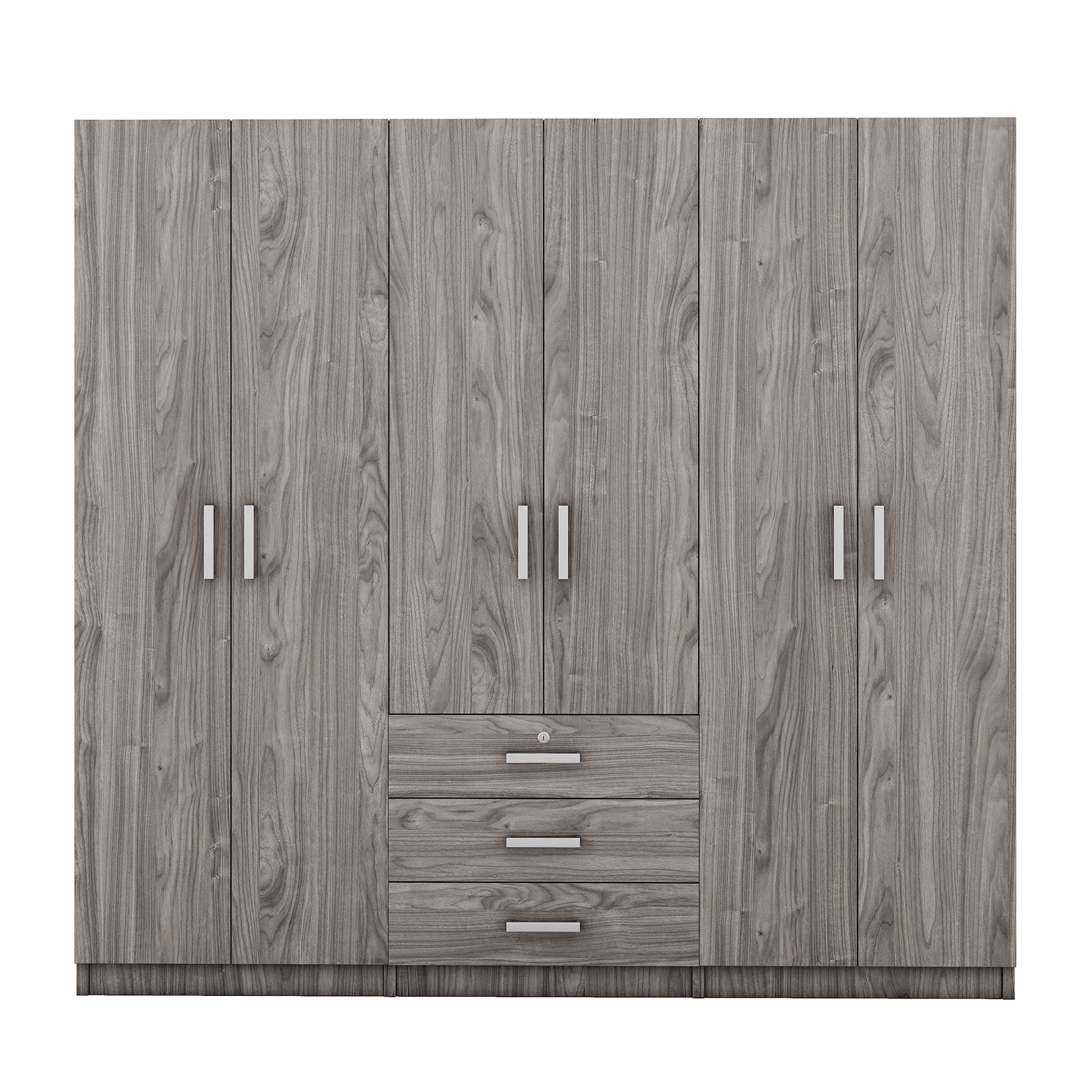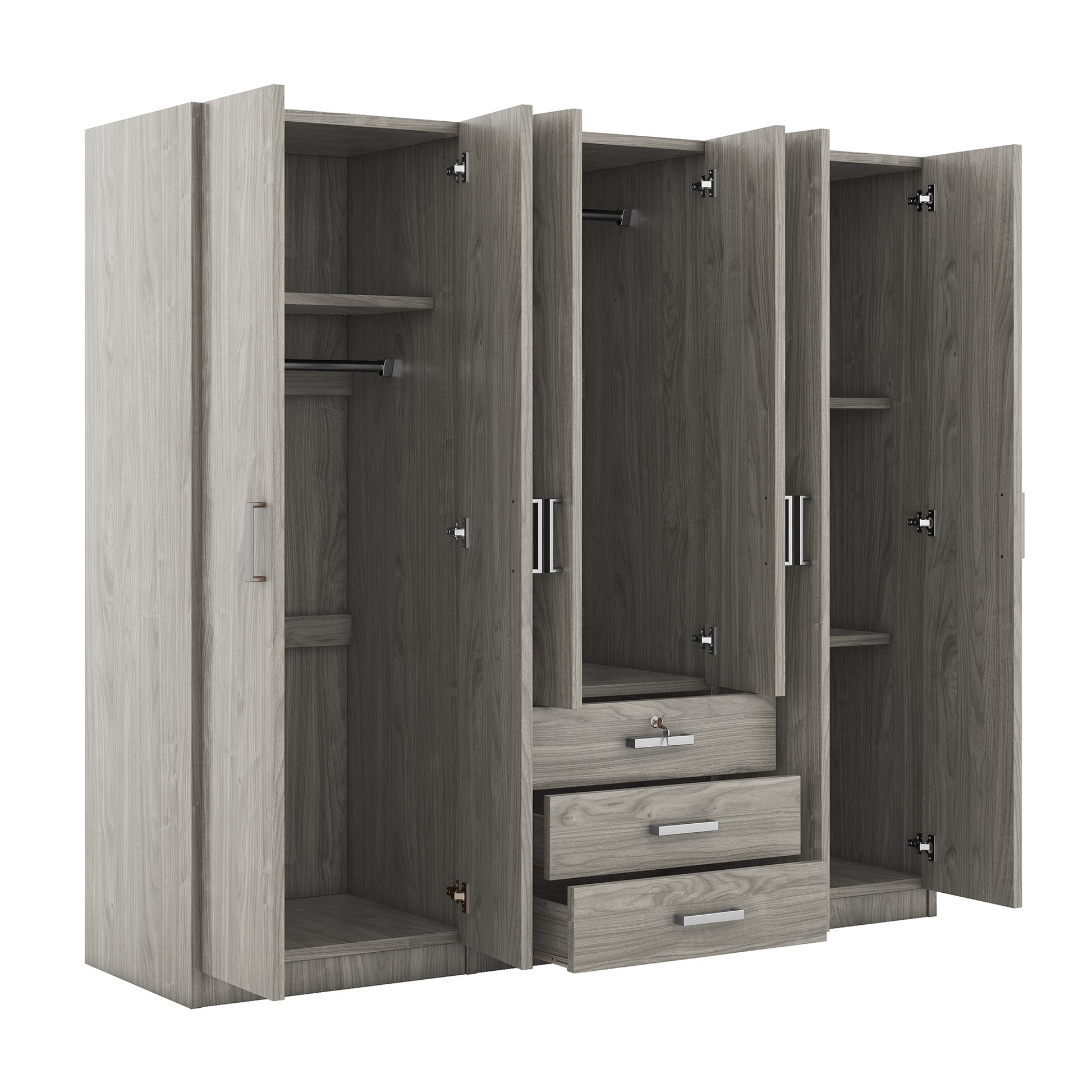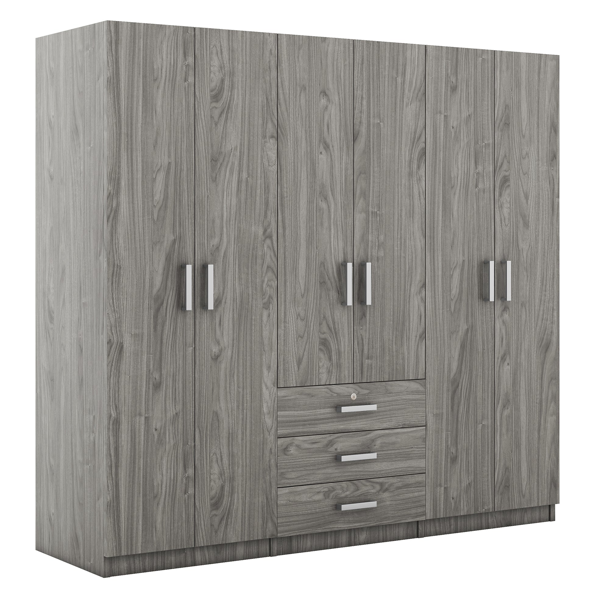 6 Doors Wooden Wardrobe Storage For Bedroom, With Big Drawers, Gray Gray Plywood