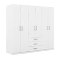 6 Doors Wooden Wardrobe Storage For Bedroom, With Big Drawers, White White Plywood