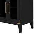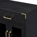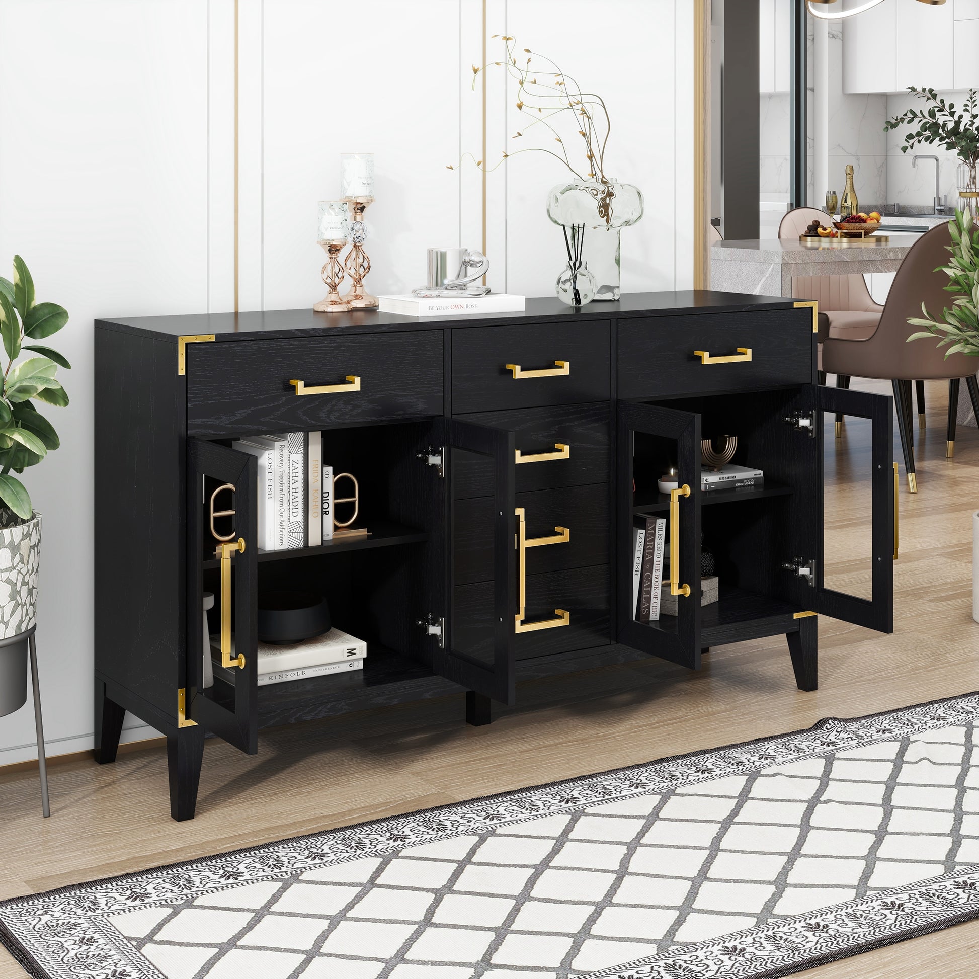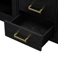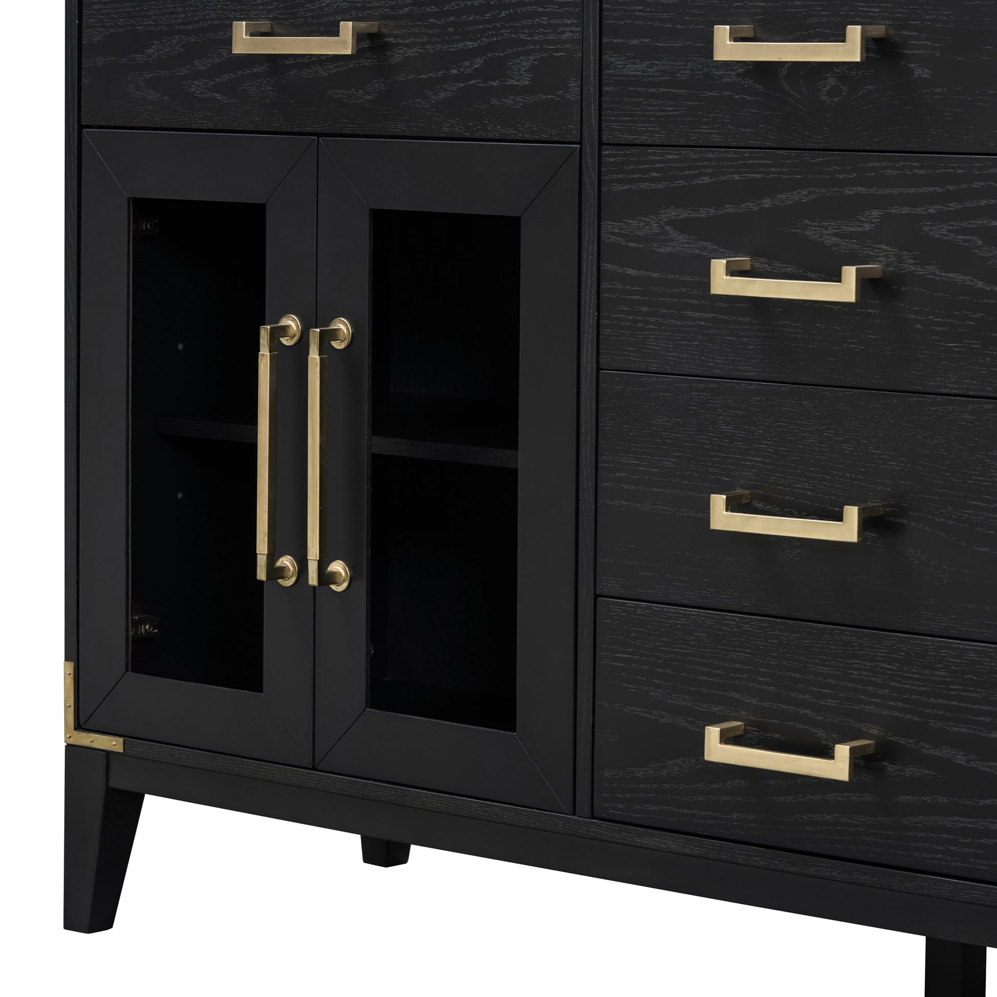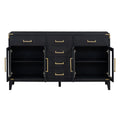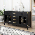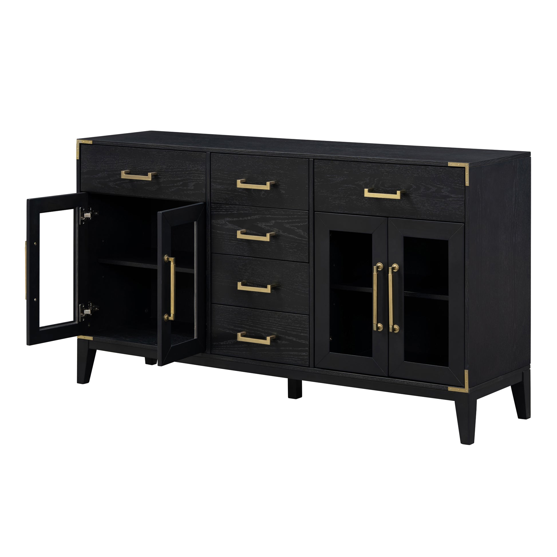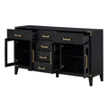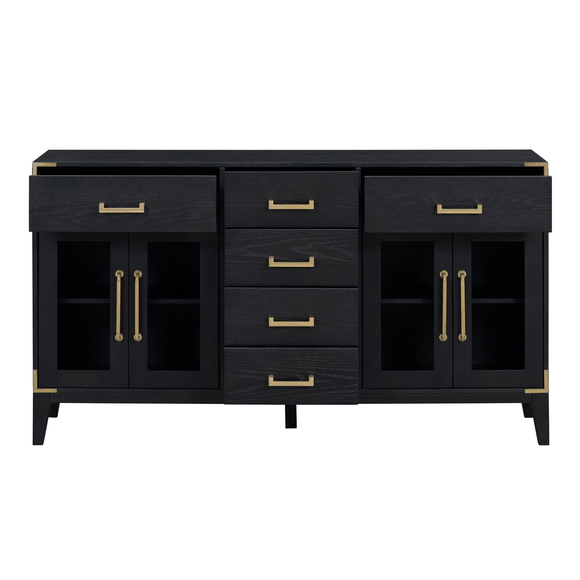 6 Drawer And 2 Cabinet Retro Sideboard With Extra Large Storage Space, With Gold Handles And Solid Wood Legs, For Kitchen And Living Room Black Black Solid Wood Mdf