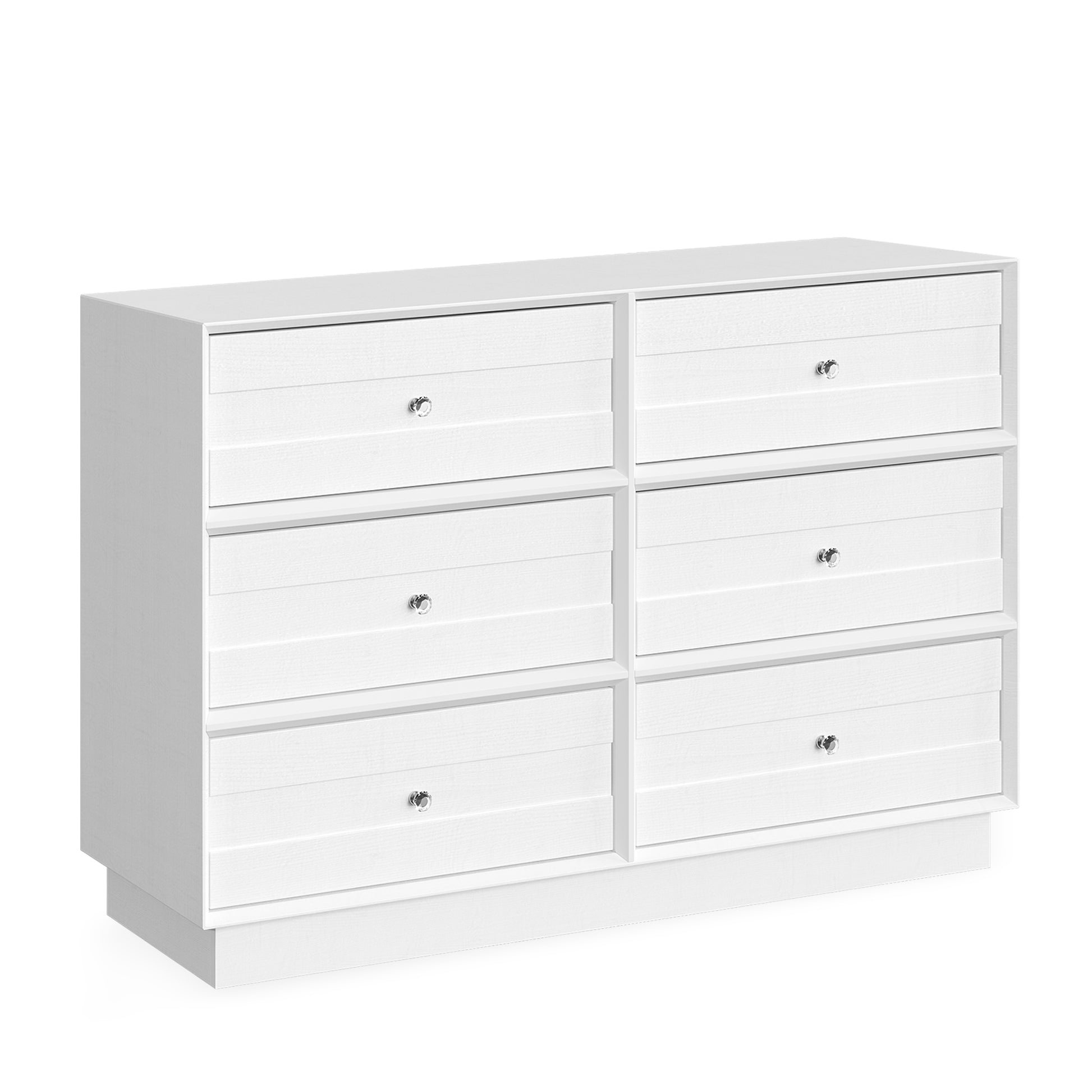 6 Drawer Dresser, Modern Closet Dressers Chest Of Drawers With Crystal Knobs & Decorative Painted Strip White White Wood