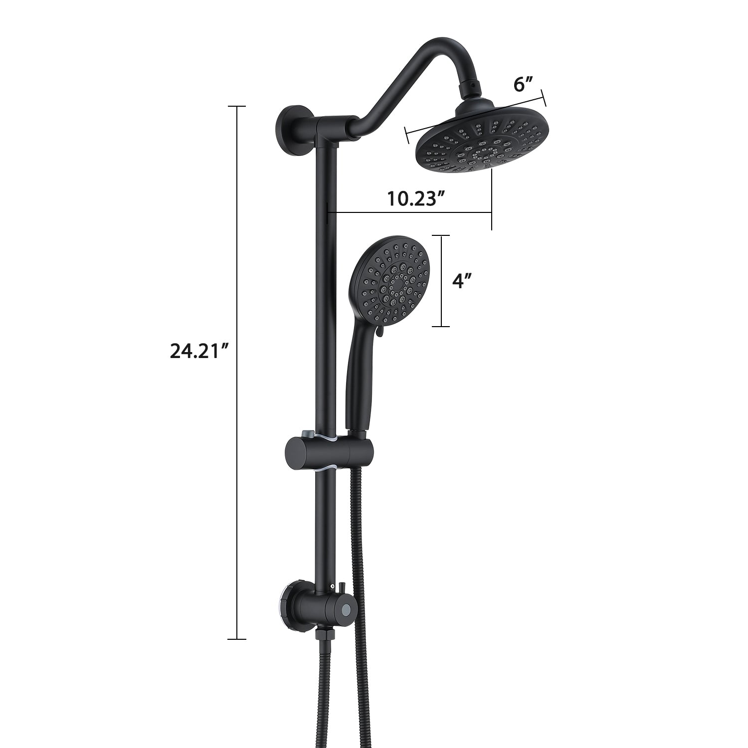 6 Inch Rain Shower Head With Handheld Shower Head Bathroom Rain Shower System Matte Black Abs