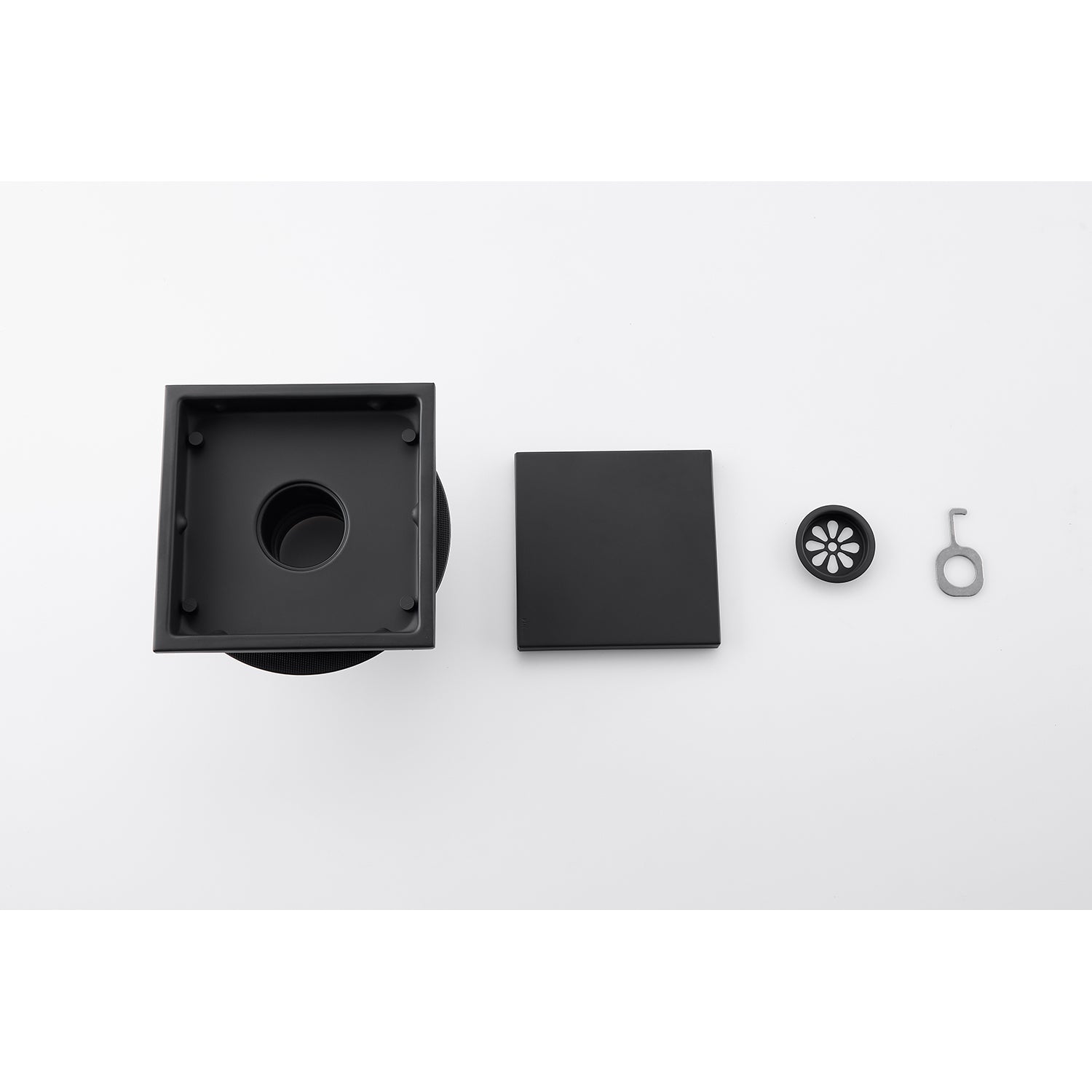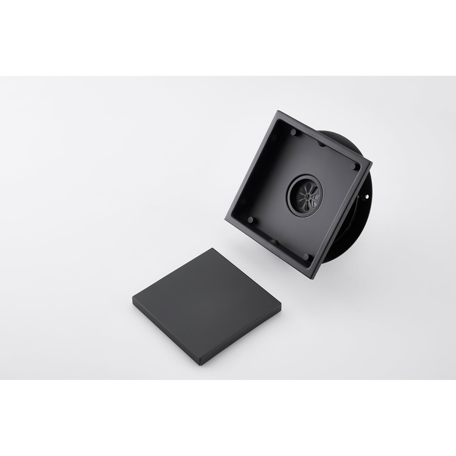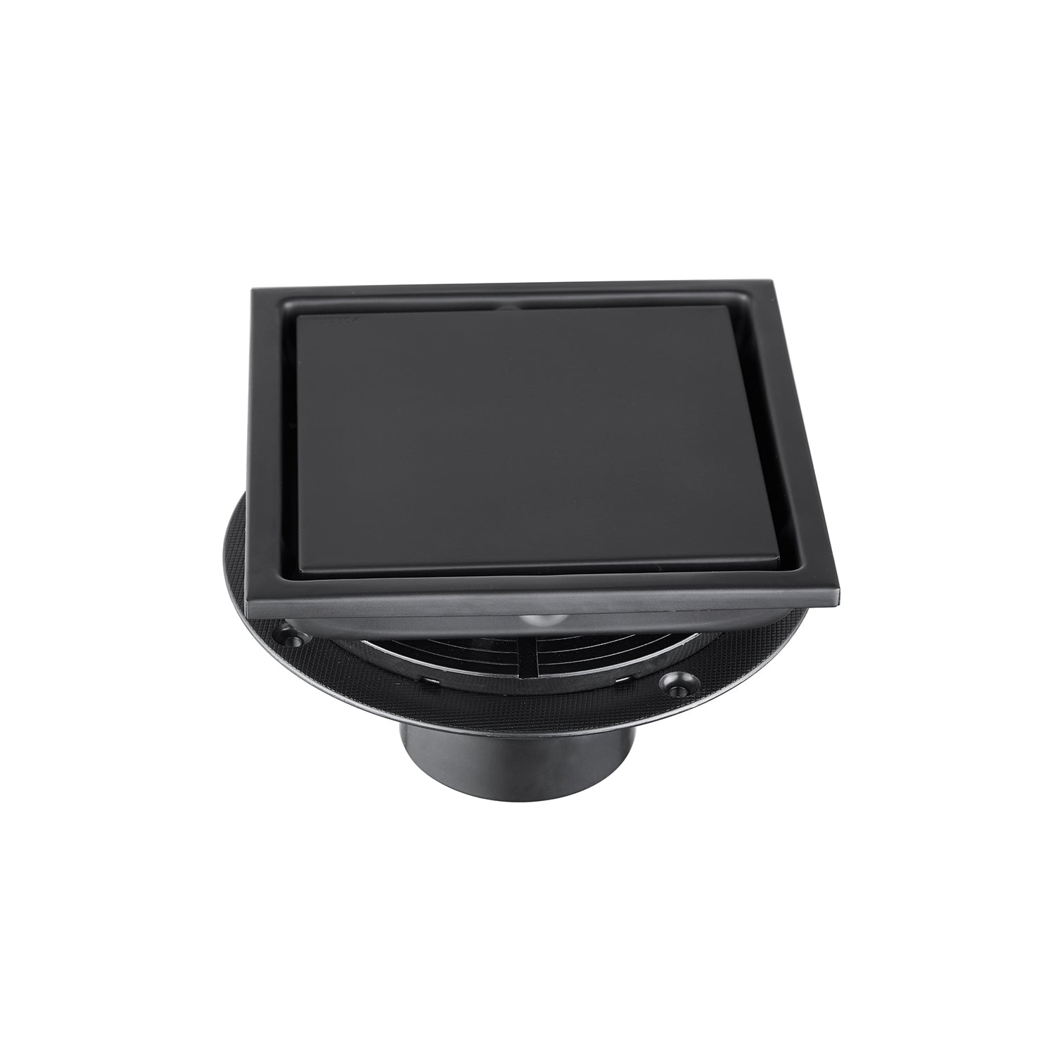 6 Inch Square Shower Floor Drain Matte Black Stainless Steel