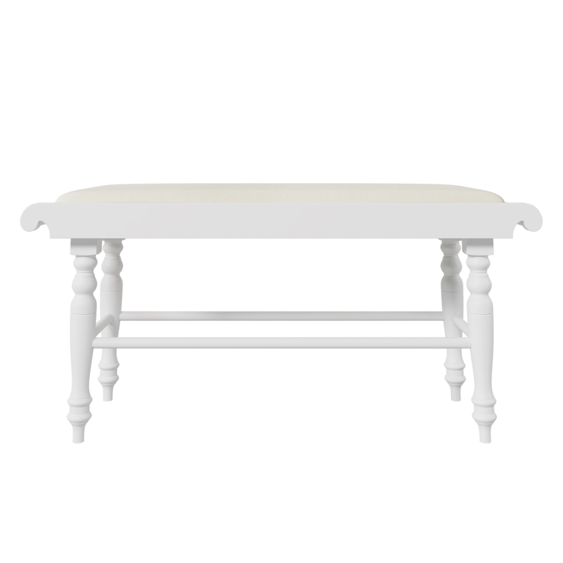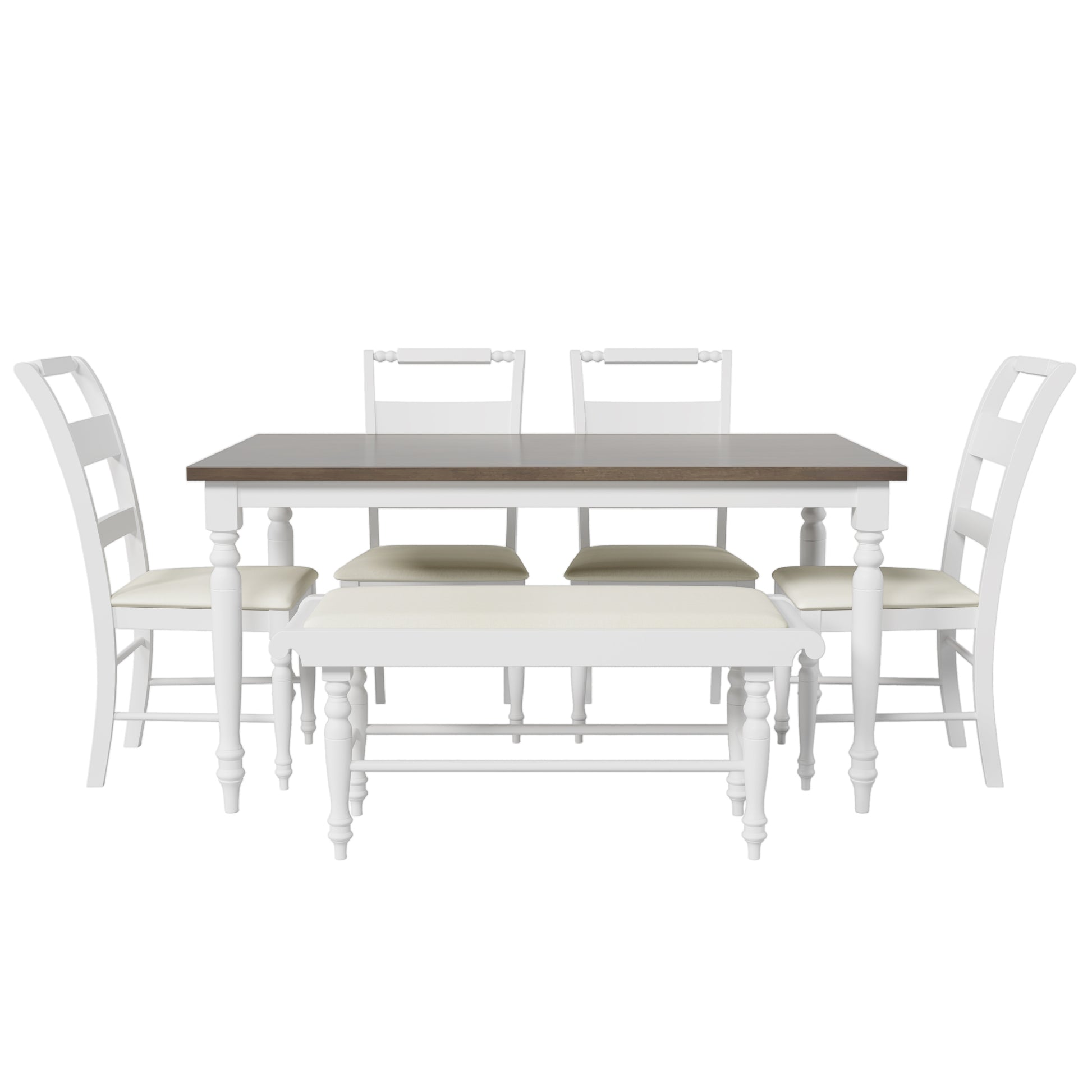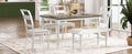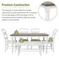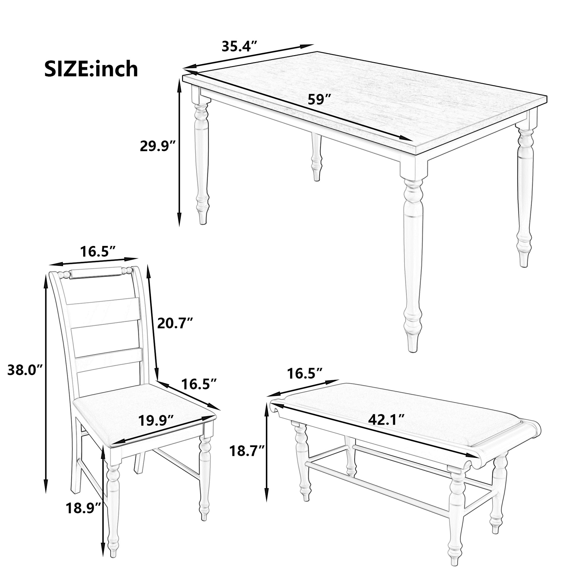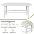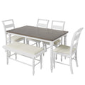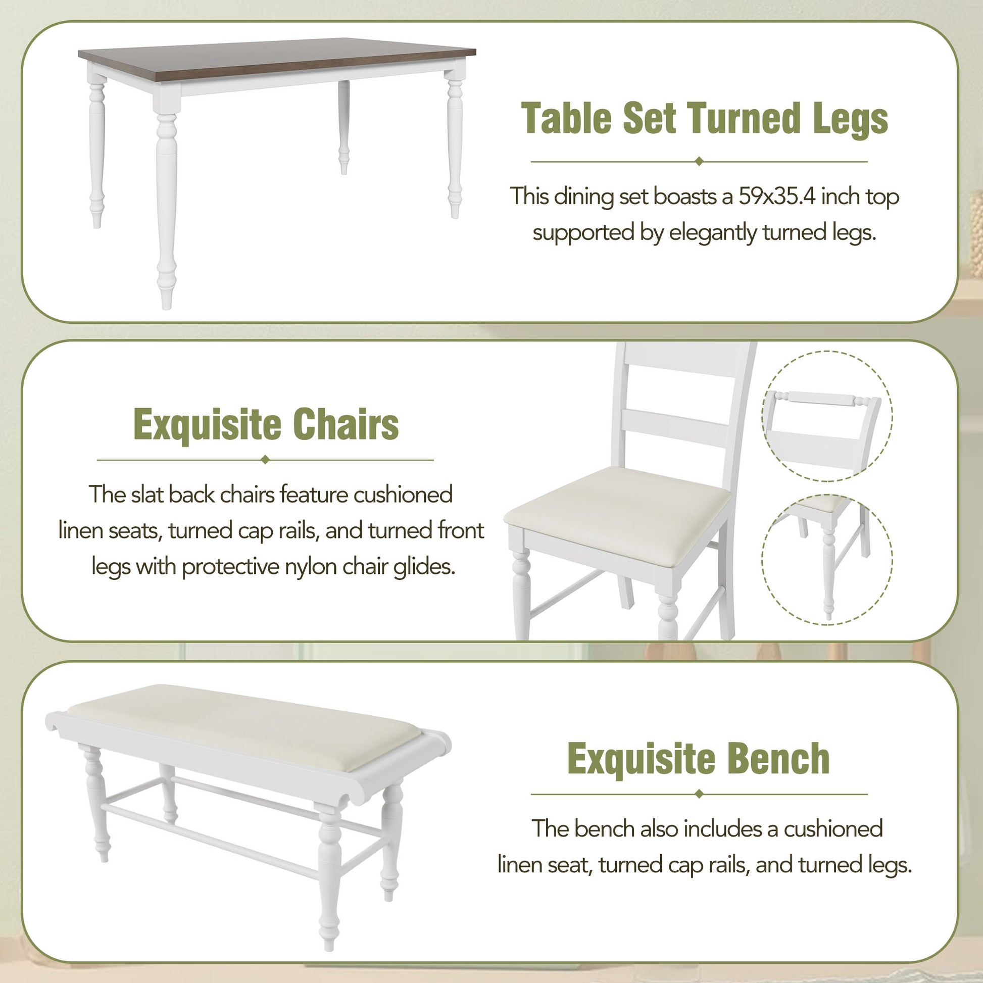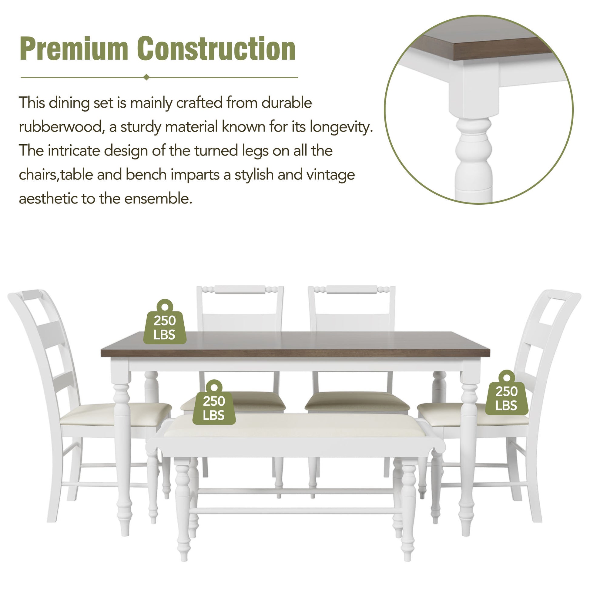 6 Peice Dining Set With Turned Legs, Kitchen Table Set With Upholstered Dining Chairs And Bench,Retro Style, White White Wood Dining Room Bench Seating Rubberwood Rectangular Dining Table With Chair And Bench Upholstered Chair Wood Brown White Ladder