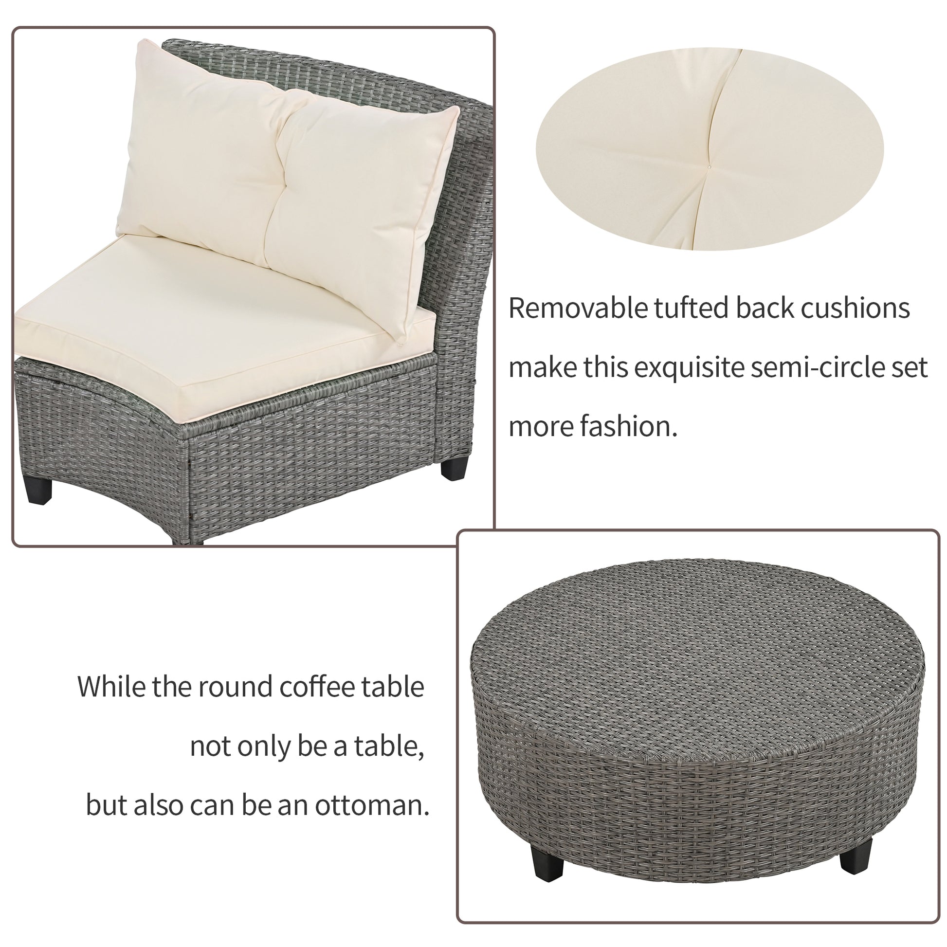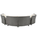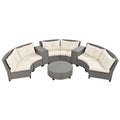 6 Person Fan Shaped Rattan Suit Combination With Cushions And Table,Suitable For Garden Beige Hdpe