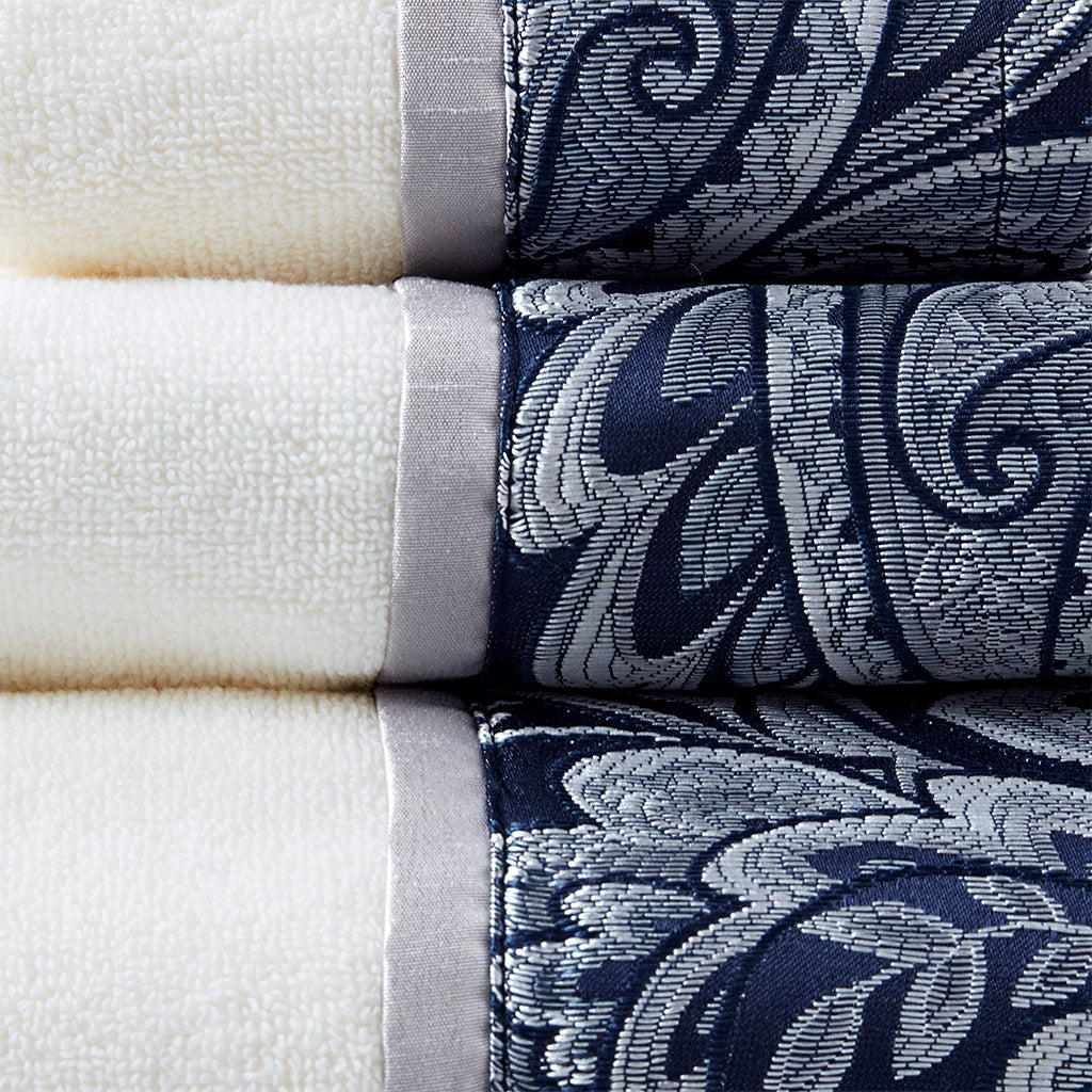 6 Piece Jacquard Towel Set Navy Cotton
