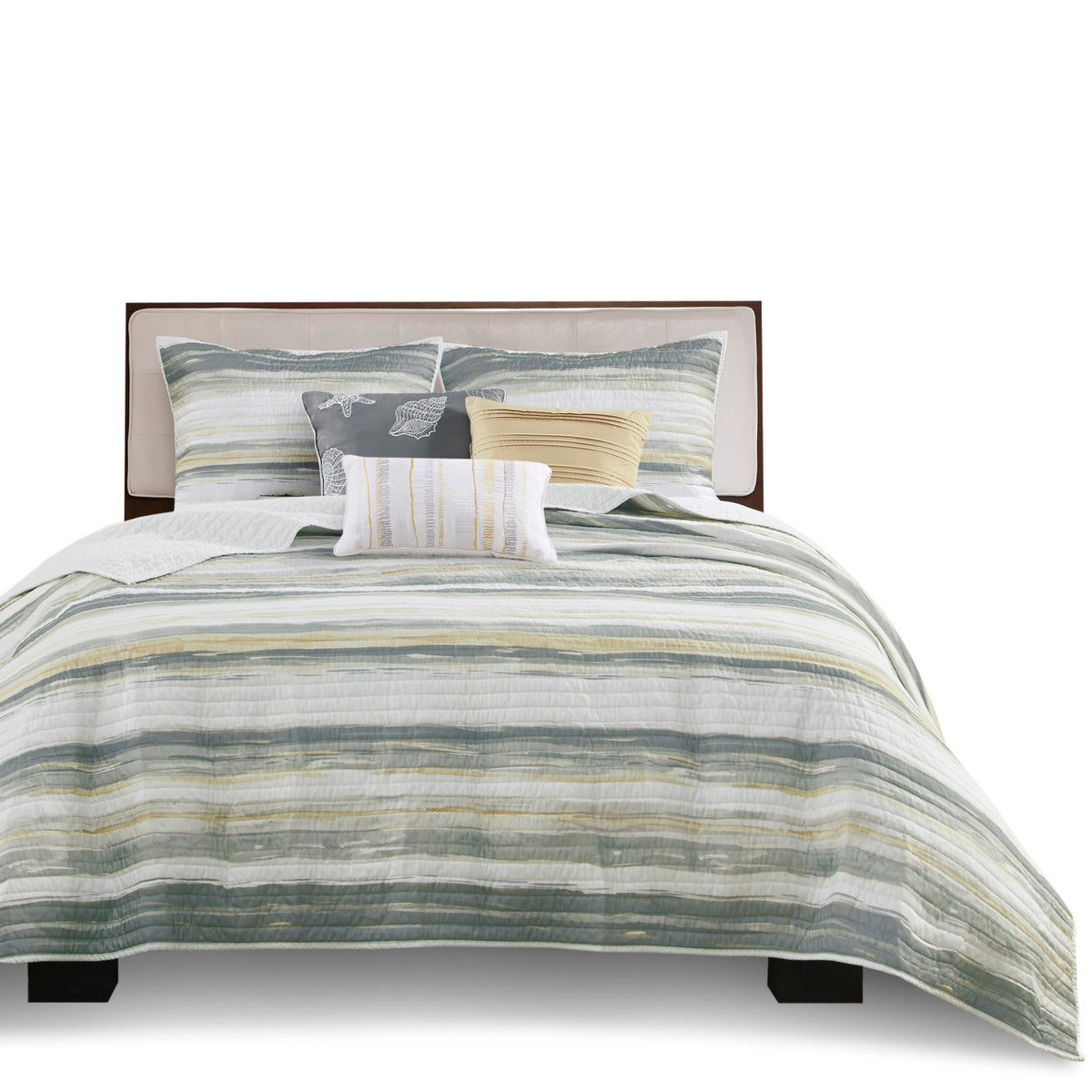 6 Piece Printed Quilt Set With Throw Pillows Yellow Full Queen Full Yellow Cotton
