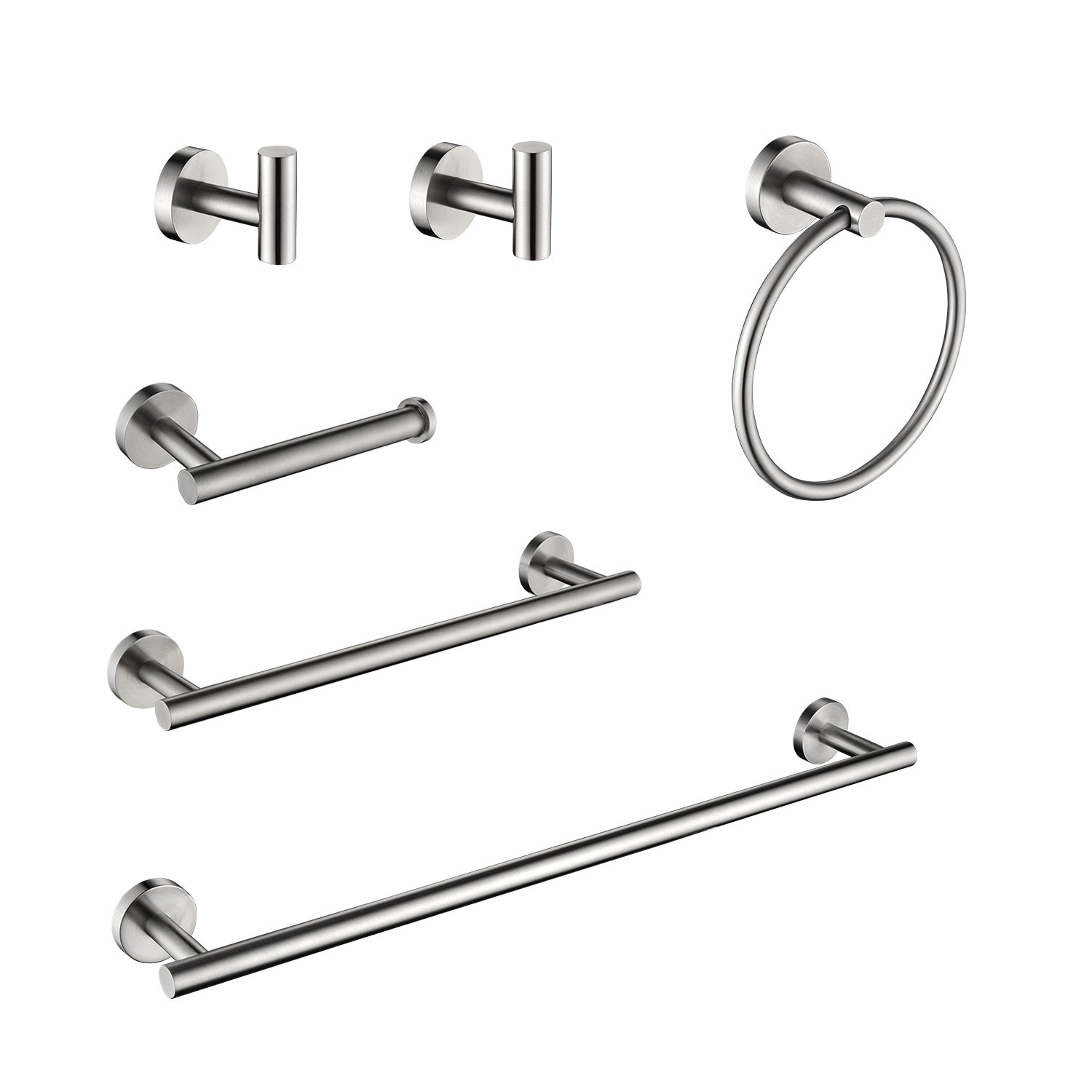 6 Piece Stainless Steel Bathroom Towel Rack Set Wall Mount Brushed Nickel Stainless Steel