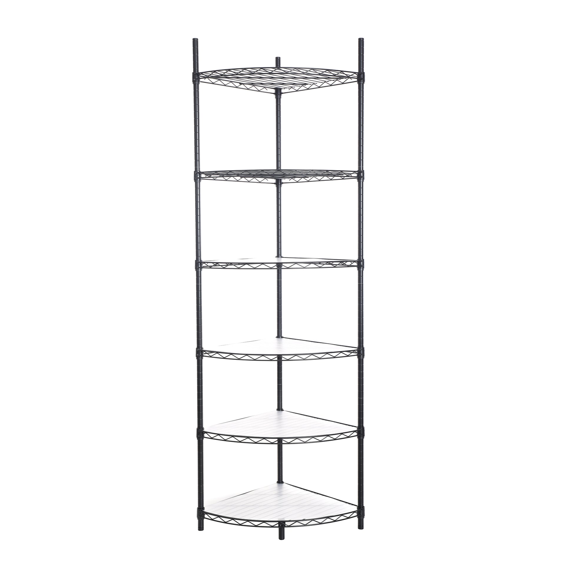 6 Tier Shelf Corner Wire Shelf Rack Adjustable Metal Heavy Duty Free Standing Corner Storage Display Chrome Rack For Bathroom, Living Room, Kitchen Black Black Iron Plastic