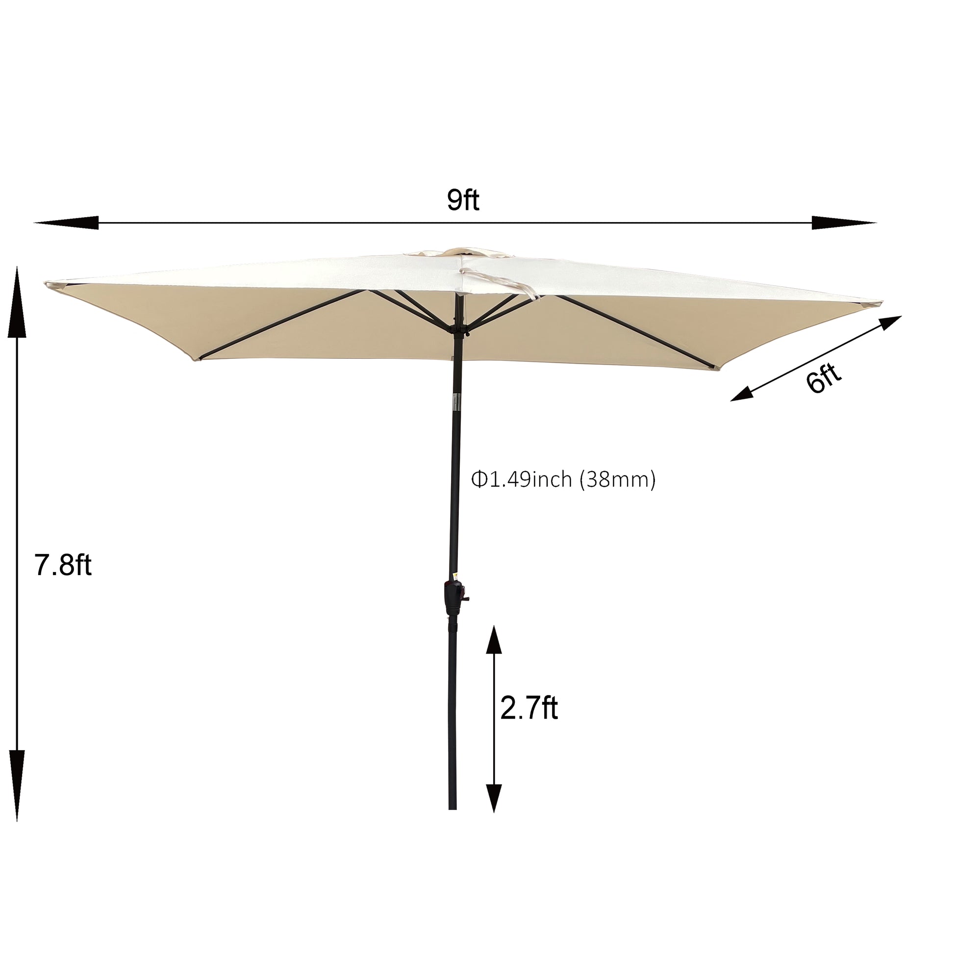 | Umbrella Shade Size: | 9 x 6 FT |