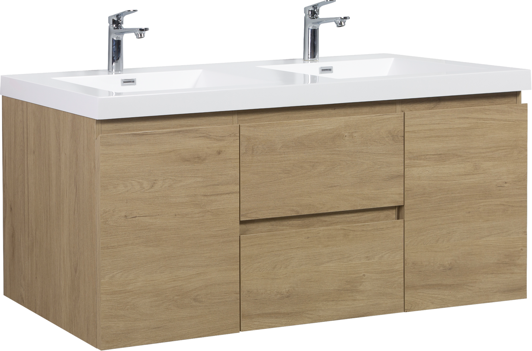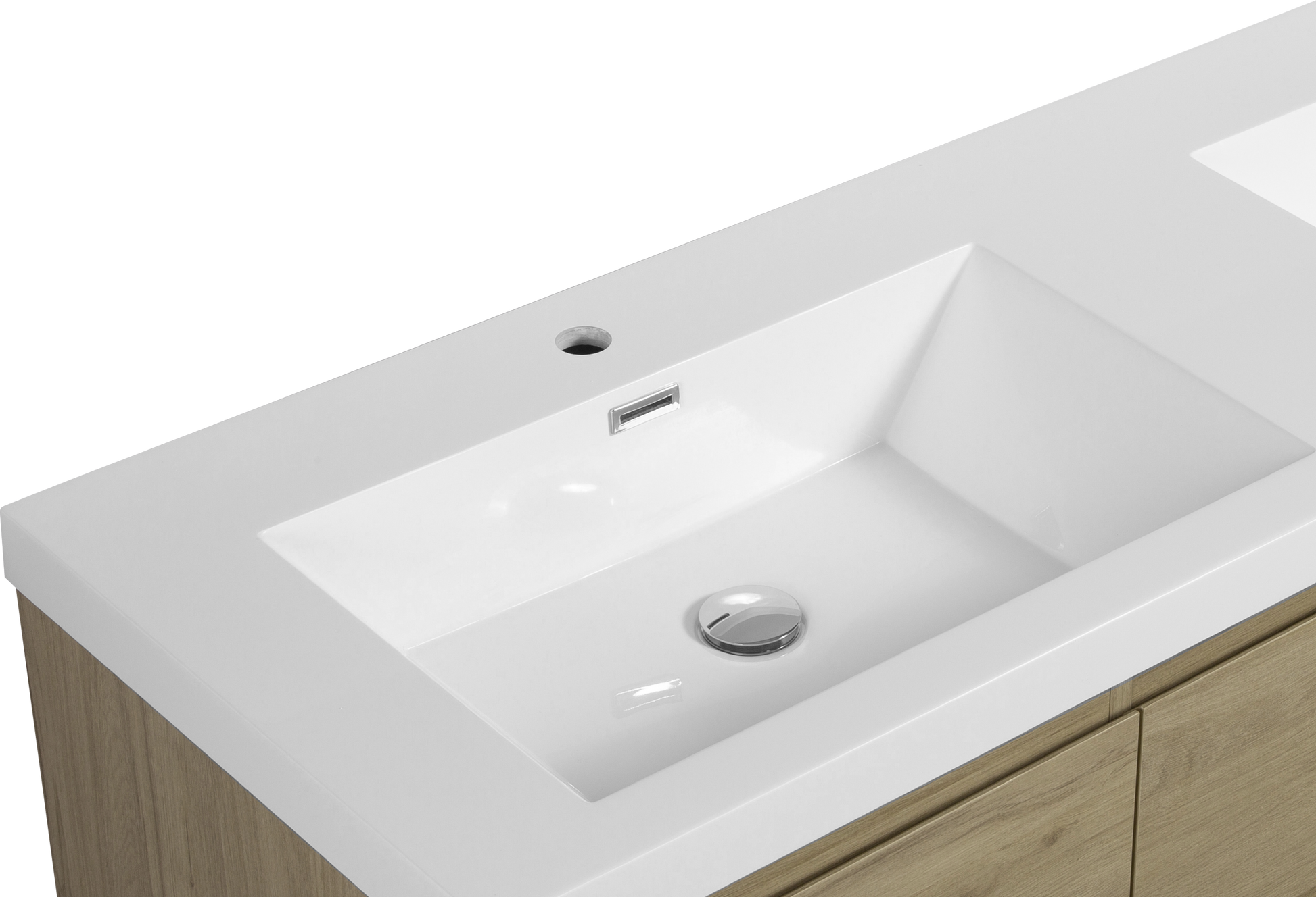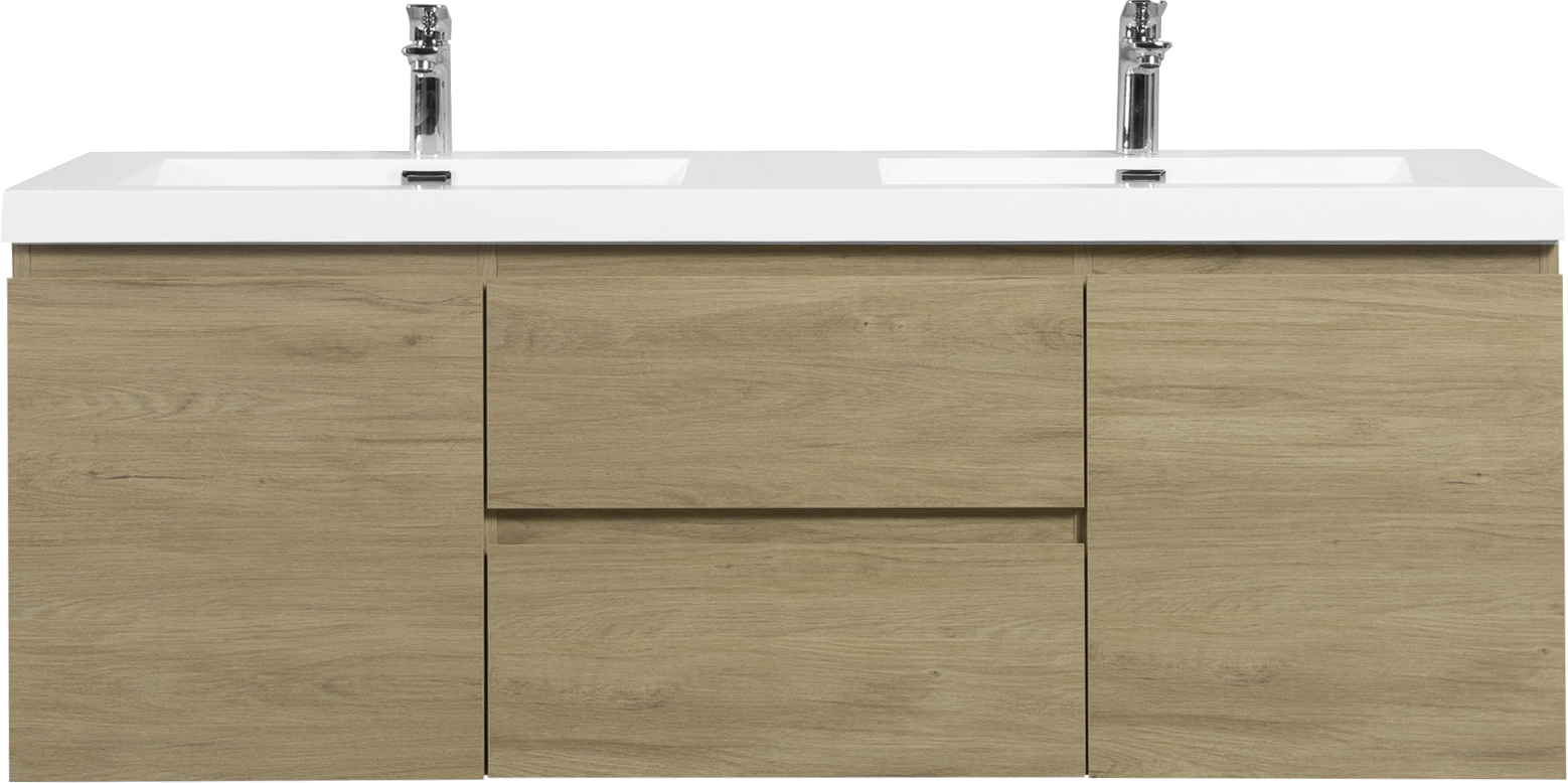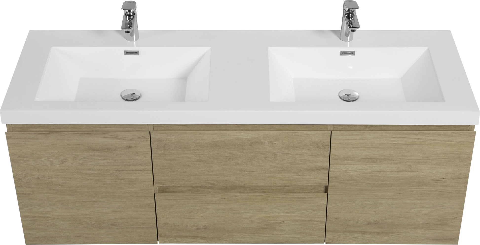 60" Floating Bathroom Vanity With Sink, Modern Wall Mounted Bathroom Storage Vanity Cabinet With Double Resin Top Basins And Soft Close Drawers, Natural Oak 24V11 60Dno 2 Oak 2 Bathroom Wall Mounted