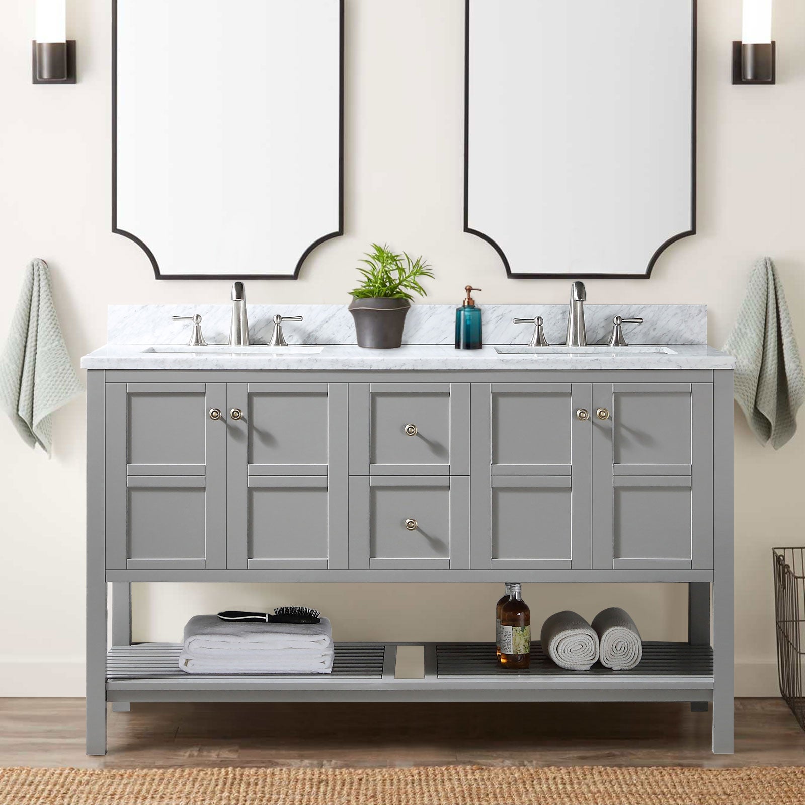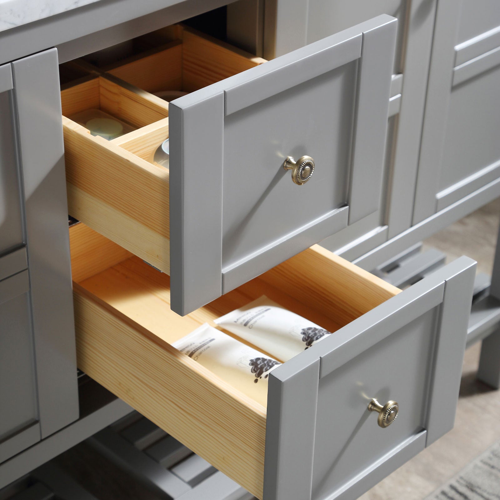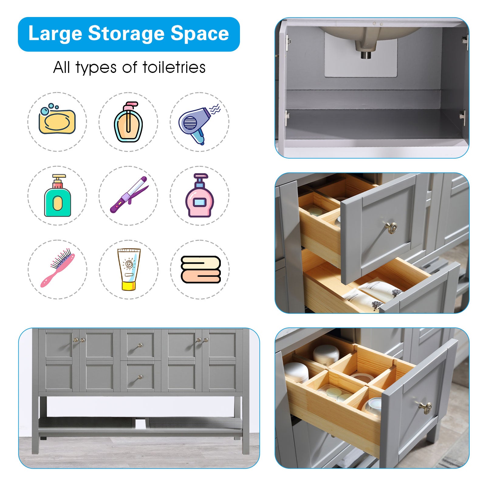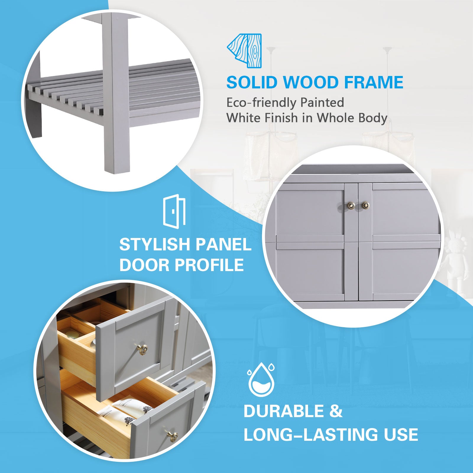 60 In Bathroom Vanity Base Cabinet Only, Double Sink Configuration,With Soft Closing Doors And Full Extension Dovetail Drawers Freestanding Bathroom Storage In Gray Gray Plywood