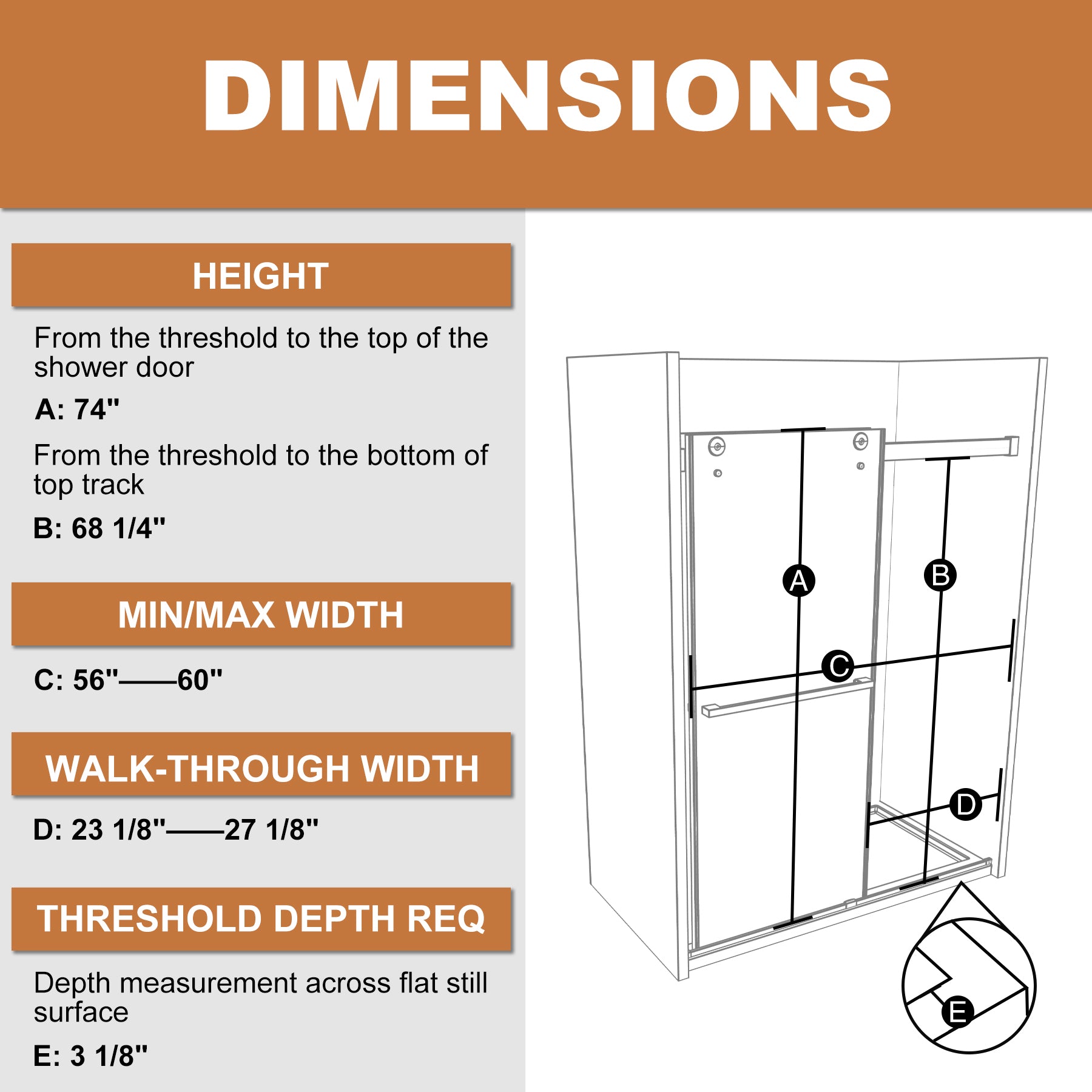 60 In. W X 74 In. H Shower Door In Matte Black With 5 16 In. 8 Mm Clear Glass Matte Black Aluminium