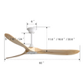 60 Inch Indoor Modern Ceiling Fan With 3 Color Dimmable 6 Speed Remote Control 3 Solid Wood Blade For Living Room White Metal & Wood