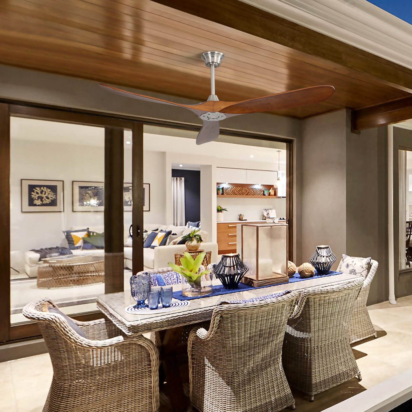 60 Inch Indoor Modern Ceiling Fan With 6 Speed Remote Control 3 Solid Wood Blade For Living Room Brushed Nickel Metal & Wood