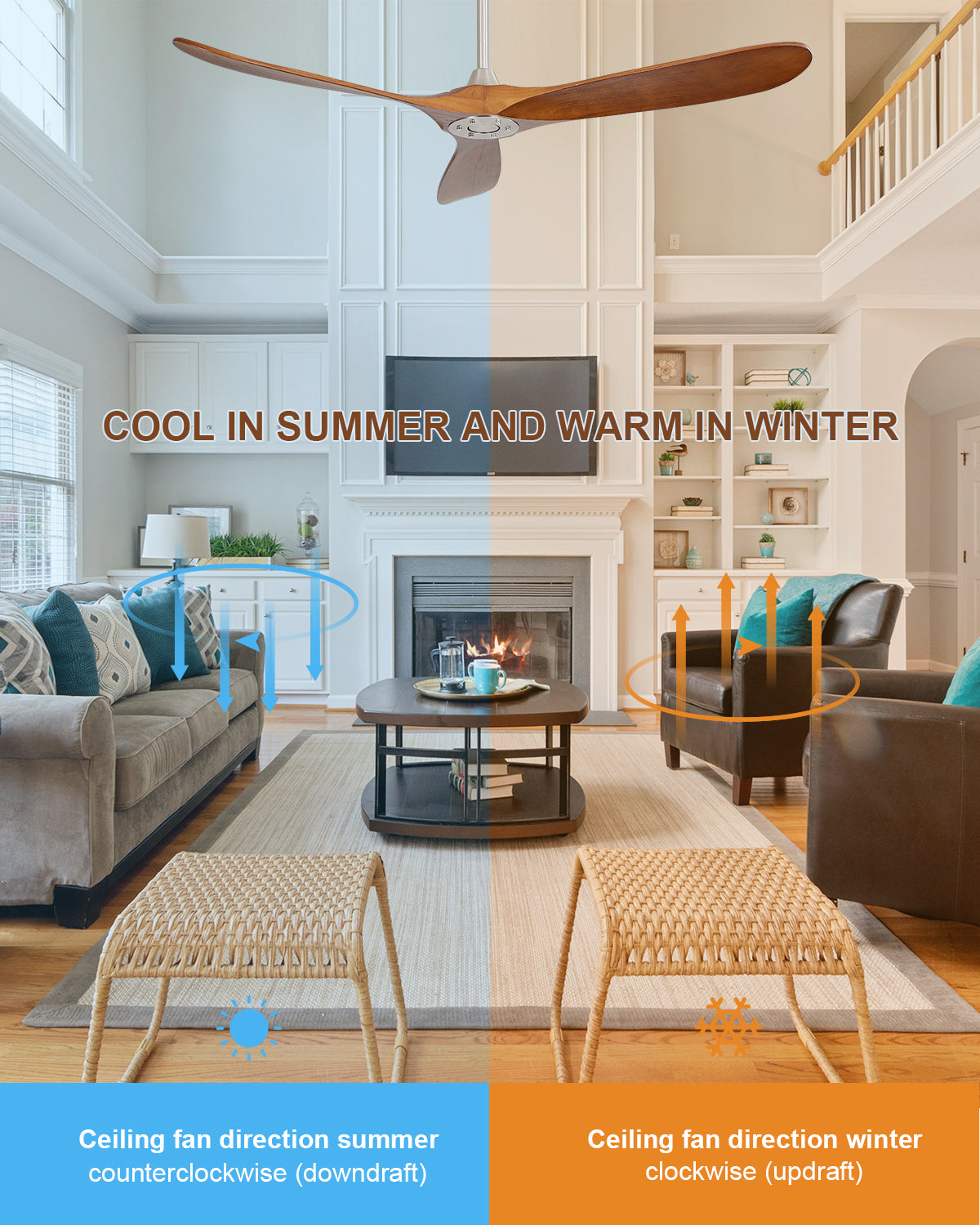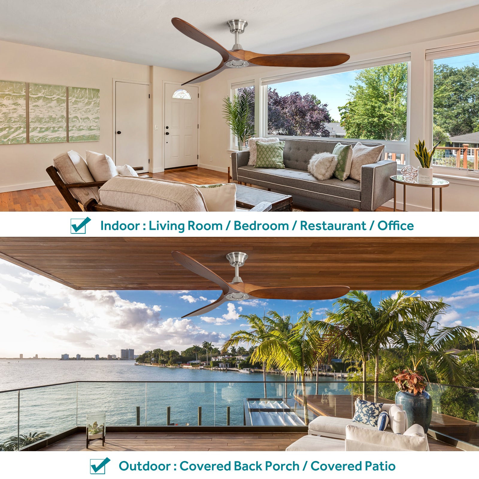 60 Inch Indoor Modern With 6 Speed Remote Control 3 Solid Wood Blade For Living Room Brushed Nickel Metal & Wood