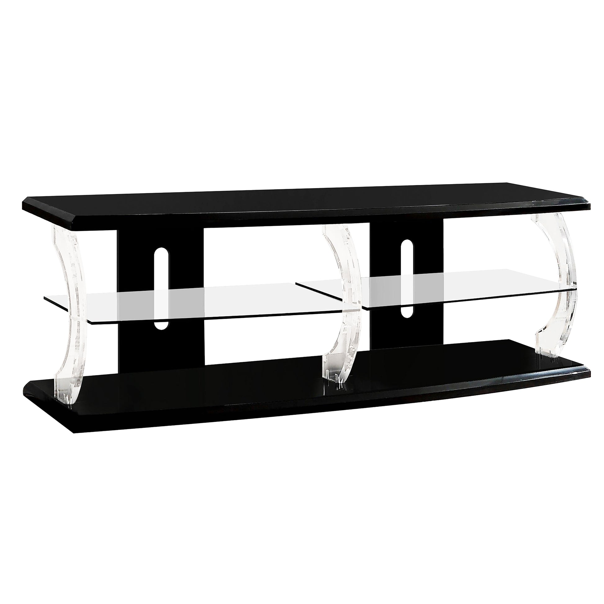 60 Inch Modern Tv Media Entertainment Center, Acrylic Posts, Glass, Black Black Wood