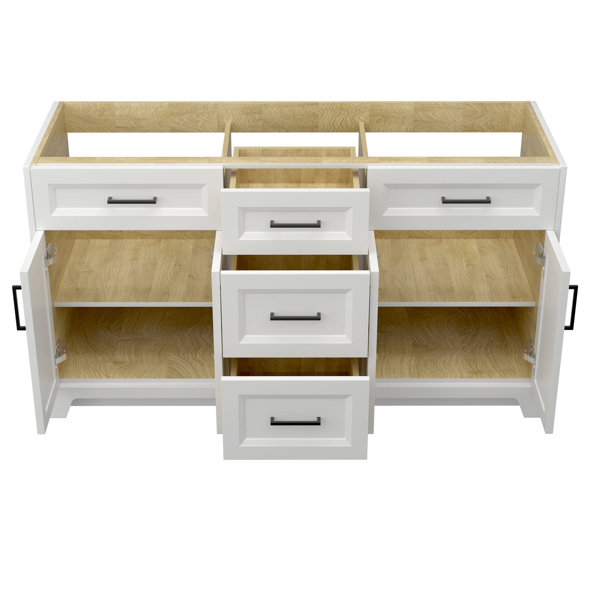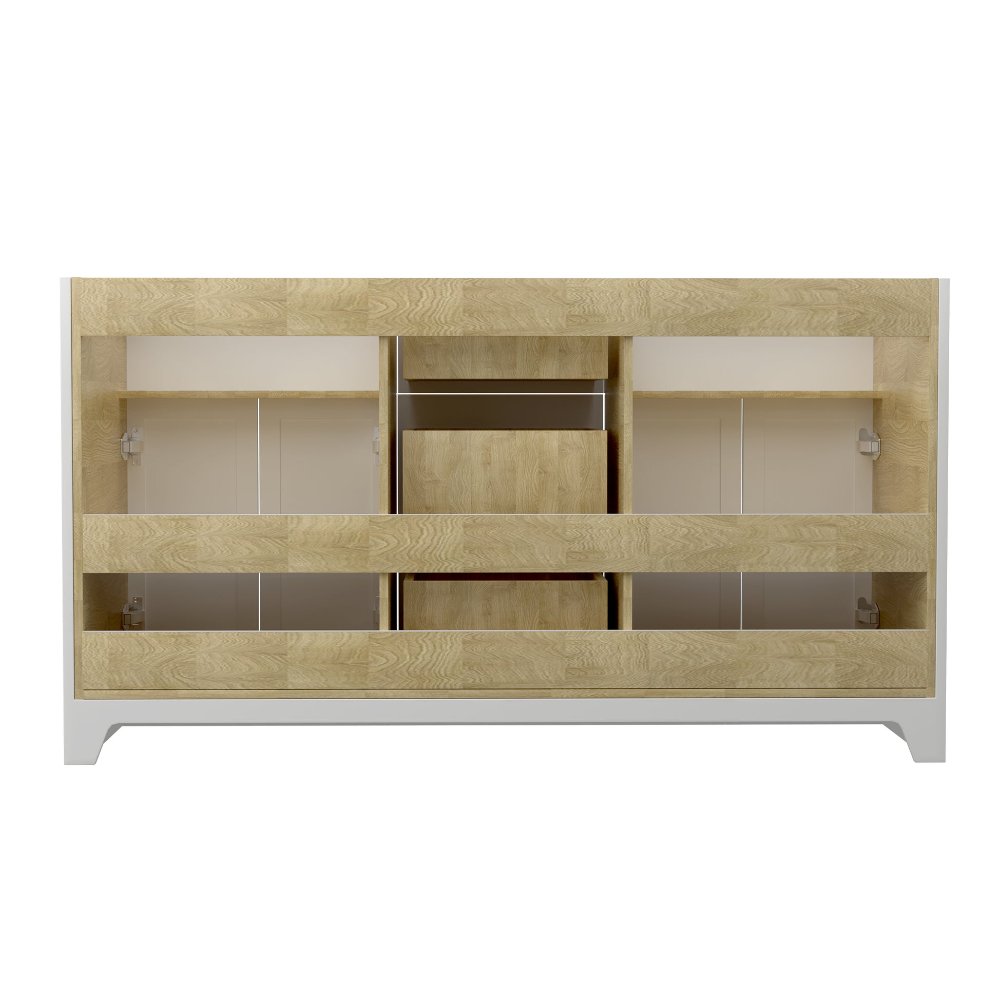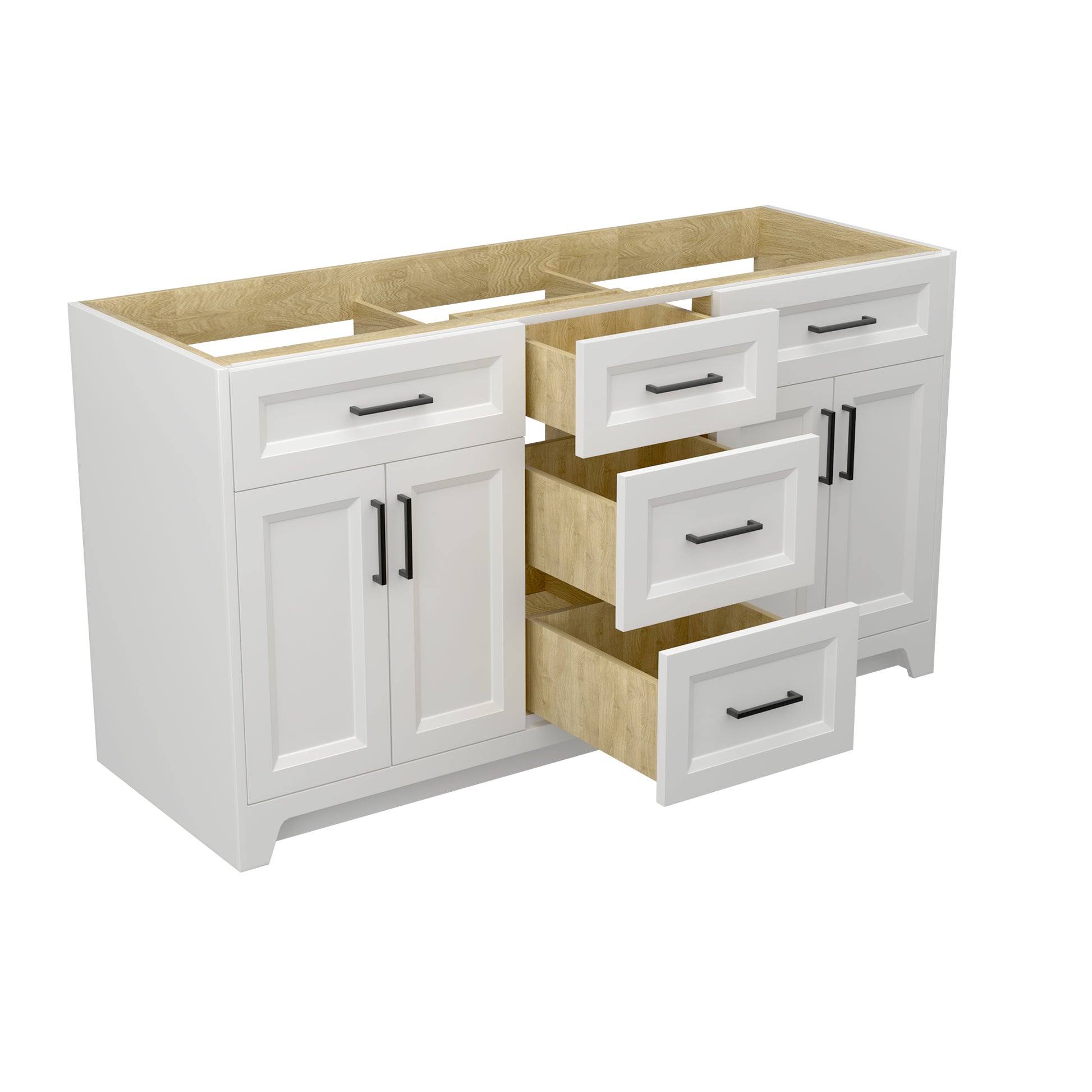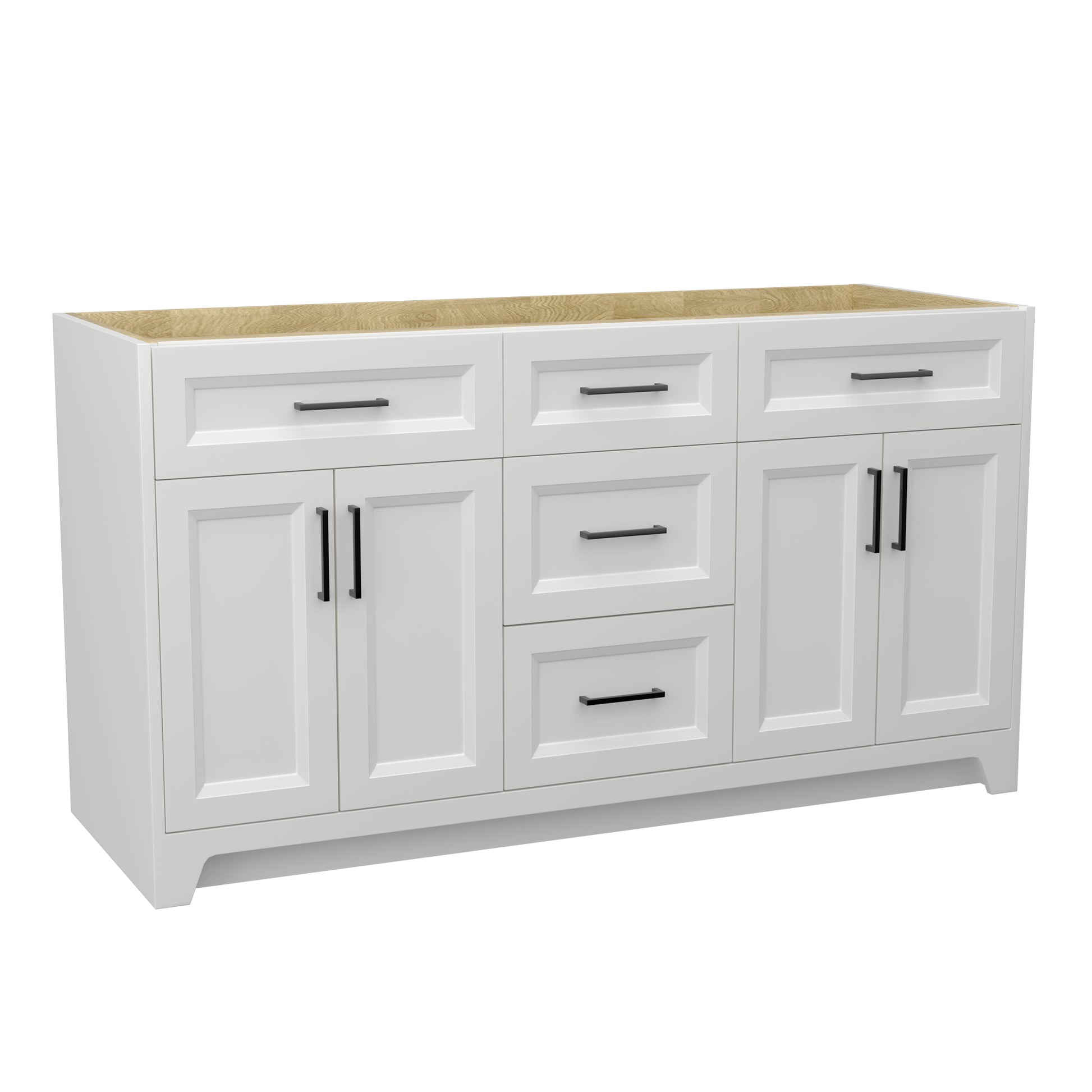 60 Inch Solid Wood Bathroom Vanity Without Top Sink, Modern Bathroom Vanity Base Only, Birch Solid Wood And Plywood Cabinet, Bathroom Storage Cabinet With Double Door Cabinet And 3 Drawers, White 3 White 4 5 48 In & Above 36 To 59 In Soft Close Doors