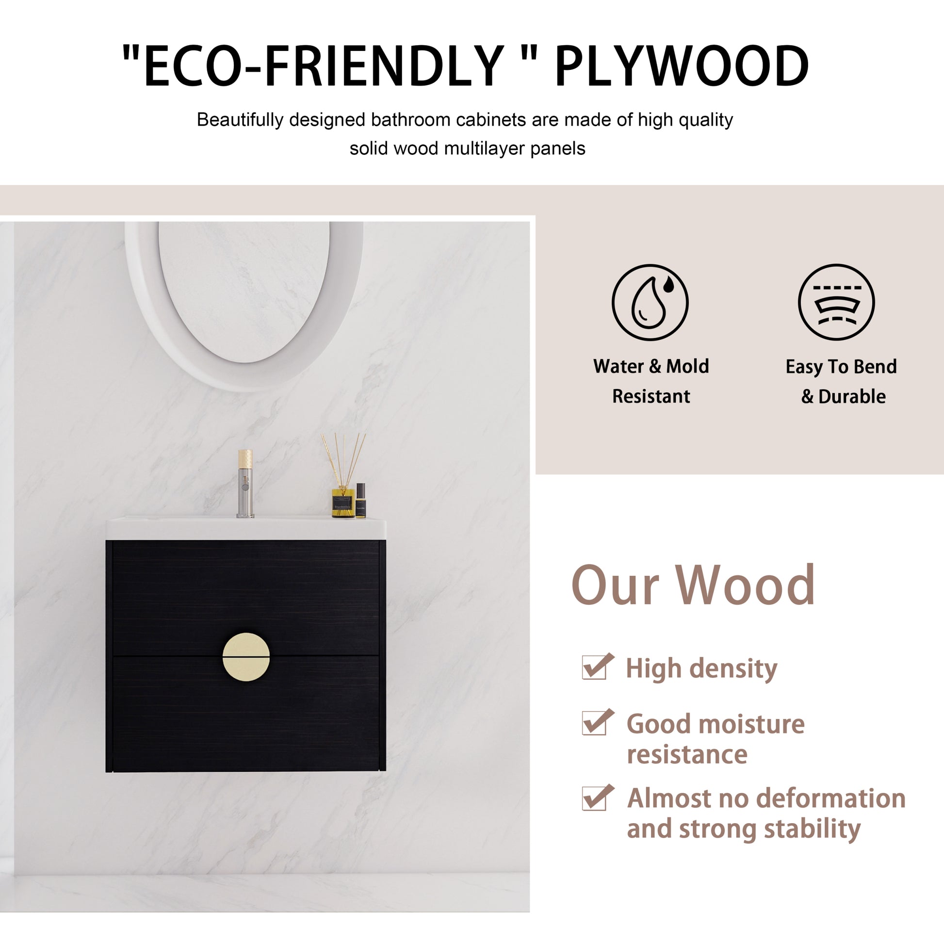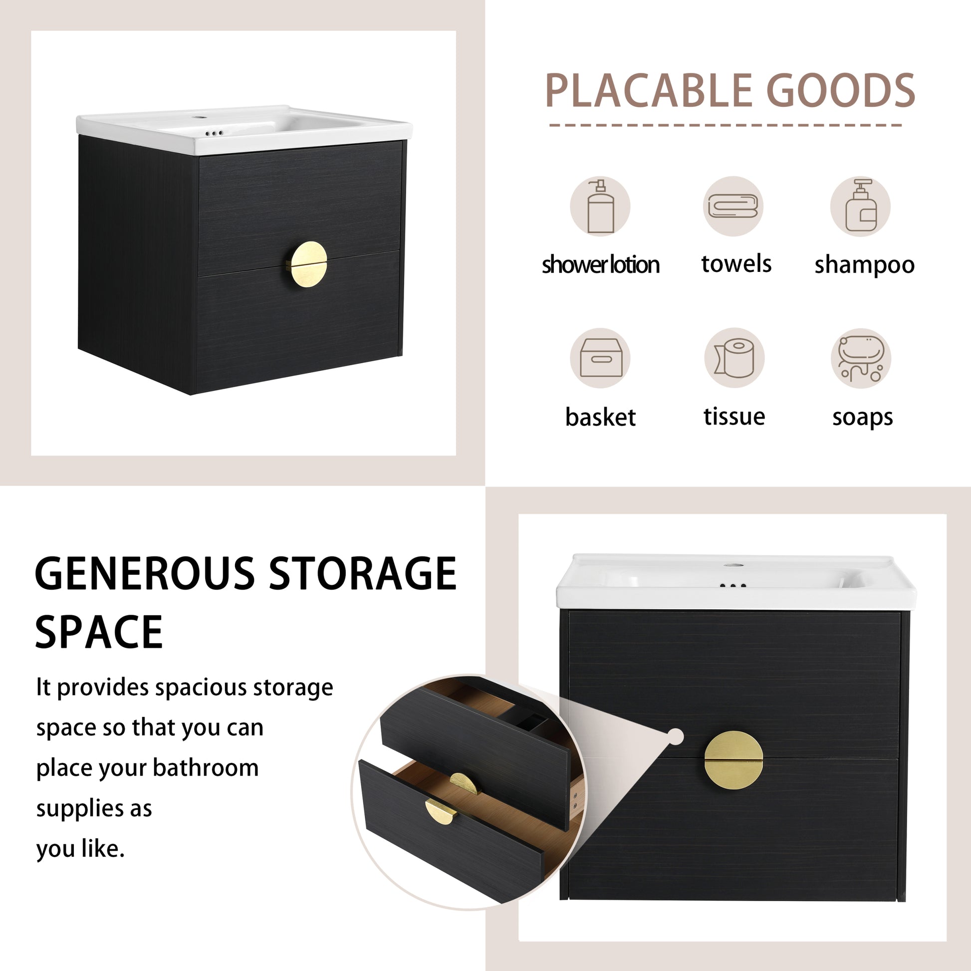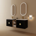 60 Inch Wall Mounted Bathroom Vanity With Sink, And A Small Storage Shelves Kd Packing Bvc07660Bct Black Chestnut Bathroom Wall Mounted Modern Plywood