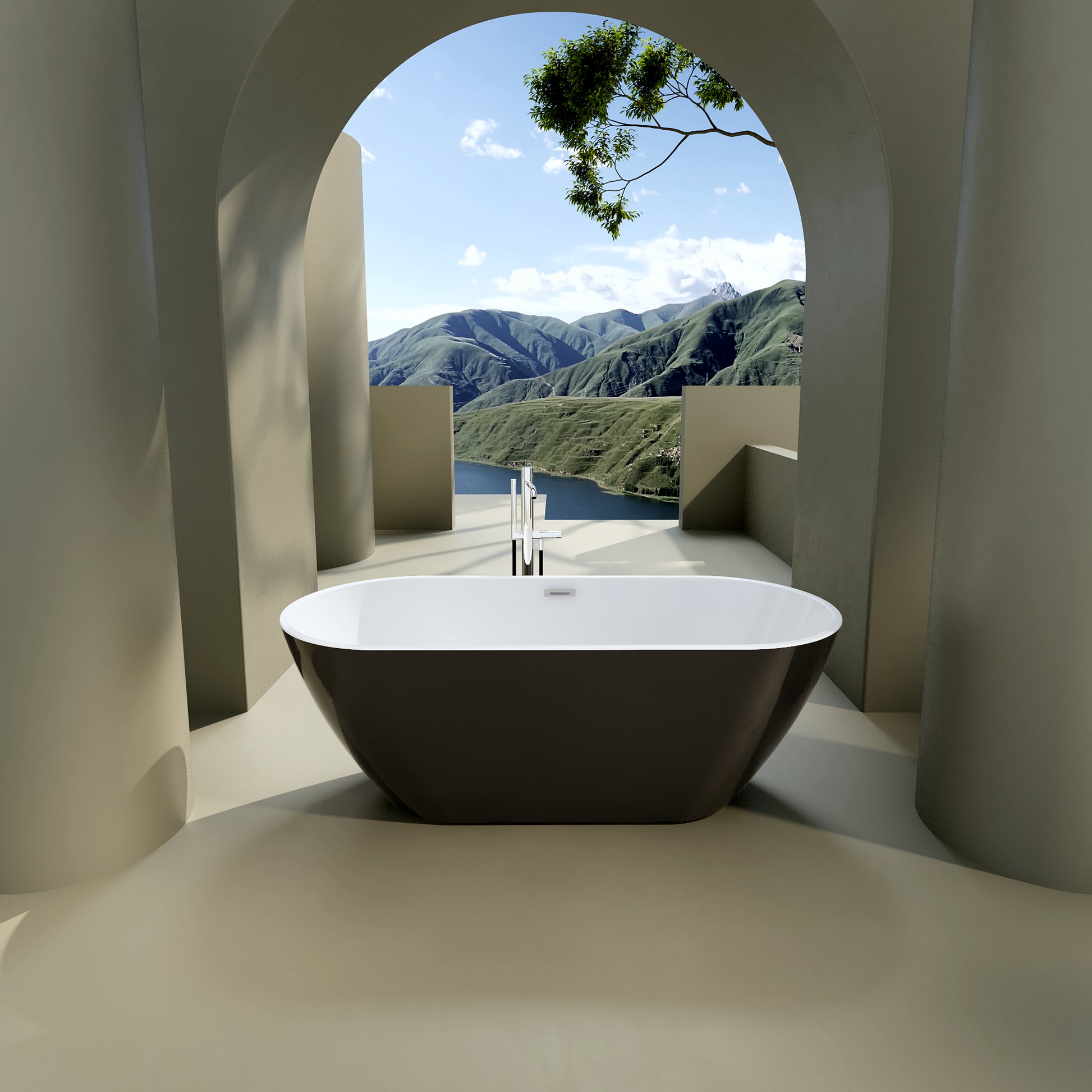 60" Lustrous Black Acrylic Freestanding Soaking Bathtub With Chrome Overflow And Drain, Cupc Certified Glossy Black 22A09 60B Black Fiberglass Acrylic
