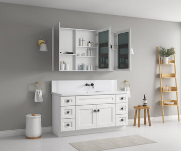 60'' W X 36'' H Bathroom Mirror Medicine Cabinet Wooden Door Medicine Cabinets For Bathroom, Wall Mounted Recessed Or Surface, Bathroom Mirror With Storage White Engineered Wood