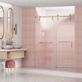 60" W X 76" H Frameless Soft Closing Shower Door, Single Sliding 5 16" 8Mm Clear Tempered Glass Shower Door With Explosion Proof Film, Stainless Steel Hardware, Gold 24D211 60G Combo 1 Gold Tempered Glass