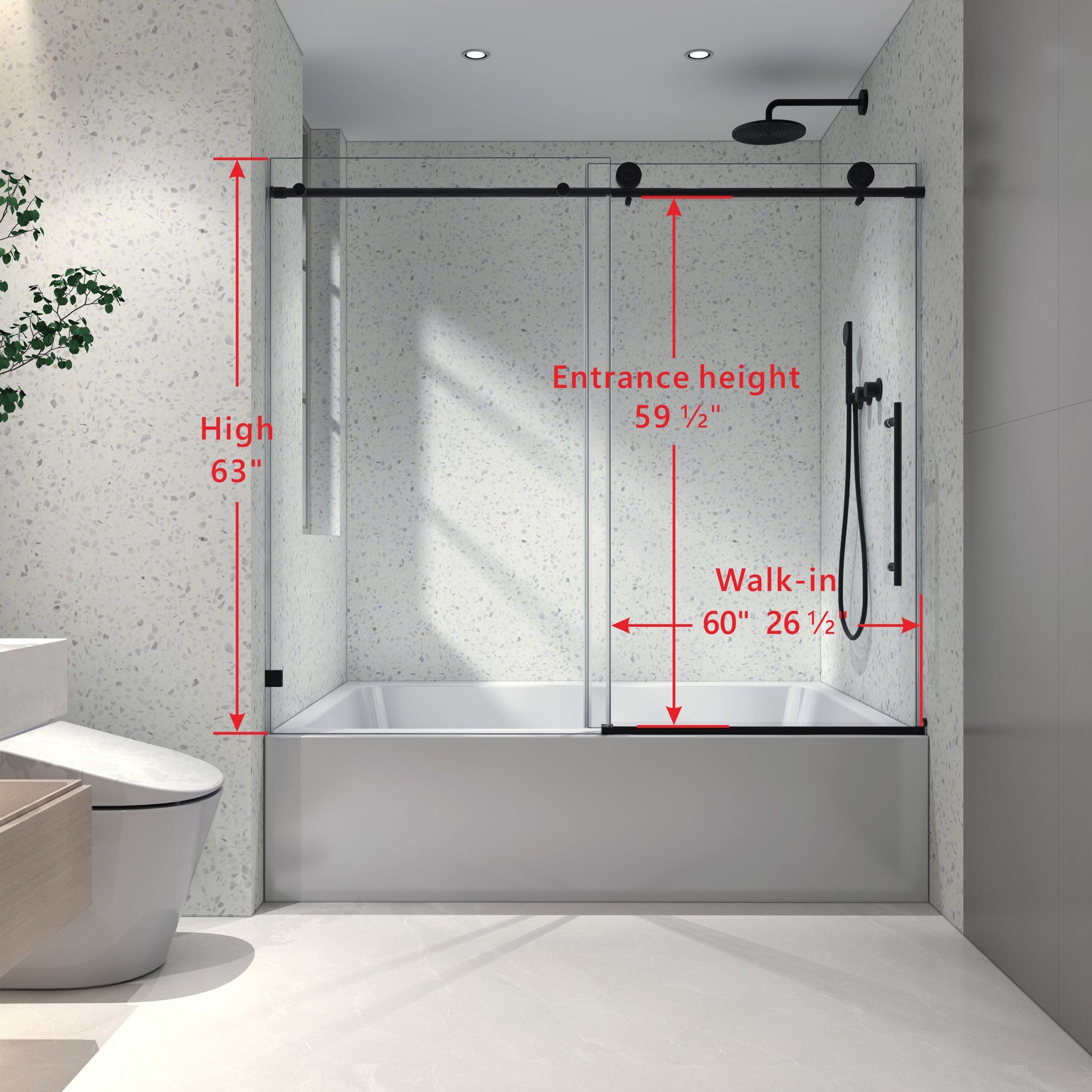 6063 Matte Black Frameless One Fixed And One Shifted Shower Door, 70Mm 304 Stainless Steel Large Pulleys With Adjustable Soft Closing Function,With Nano Easy Cleaning,Stick Explosion Proof Menbrance Matte Black Bathroom American Design,Minimalist Glass