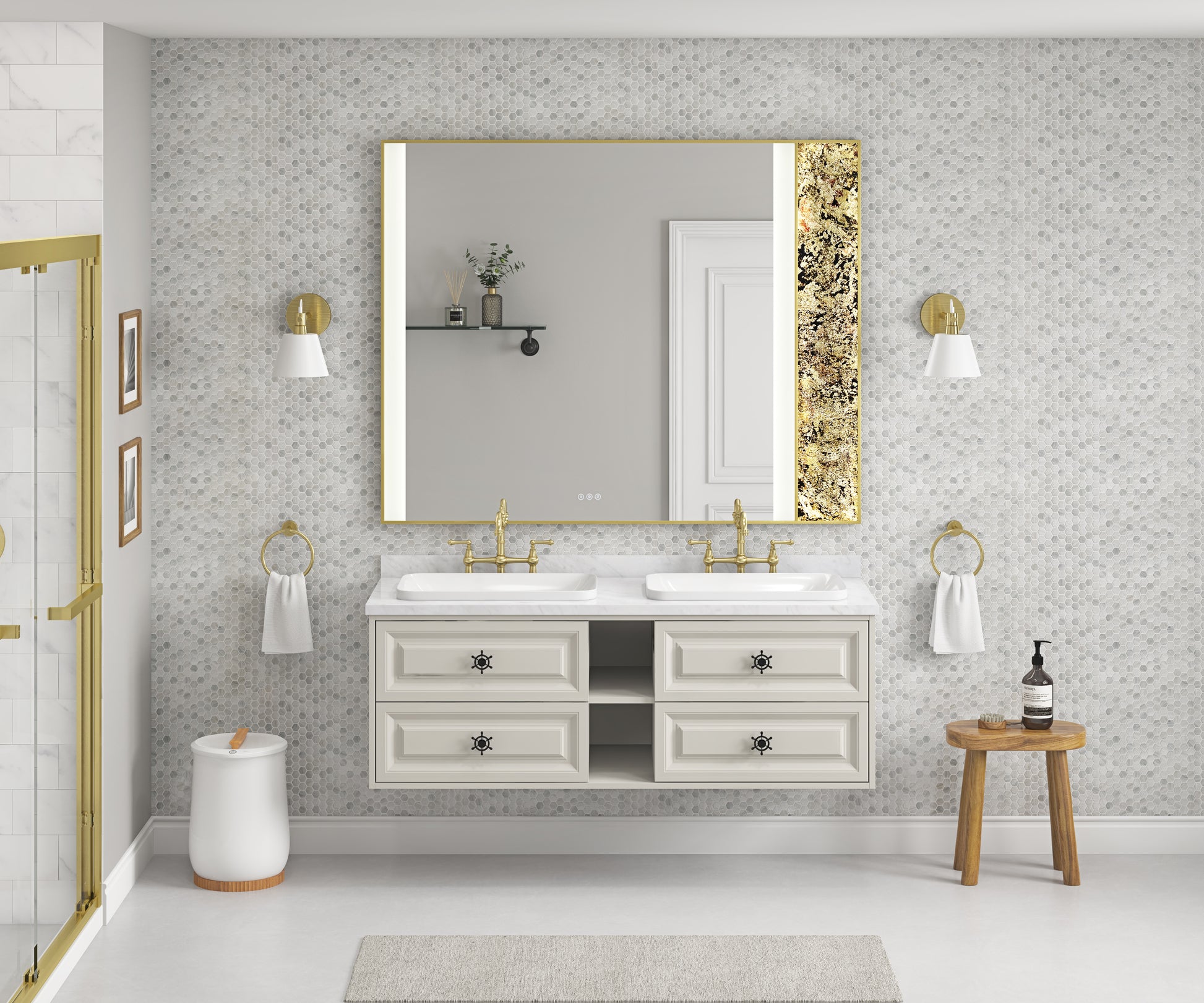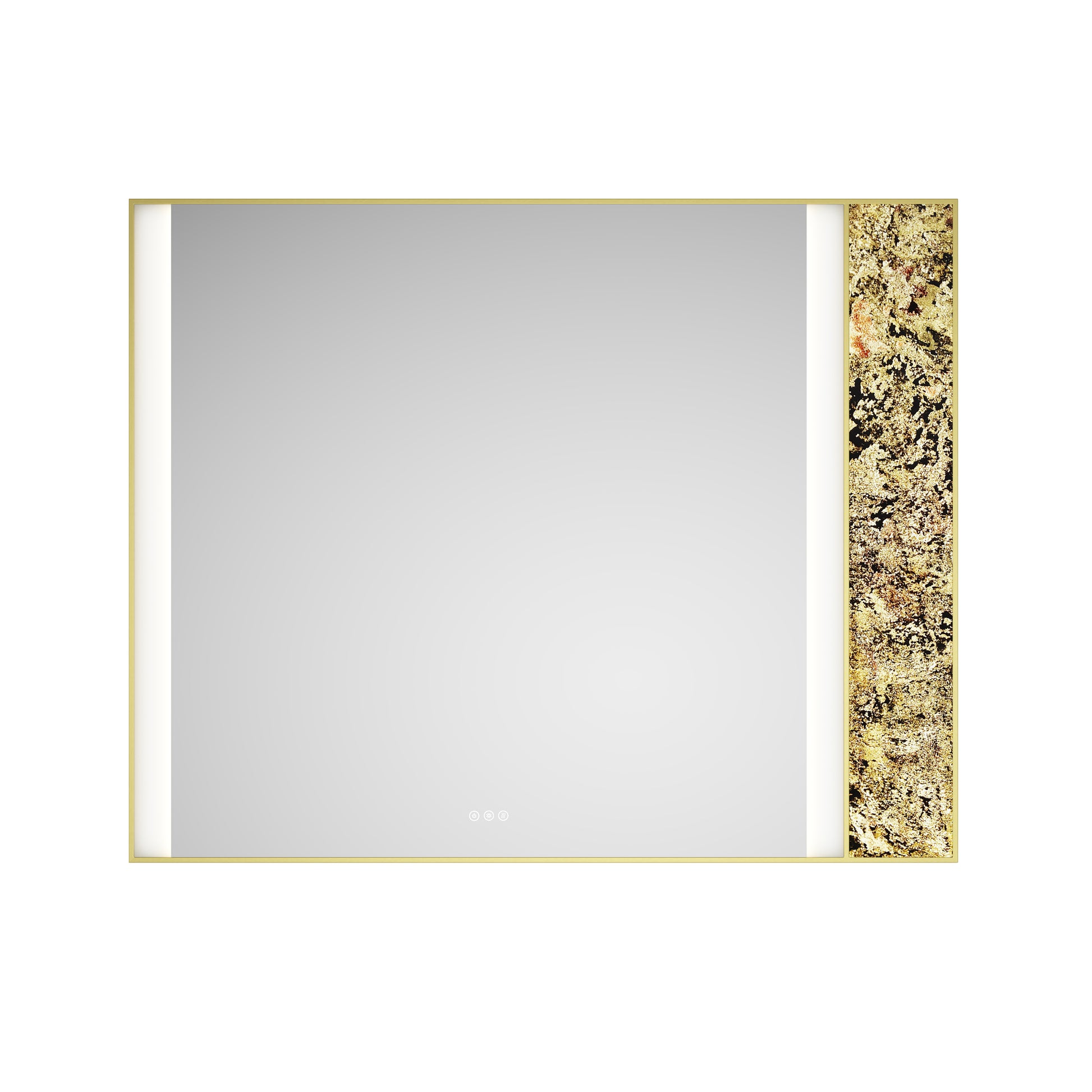 60In. W X 48 In. H Led Lighted Bathroom Wall Mounted Mirror With High Lumen Anti Fog Separately Control Natural Stone Decoration Decoration Follows Led Changesbedroom Full Length Mirror Bathroom L Gold Aluminium