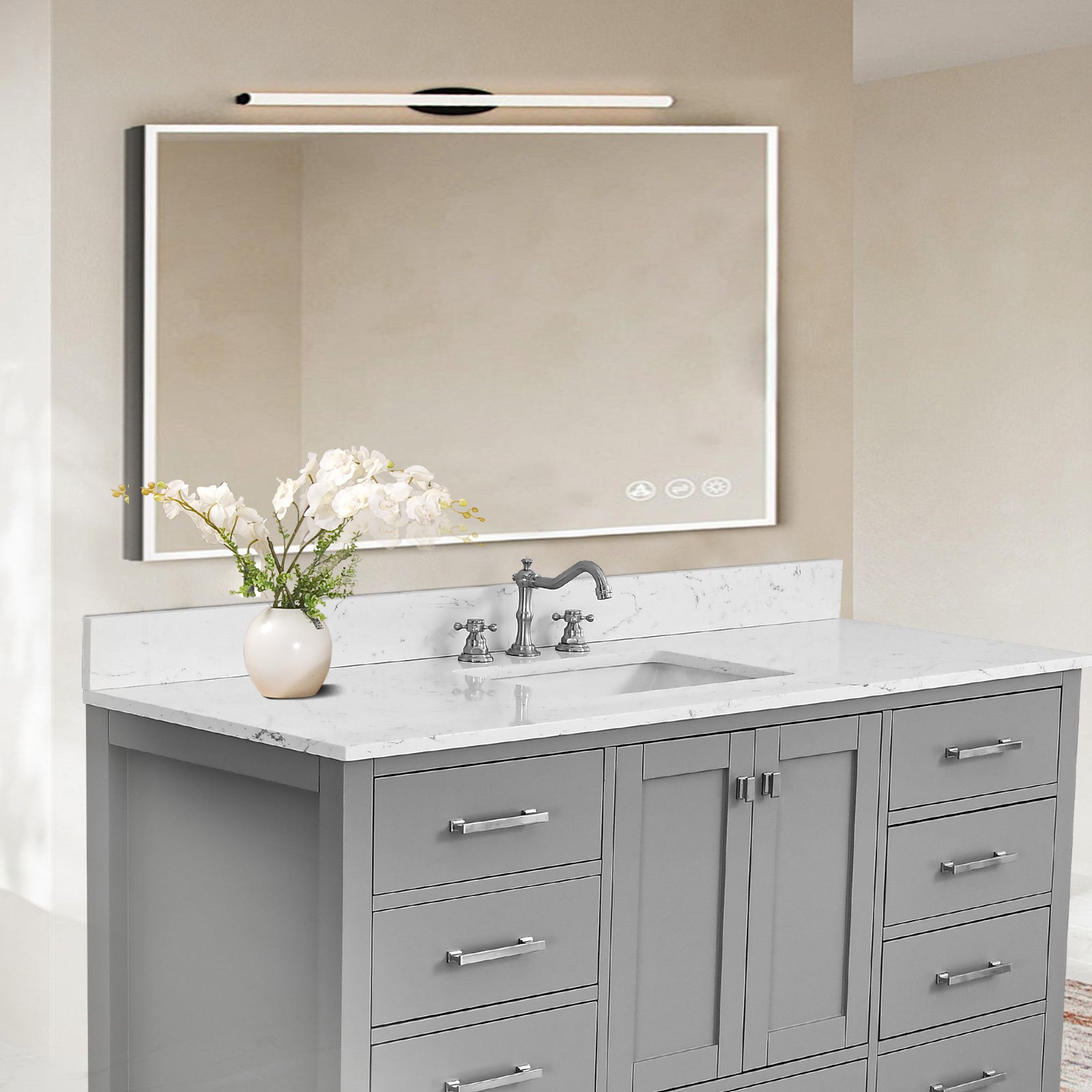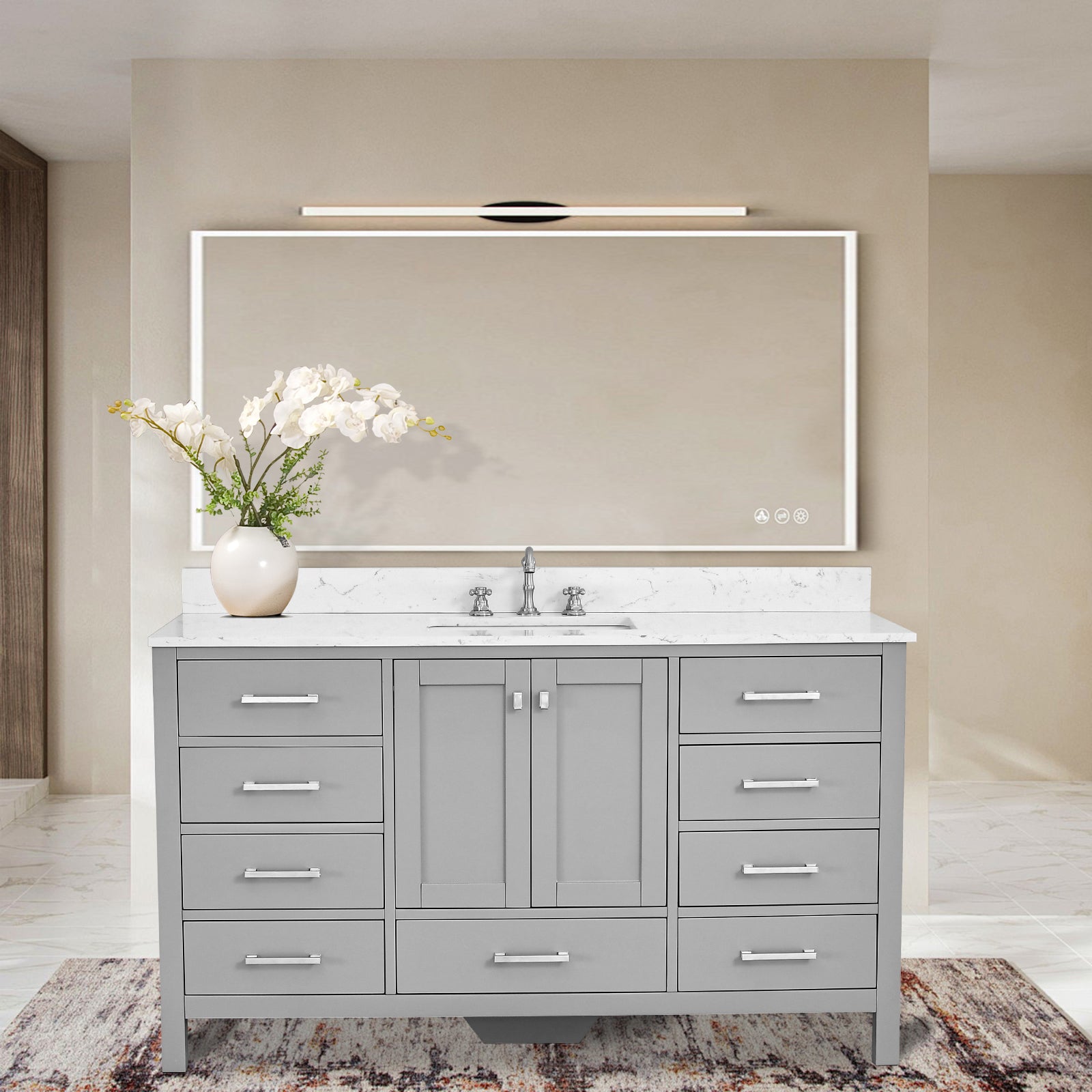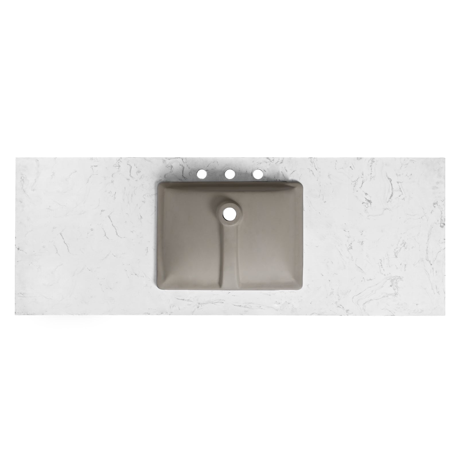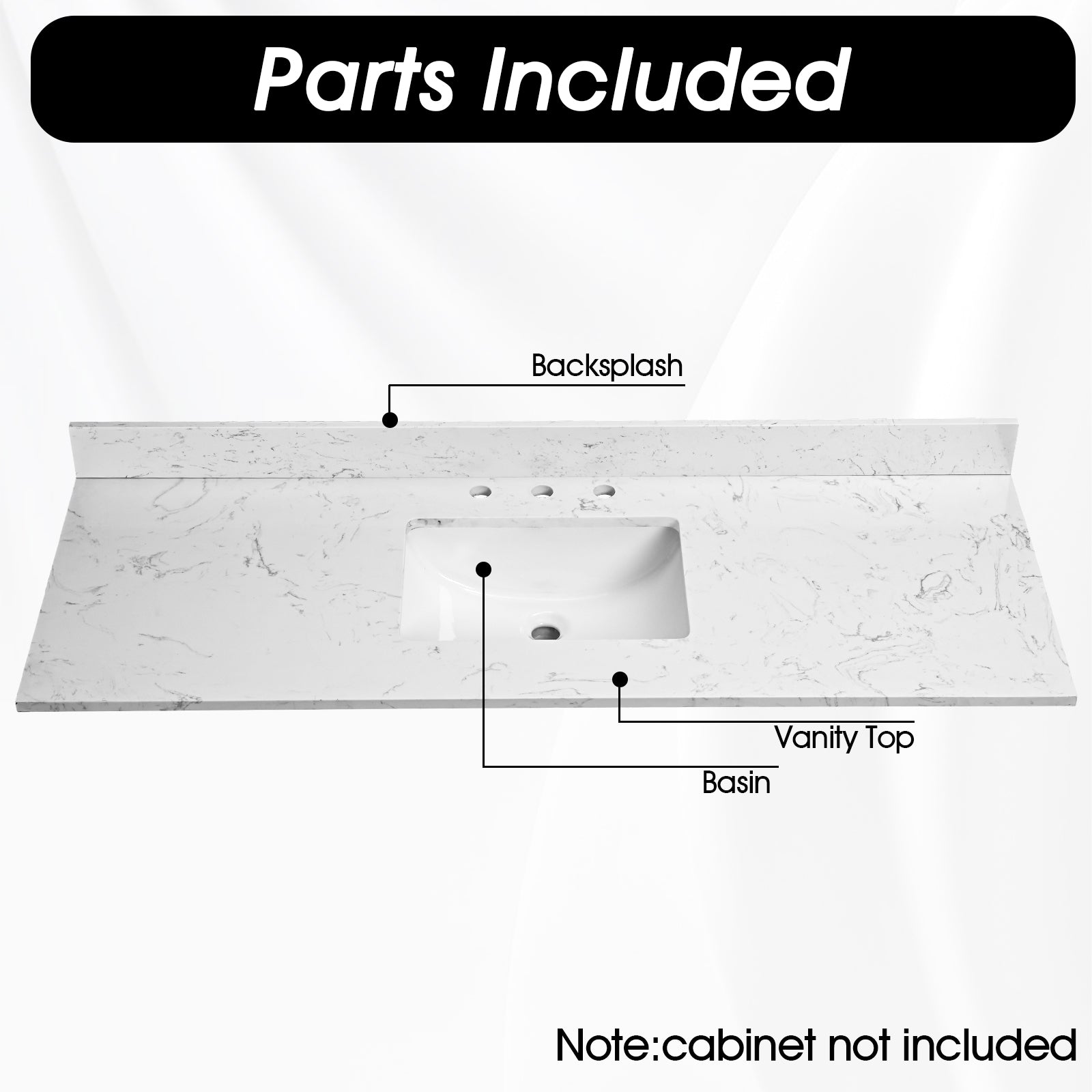 60"X 22" Bathroom Stone Vanity Top Engineered Color With Undermount Ceramic Sink And 3 Faucet Hole With Backsplash White Stone