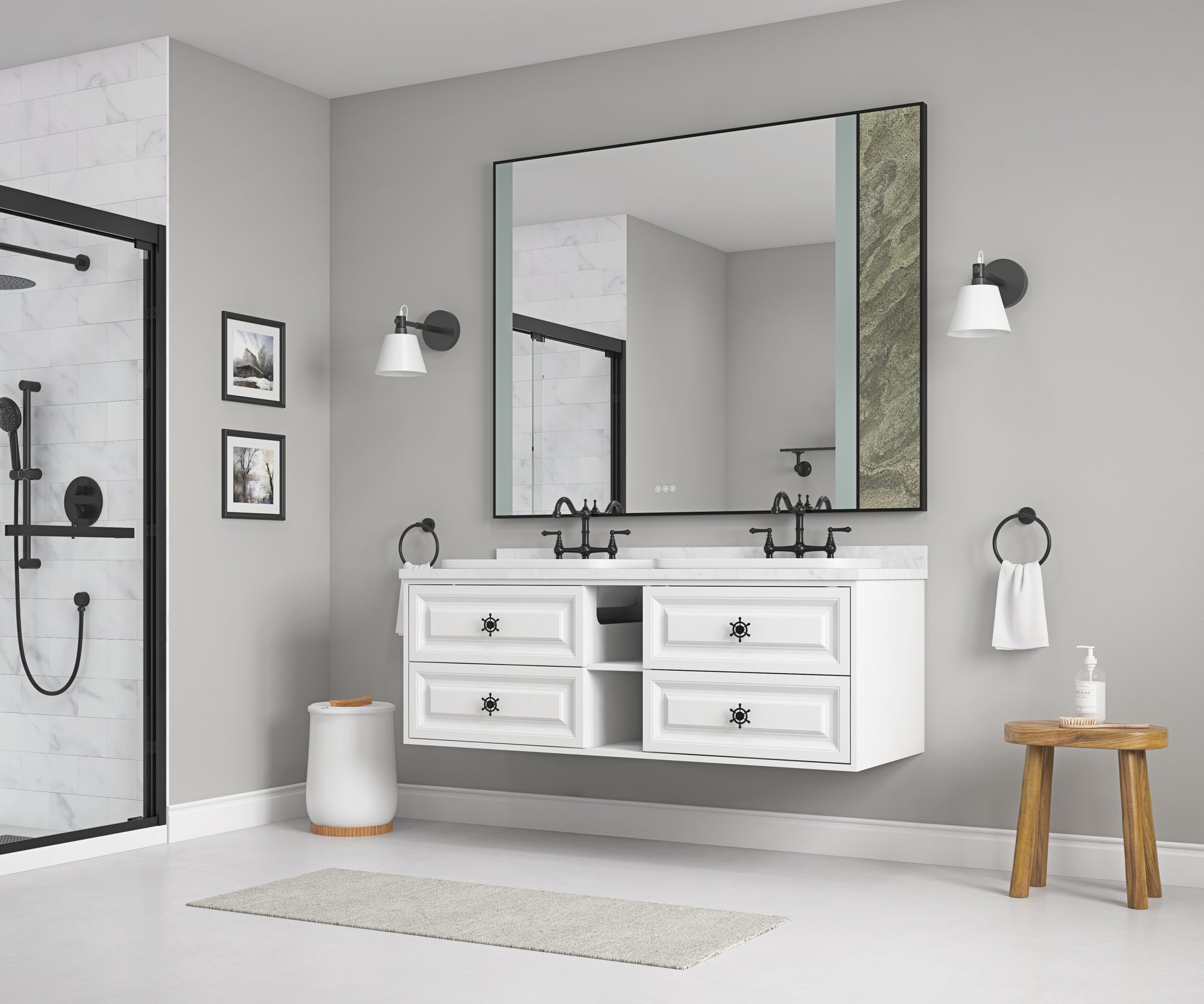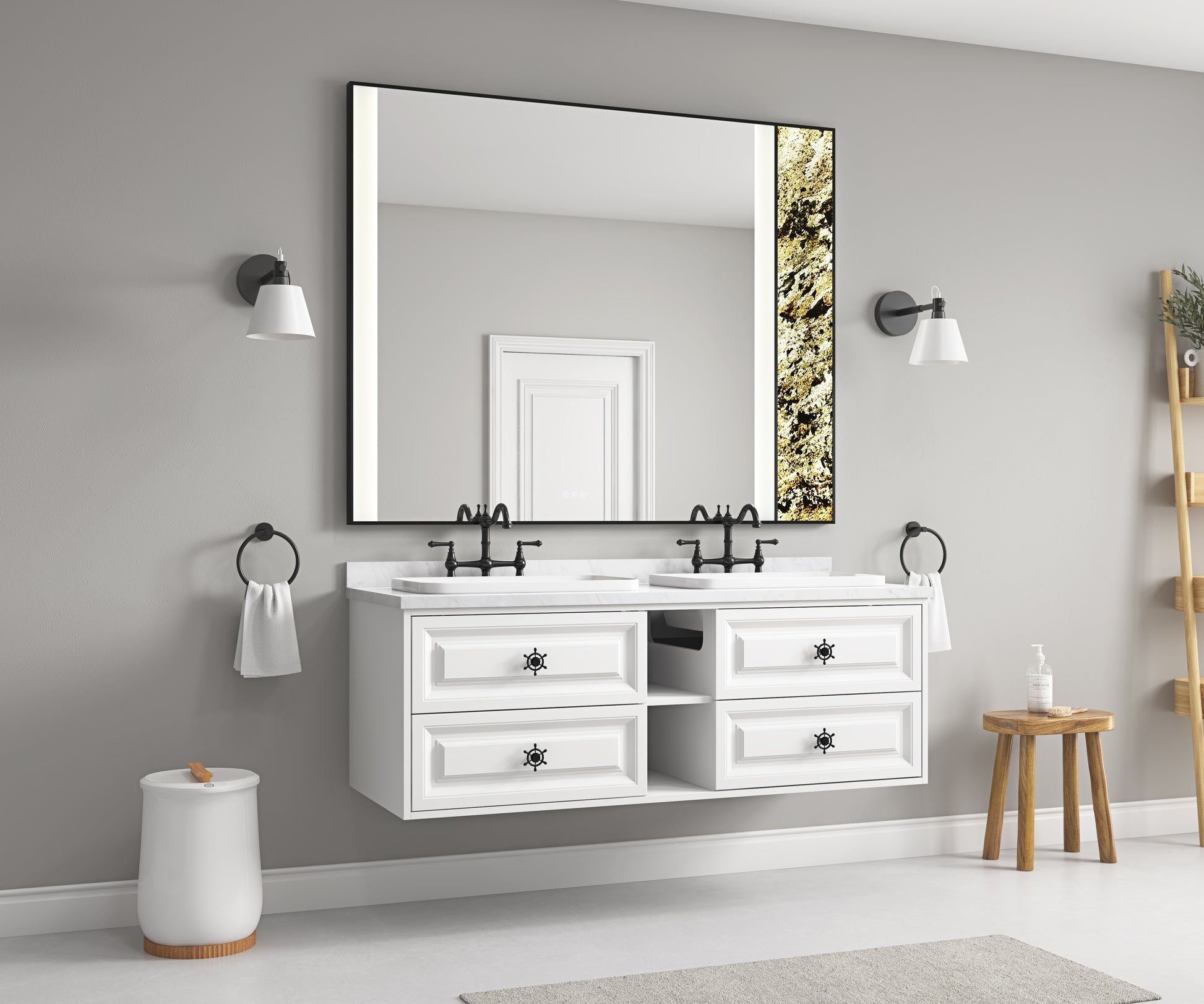 60X 48Inch Led Mirror Bathroom Vanity Mirror With Back Light, Wall Mount Anti Fog Memory Large Adjustable Vanity Mirrornatural Stone Decoration Decoration Follows Led Changes Matt Black Aluminium