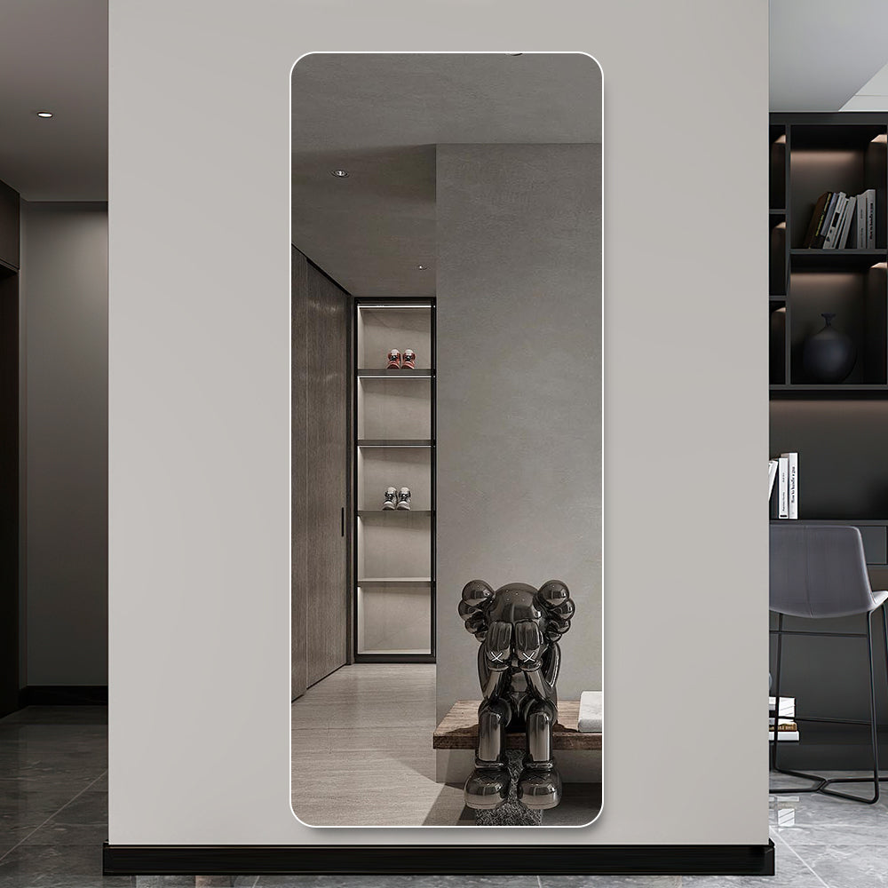 60X15Inch Full Body Mirror For Living Room Bedroom Cloakroom Wall Mounted Round Angle Dressing Mirror Aviation Grade Aluminum Silver Modern Aluminium