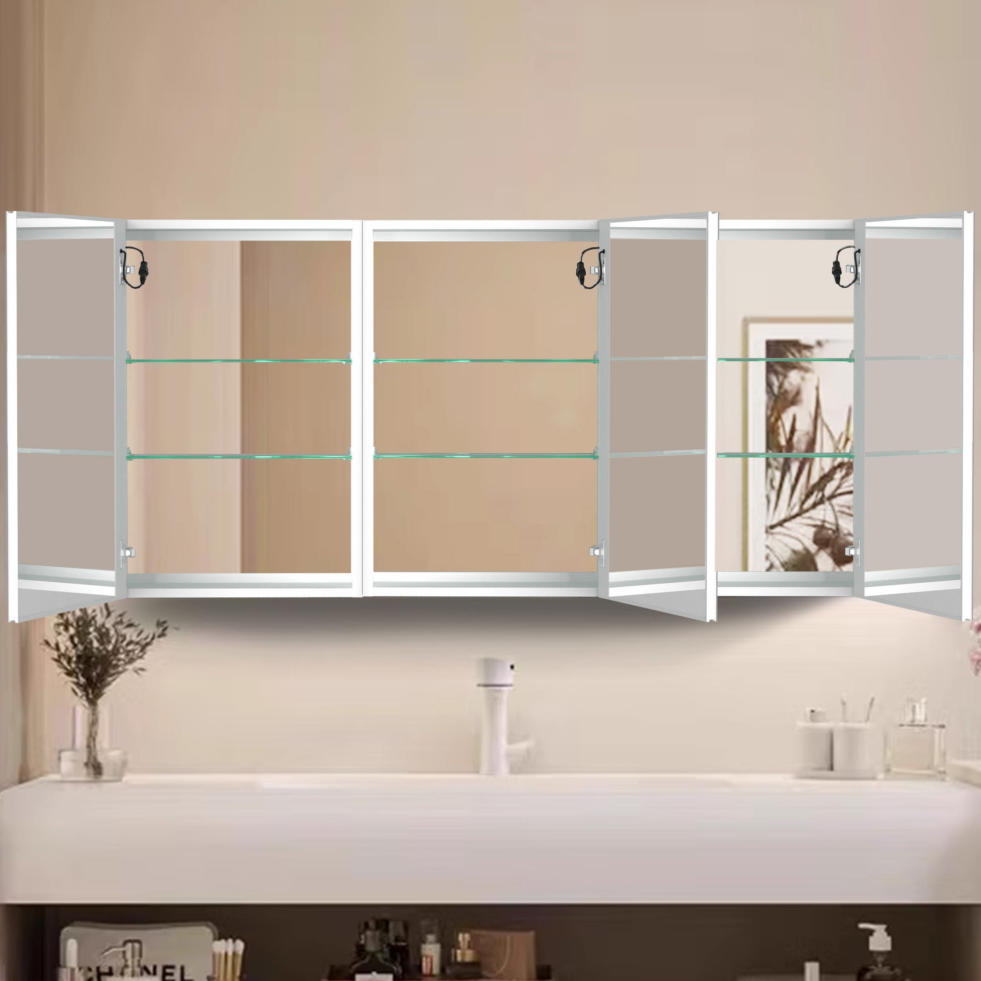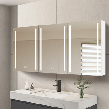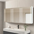 60X30 Inch Led Bathroom Medicine Cabinet Surface Mount Double Door Lighted Medicine Cabinet, Medicine Cabinets For Bathroom With Mirror Defogging, Dimmer White White Modern Aluminium
