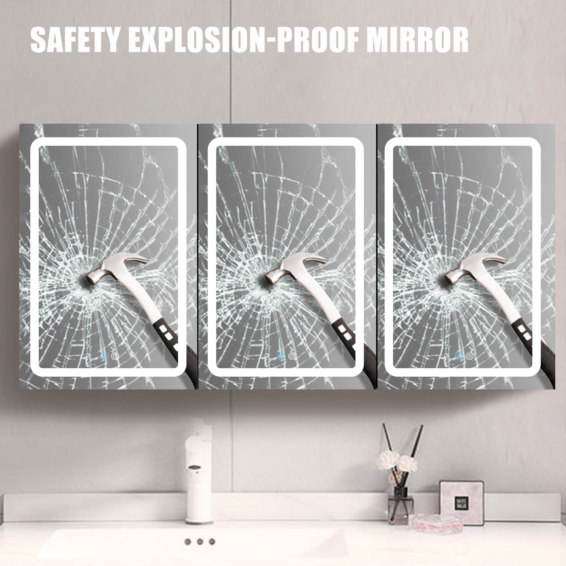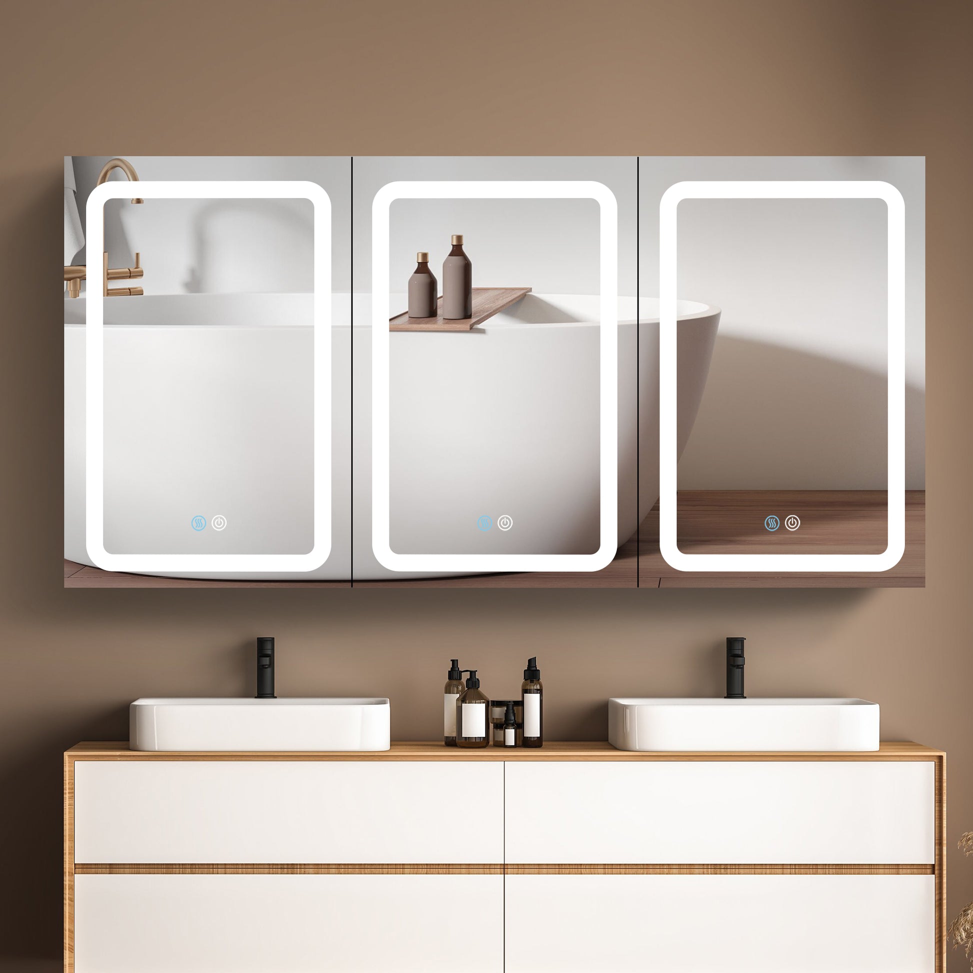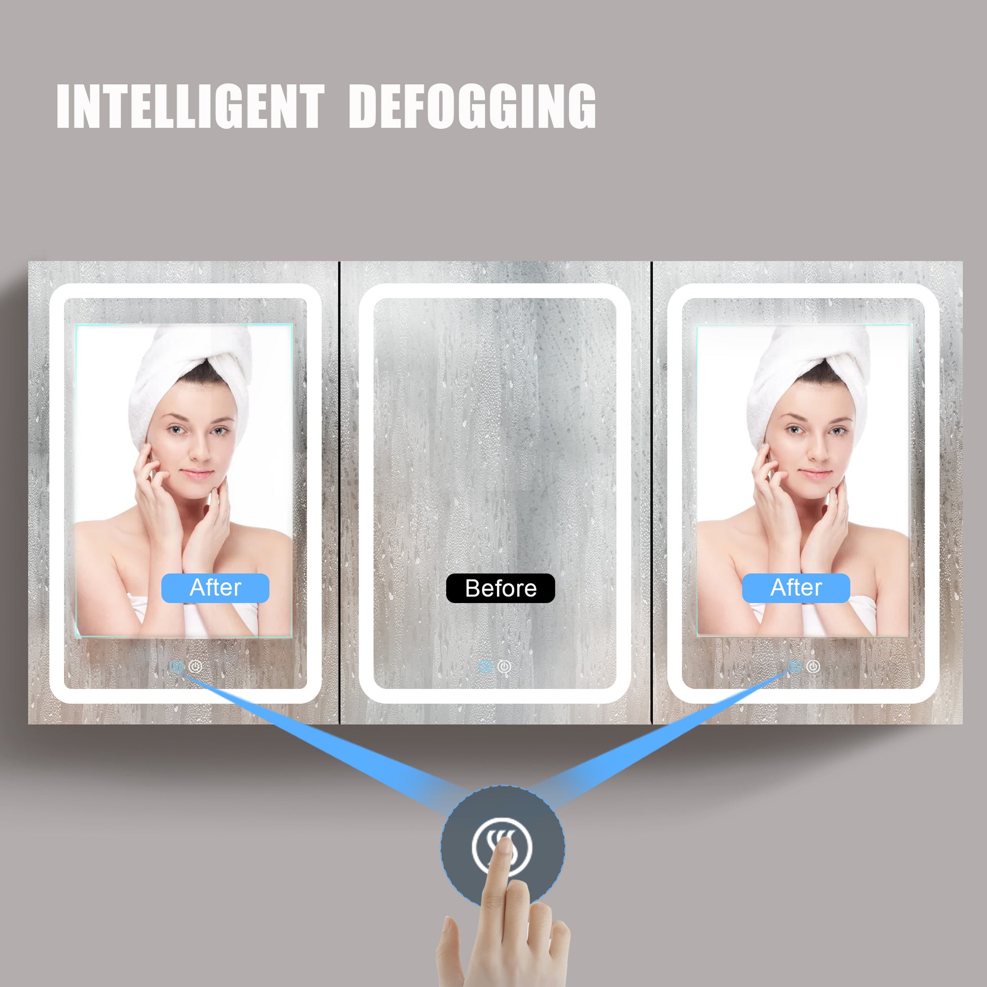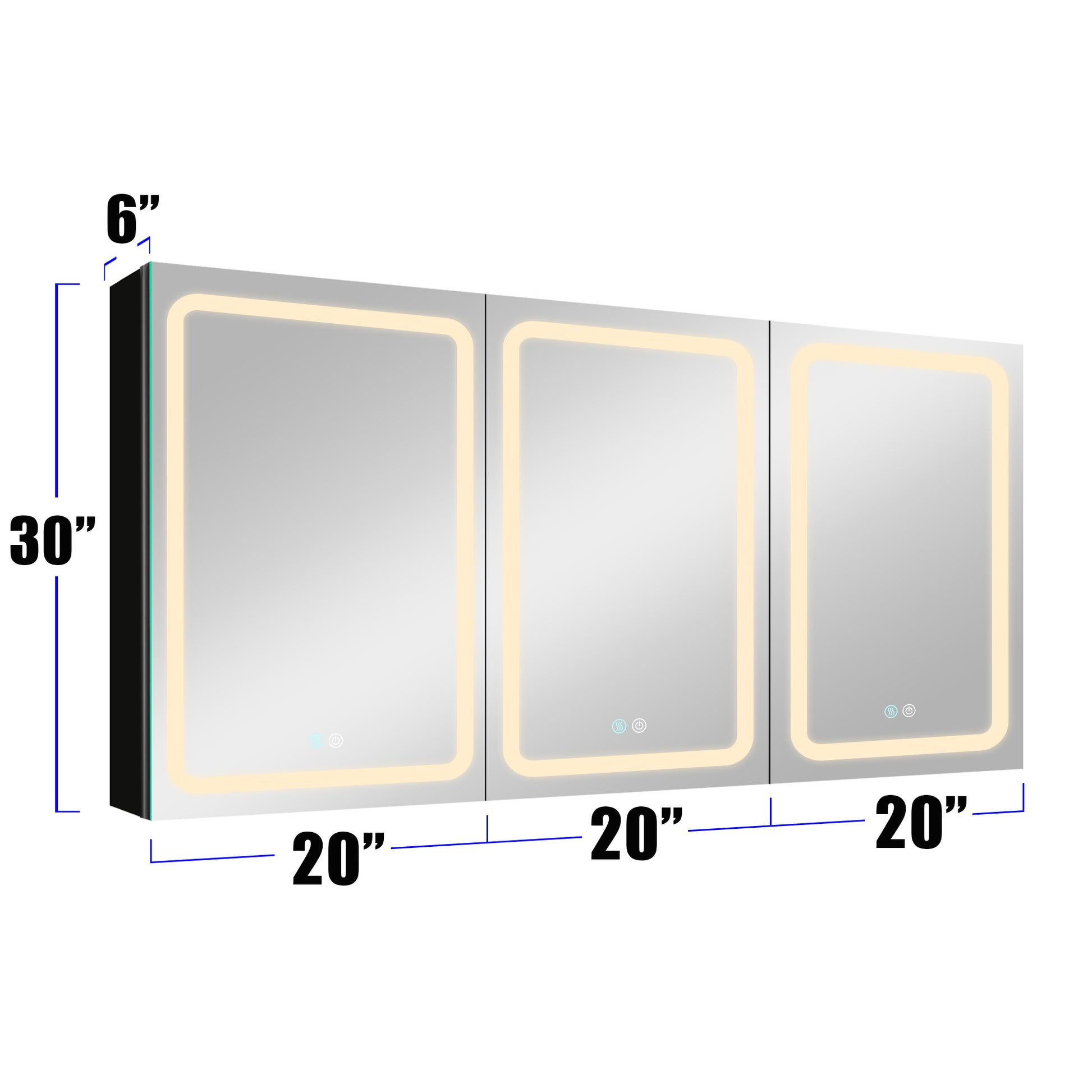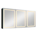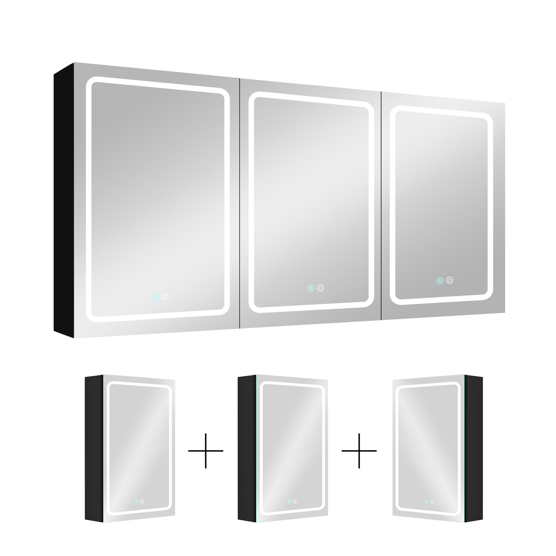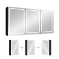 60X30 Inch Led Bathroom Medicine Cabinet Surface Mount Double Door Lighted Medicine Cabinet, Medicine Cabinets For Bathroom With Mirror Defogging, Dimmer Black Black Aluminium
