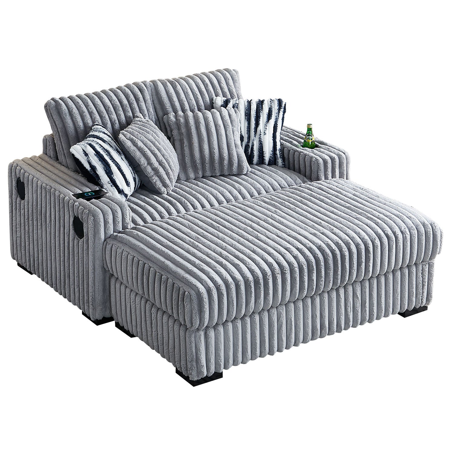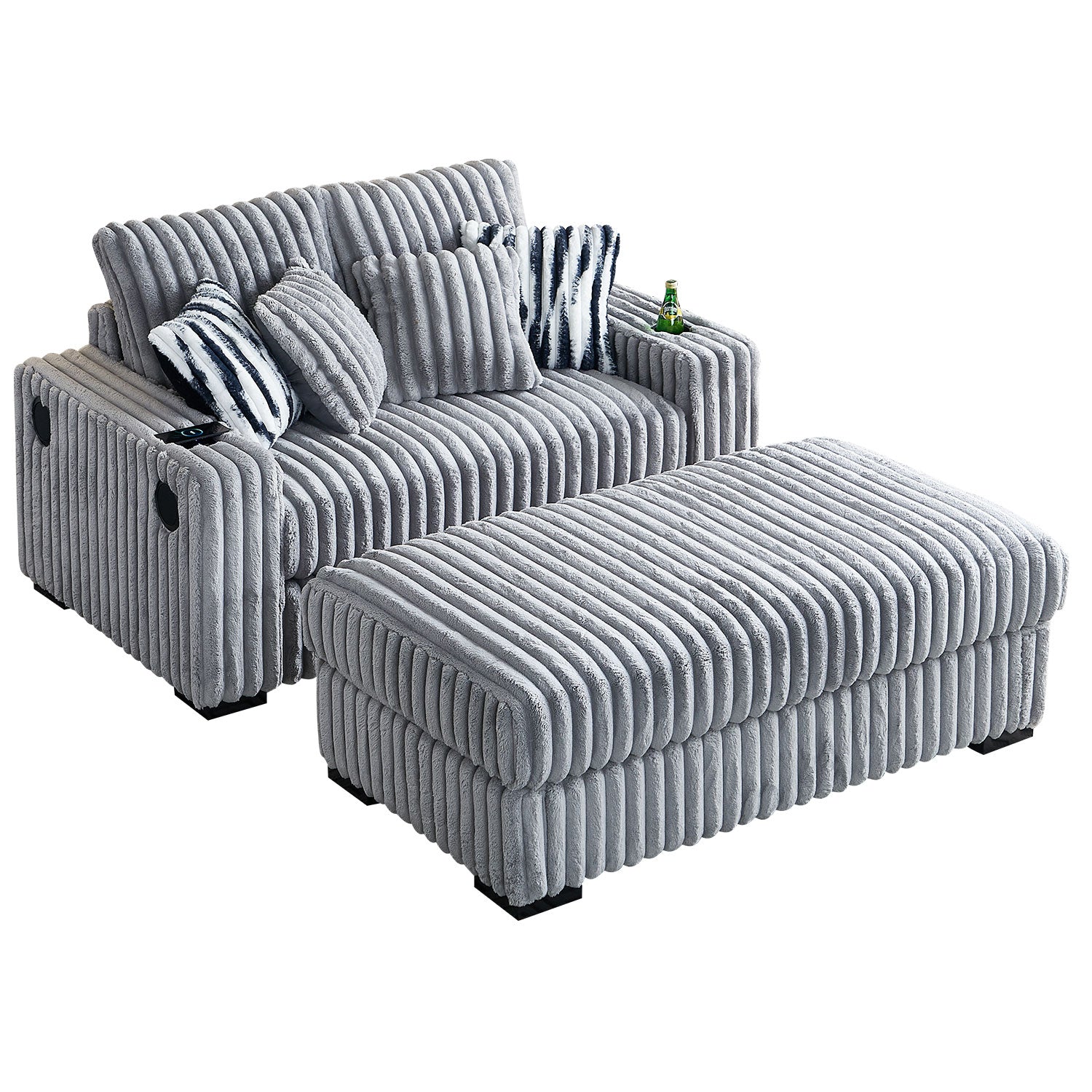 61.42Inch Square Arm Loveseat With Ottoman, 2Pcs Back Cushions And 4Pcs Toss Pillows, Cupholder,Bluetooth Speaker,Wireless Charger,Usb Ports For Living Room And Bedroom,Light Grey Light Grey Polyester Wood Primary Living Space Soft Loose Back Modern Pine