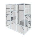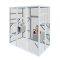 62.6" Wooden Cat House Large Catio, Solid Wood Cat Cage Shelter Enclosure Playpen With Anti Uv& Waterproof, 7 Platforms And 2 Resting Boxes Gray Wood