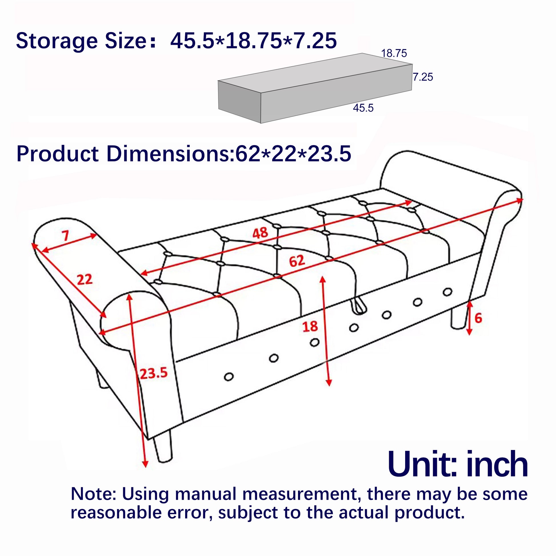 62" Bedroom Tufted Button Storage Bench, Modern Fabric Upholstered Ottoman, Window Bench, Rolled Arm Design For Bedroom, Living Room, Foyer Black Black Foam Fabric