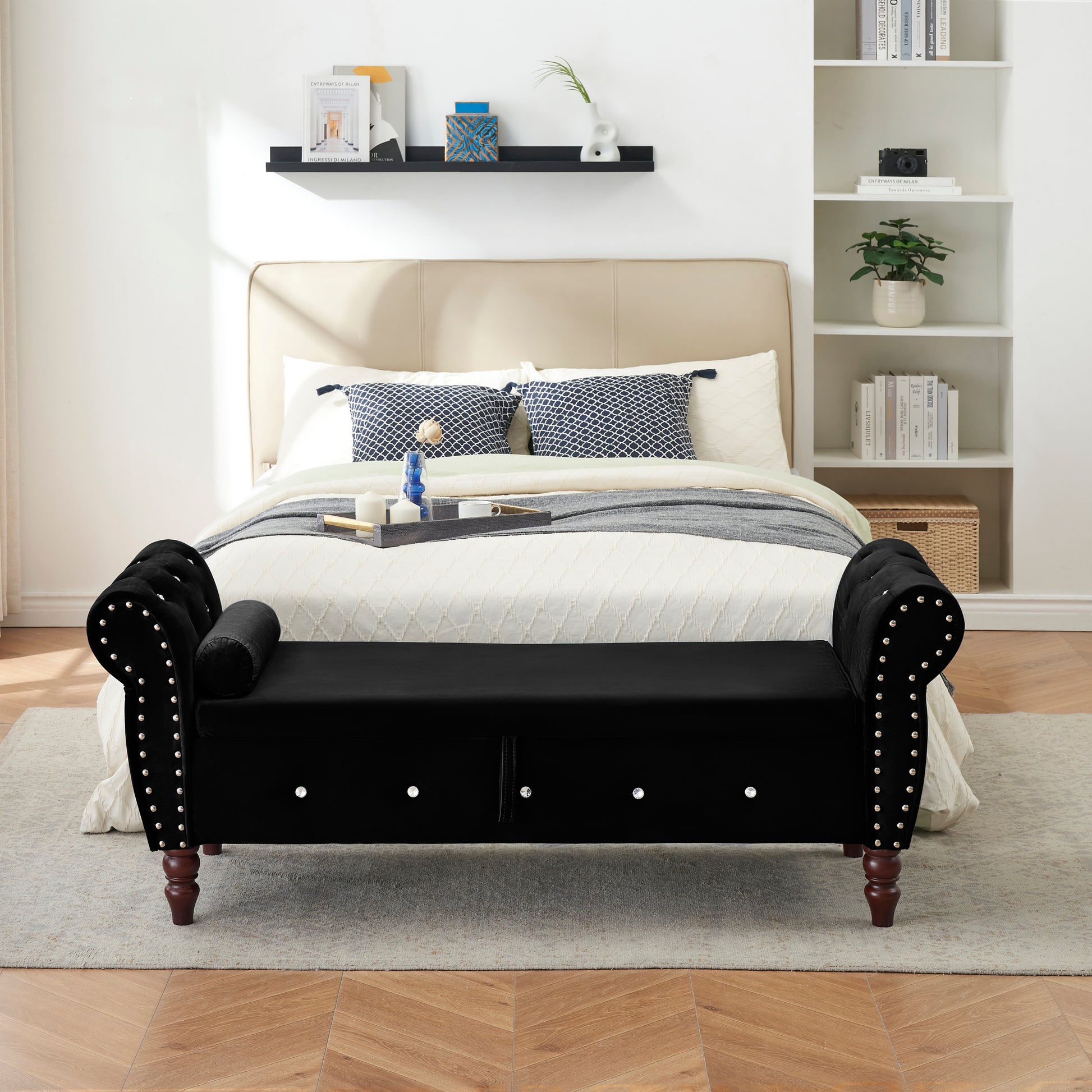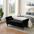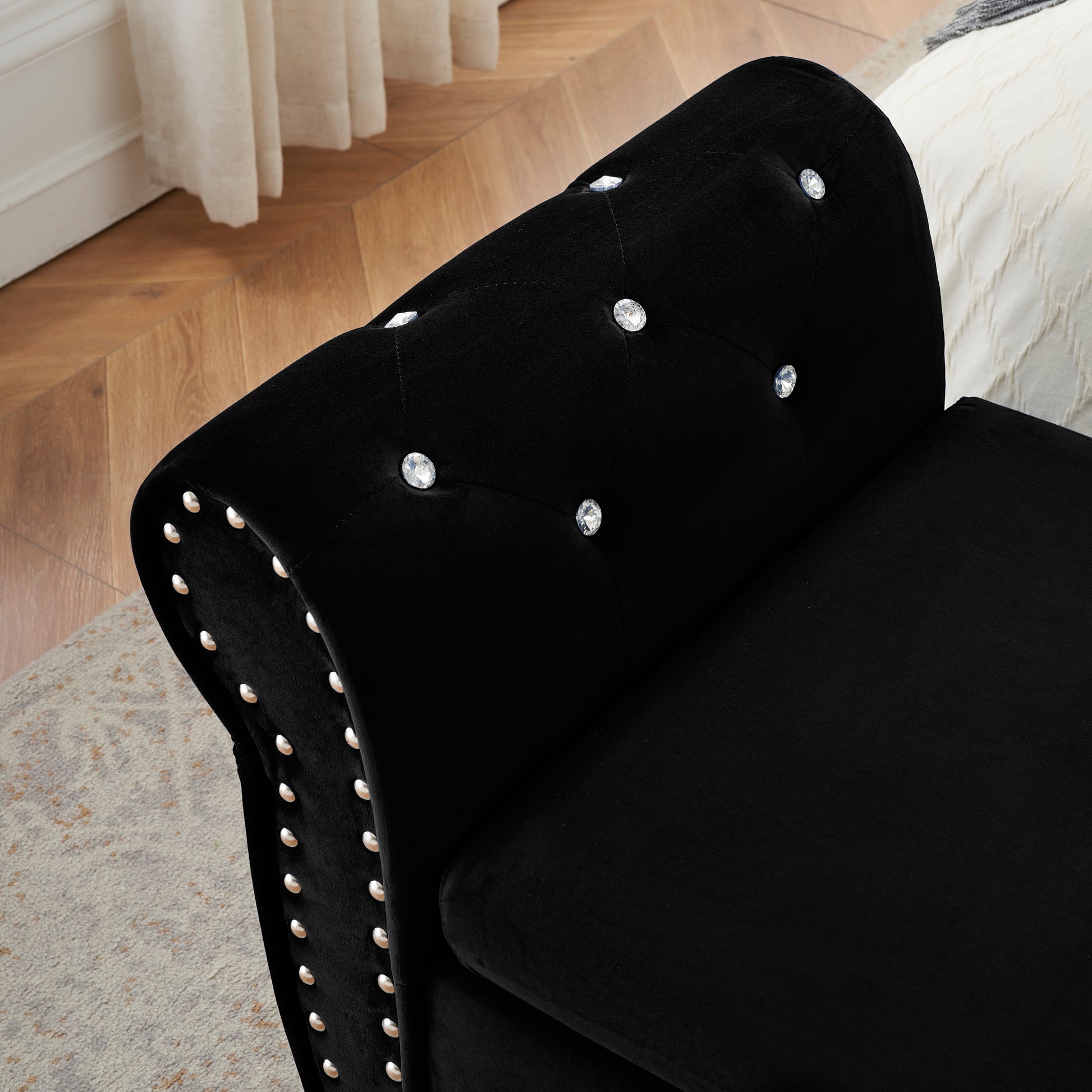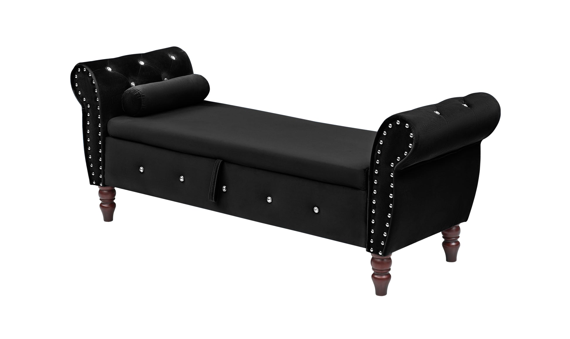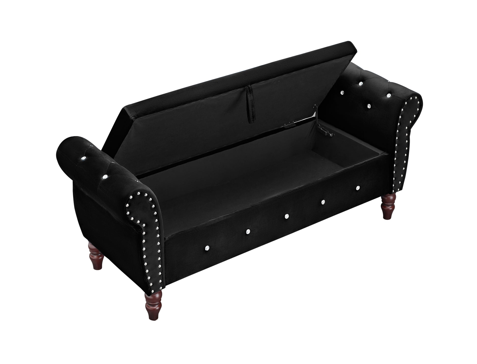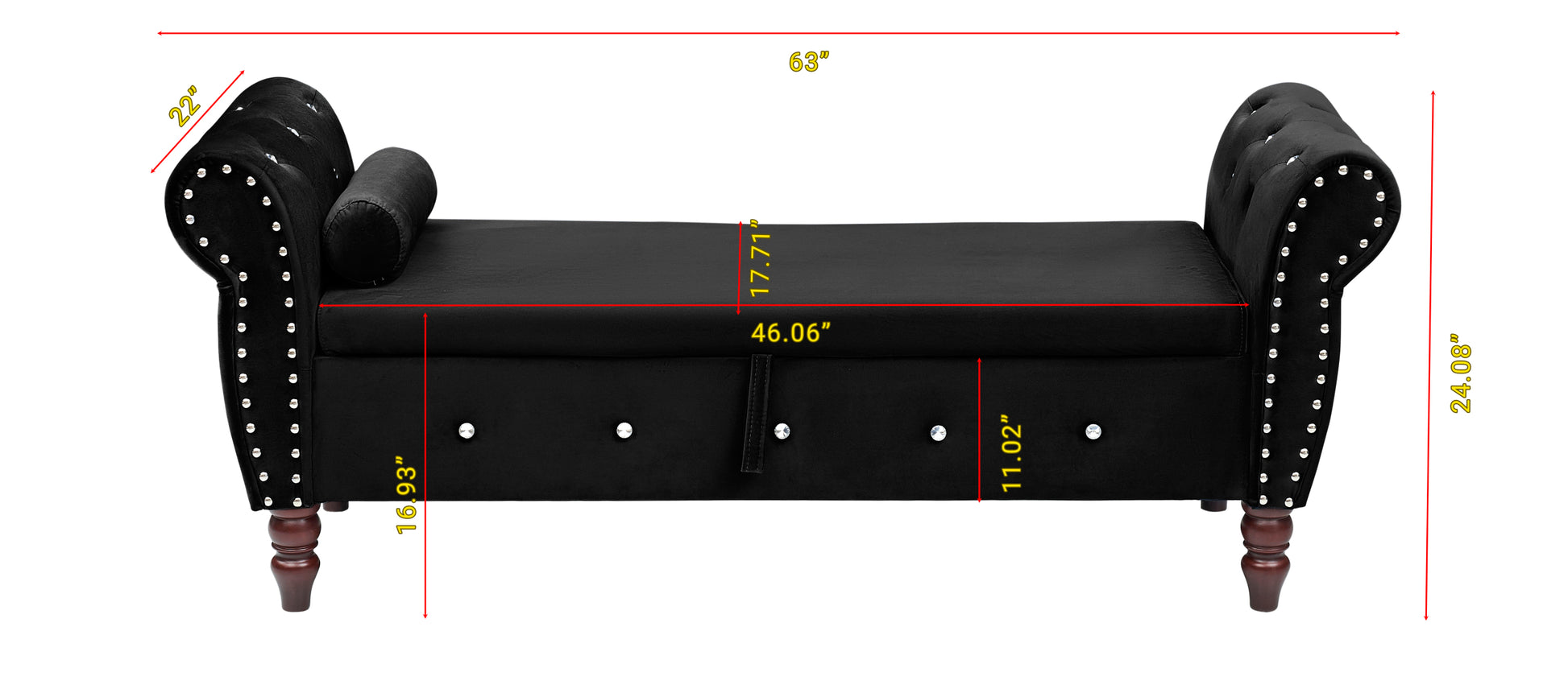 63.38"Velvet Multifunctional Storage Rectangular Ottoman Bench Comes With Crystal Buckle Solid Wood Legs With 1 Pillow,Black Black Velvet