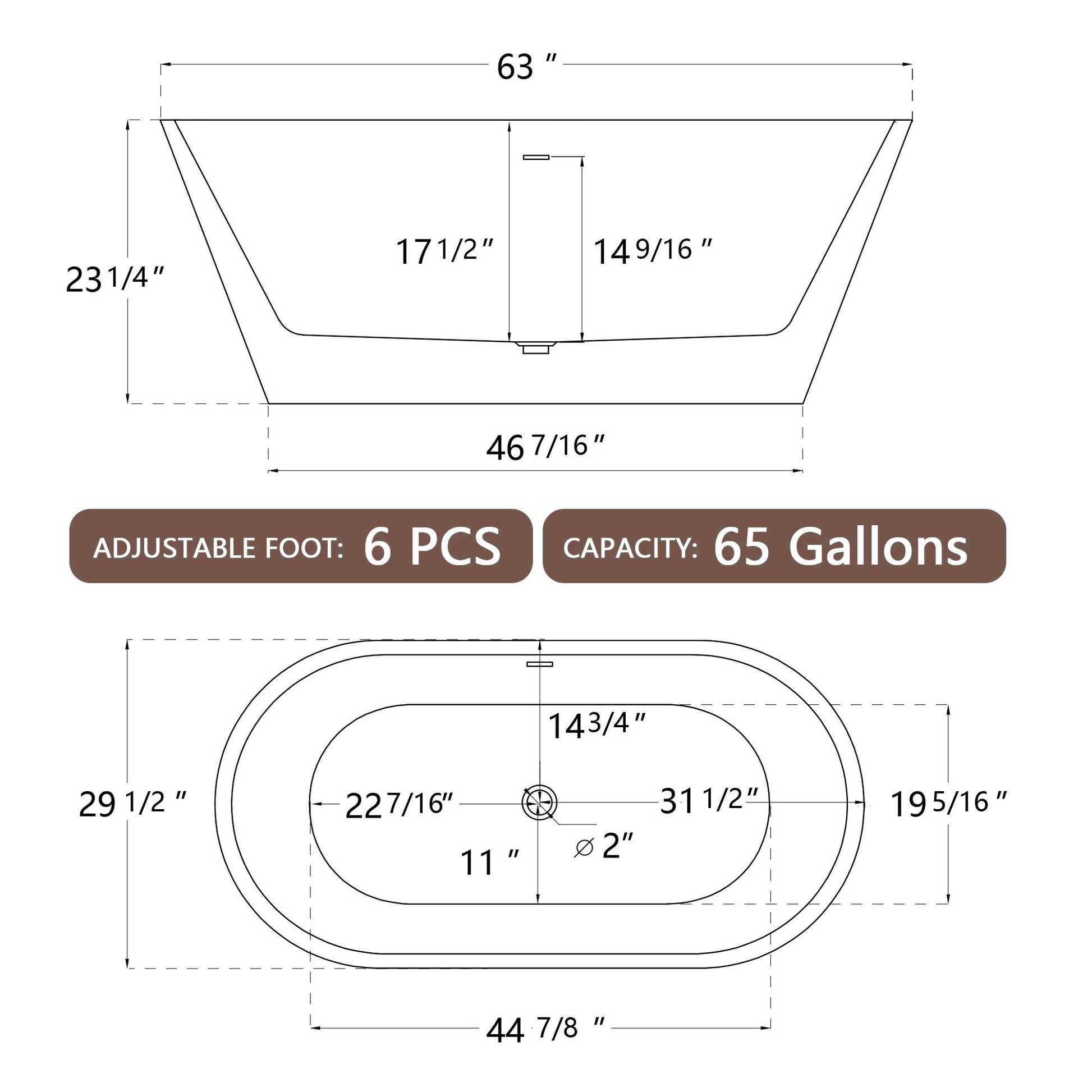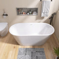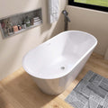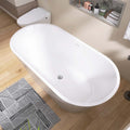 63" Acrylic Free Standing Tub Classic Oval Shape Soaking Tub, Adjustable Freestanding Bathtub With Integrated Slotted Overflow And Chrome Pop Up Drain Anti Clogging Gloss White White Oval Bathroom Freestanding Tubs Polished 61 69 In Modern Soaking Center