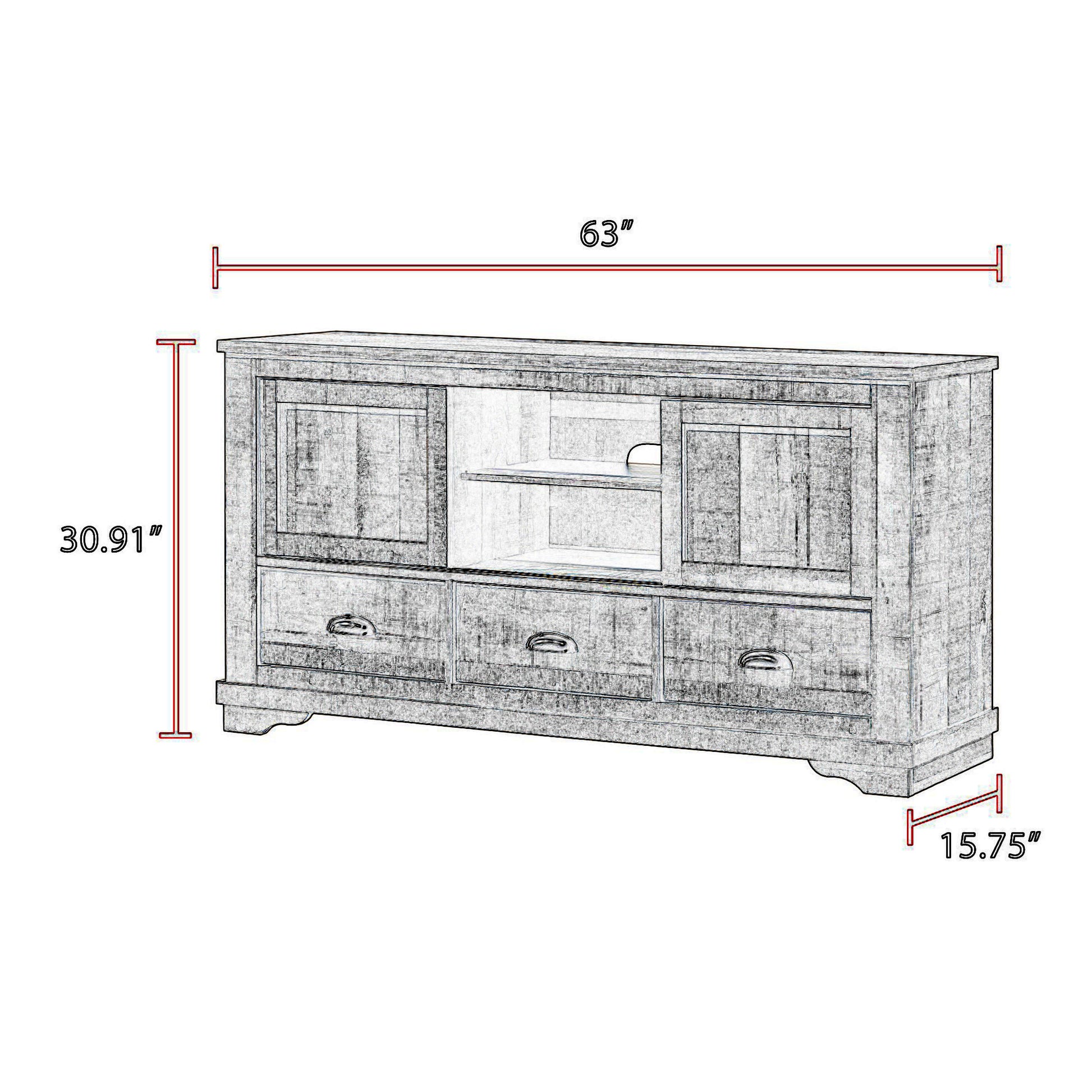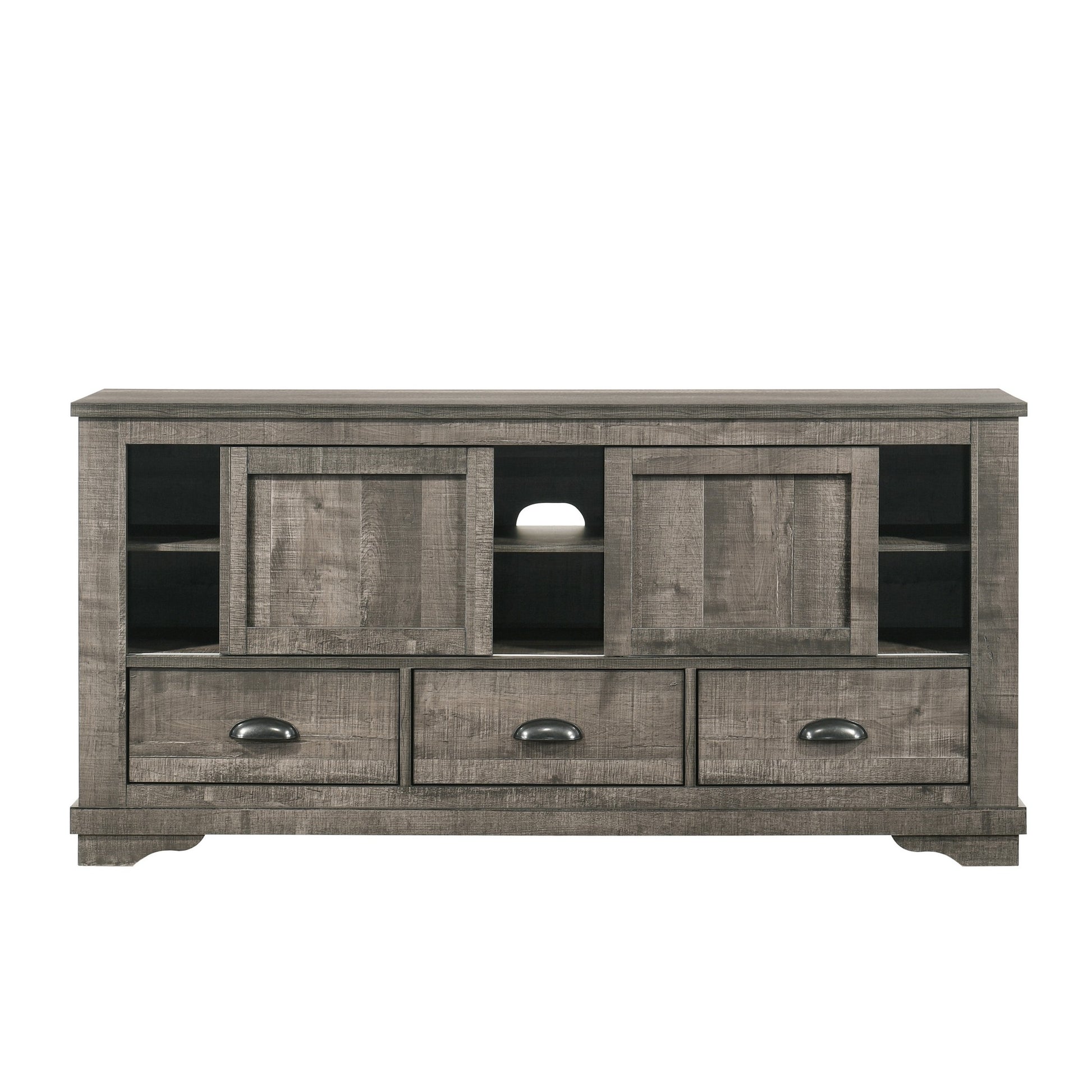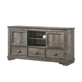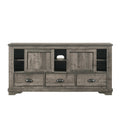63 Inch Tv Entertainment Console, 2 Cabinets And Shelves, 3 Drawers, Gray Gray Wood Metal