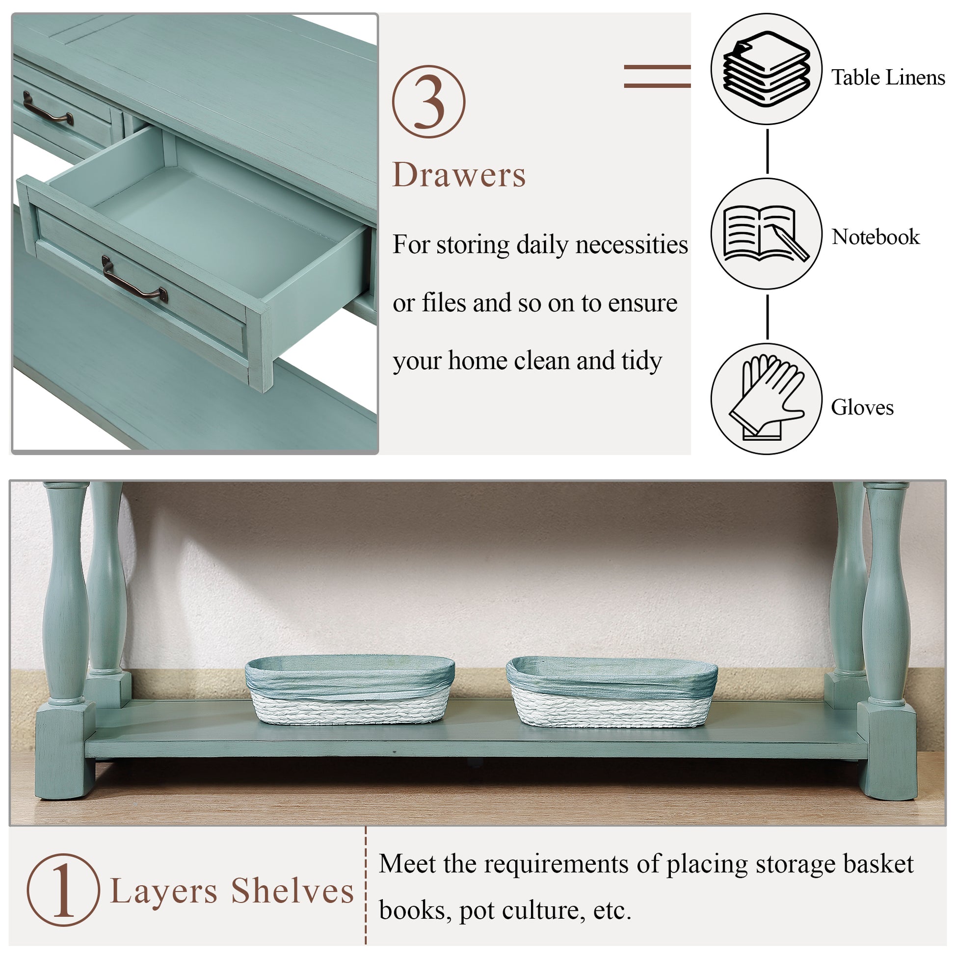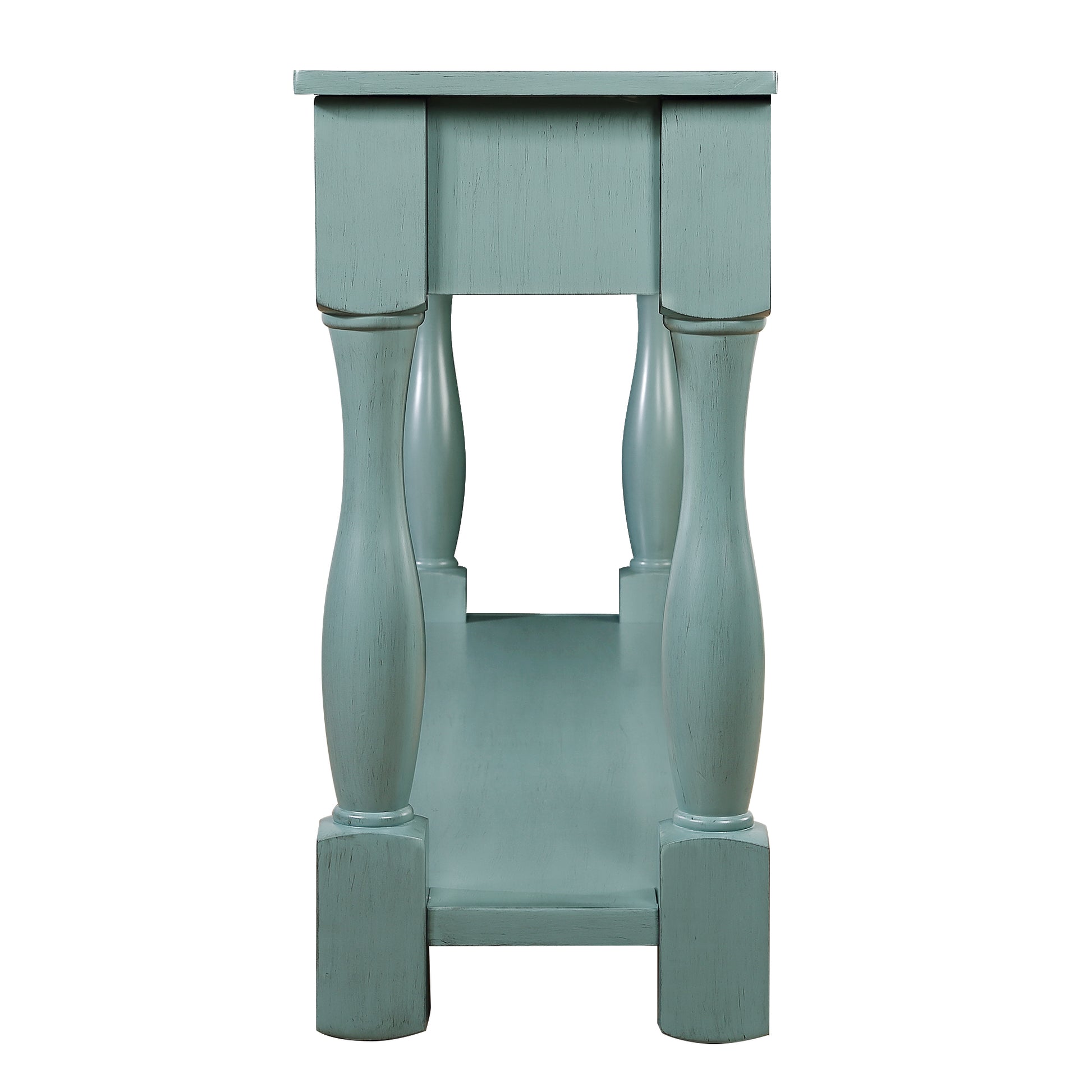 63Inch Long Wood Console Table With 3 Drawers And 1 Bottom Shelf For Entryway Hallway Easy Assembly Extra Thick Sofa Table Retro Blue Retro Blue Distressed Finish Primary Living Space American Design Pine Drawers Console Tables Pine