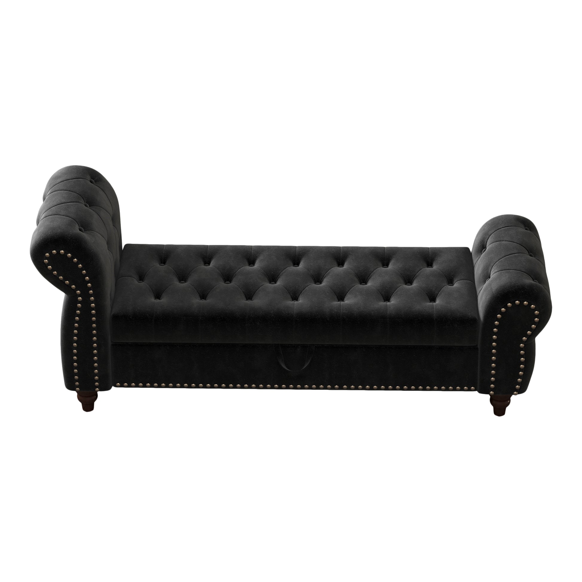 64.5" Bed Bench For Bed Room Nails Tufted Chaise Of Lounge With Storage Velvet Upholstery Black Black Bedroom Foam Velvet