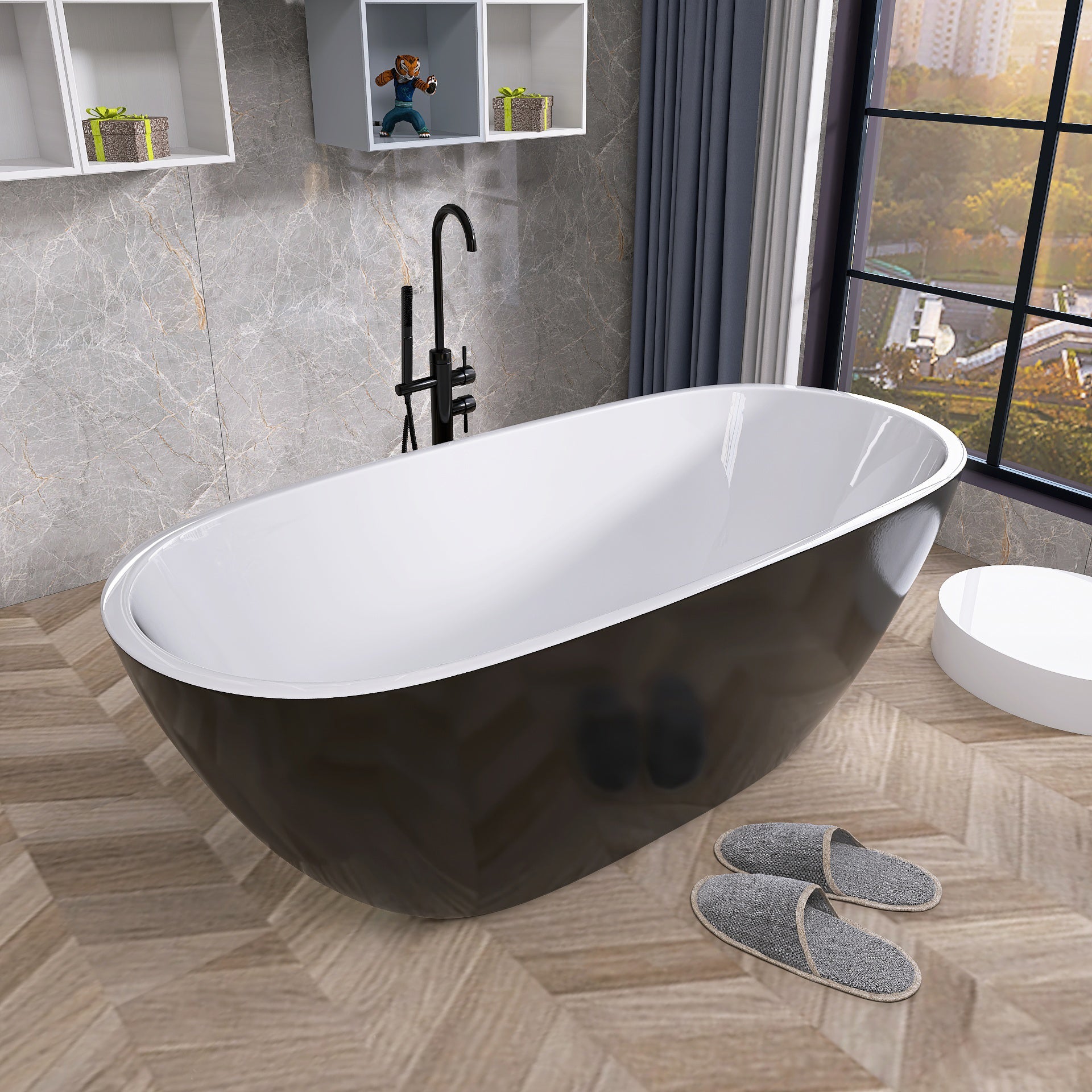65" Acrylic Free Standing Tub Classic Oval Shape Soaking Tub, Adjustable Freestanding Bathtub With Integrated Slotted Overflow And Chrome Pop Up Drain Anti Clogging Black Black Oval Bathroom Freestanding Tubs Polished 61 69 In Modern Soaking Center
