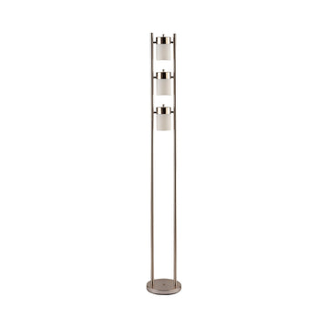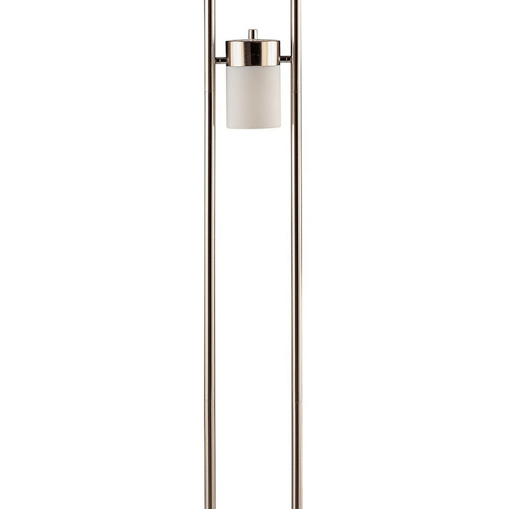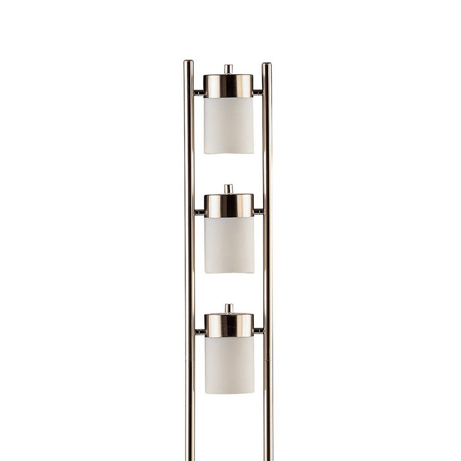 65 Inch Silver Floor Lamp, 3 Horizontal Swivel Lights, Frosted Glass Shade Silver Glass Metal