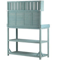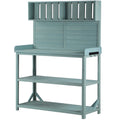 65" Large Wooden Farmhouse Rustic Outdoor Potting Bench Table, Patio Workstation, Garden Potting Bench With 4 Storage Shelves And Side Hook,Green Green Garden & Outdoor Casual Wood Solid Wood