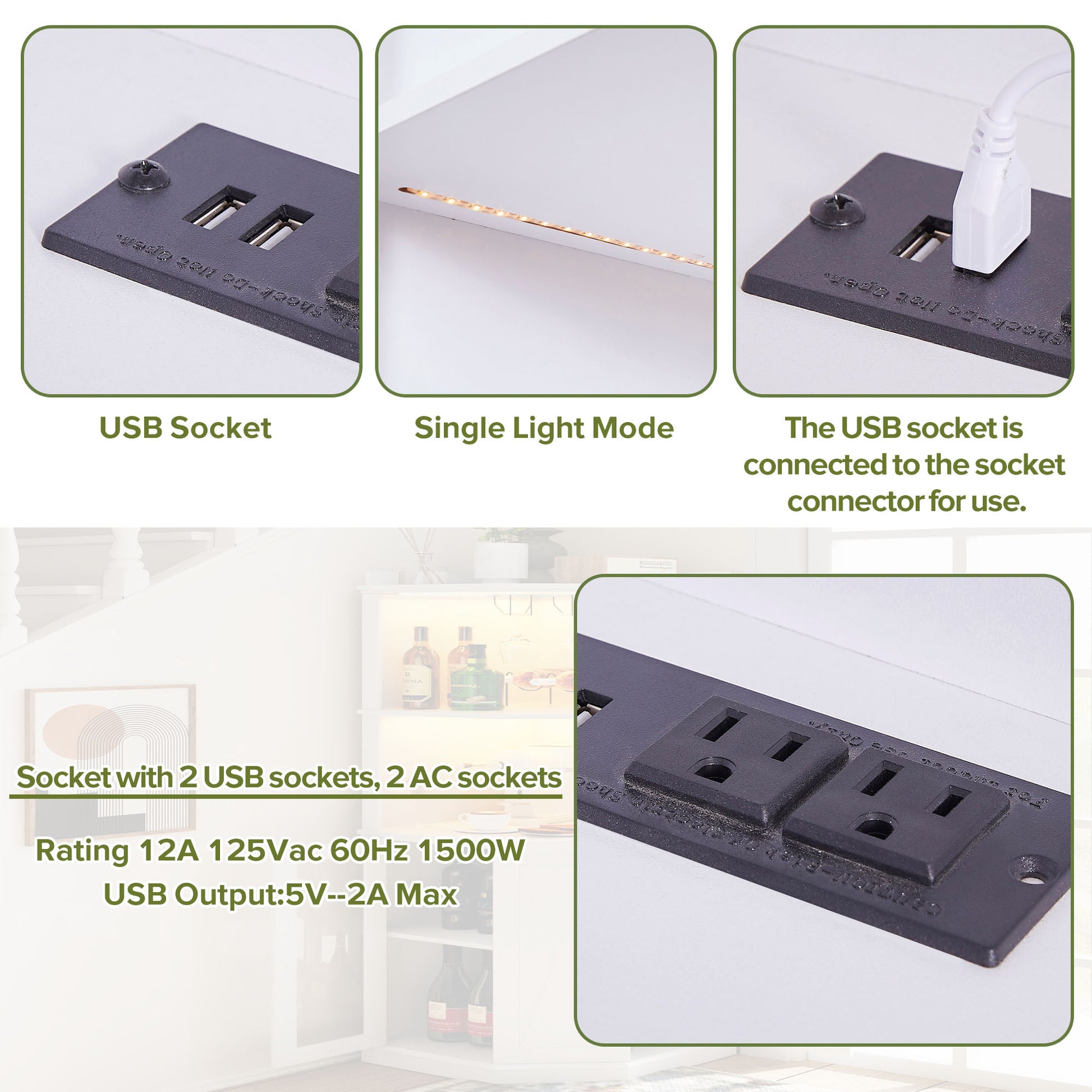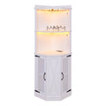 67.7" Corner Bar Cabinet With Power Outlet, Farmhouse Wine Bar Cabinet With Adjustable Shelves For Home,With Lights & Glass Rack For Dining Room, Living Room, Kitchen White Dining Room Classic Mdf